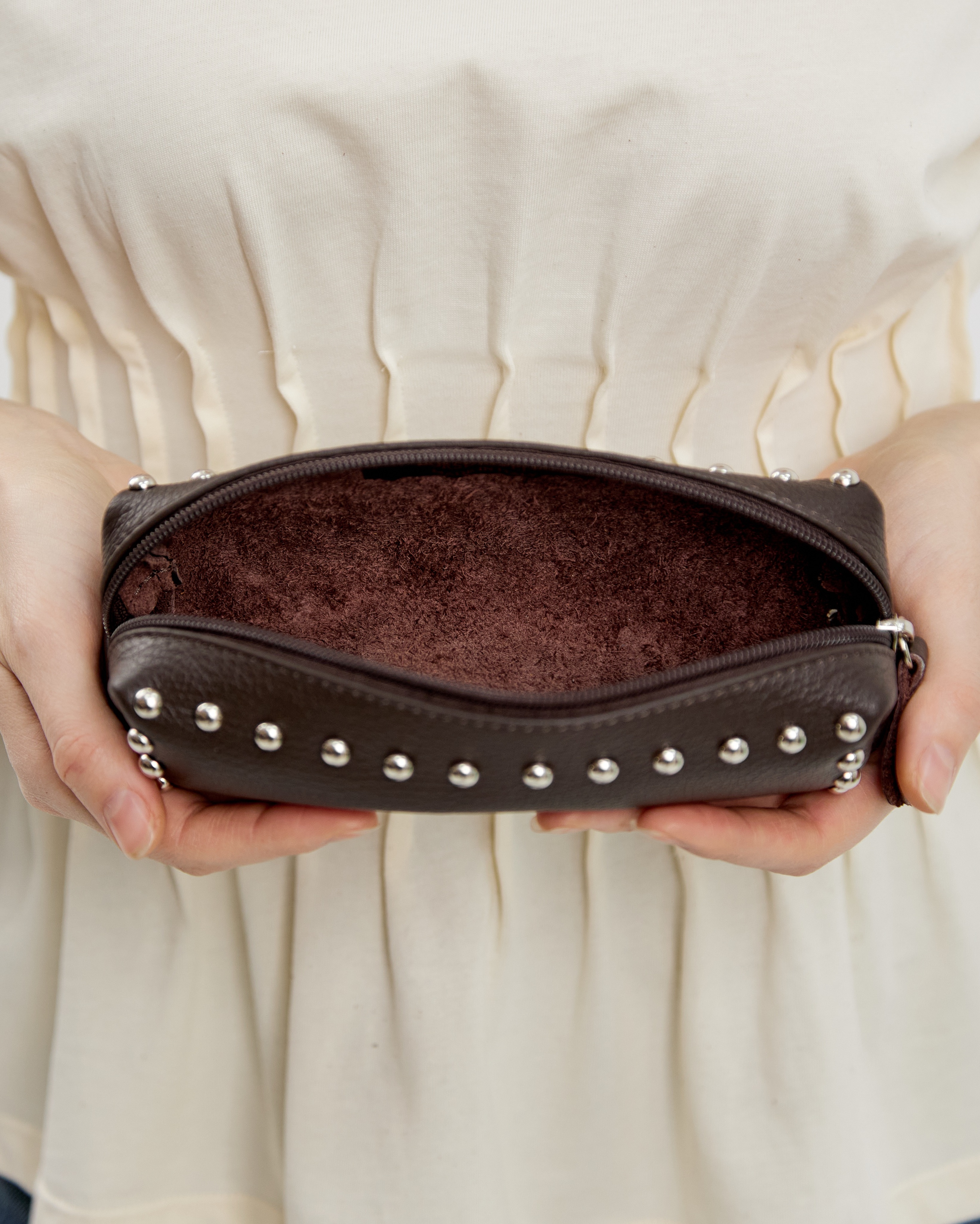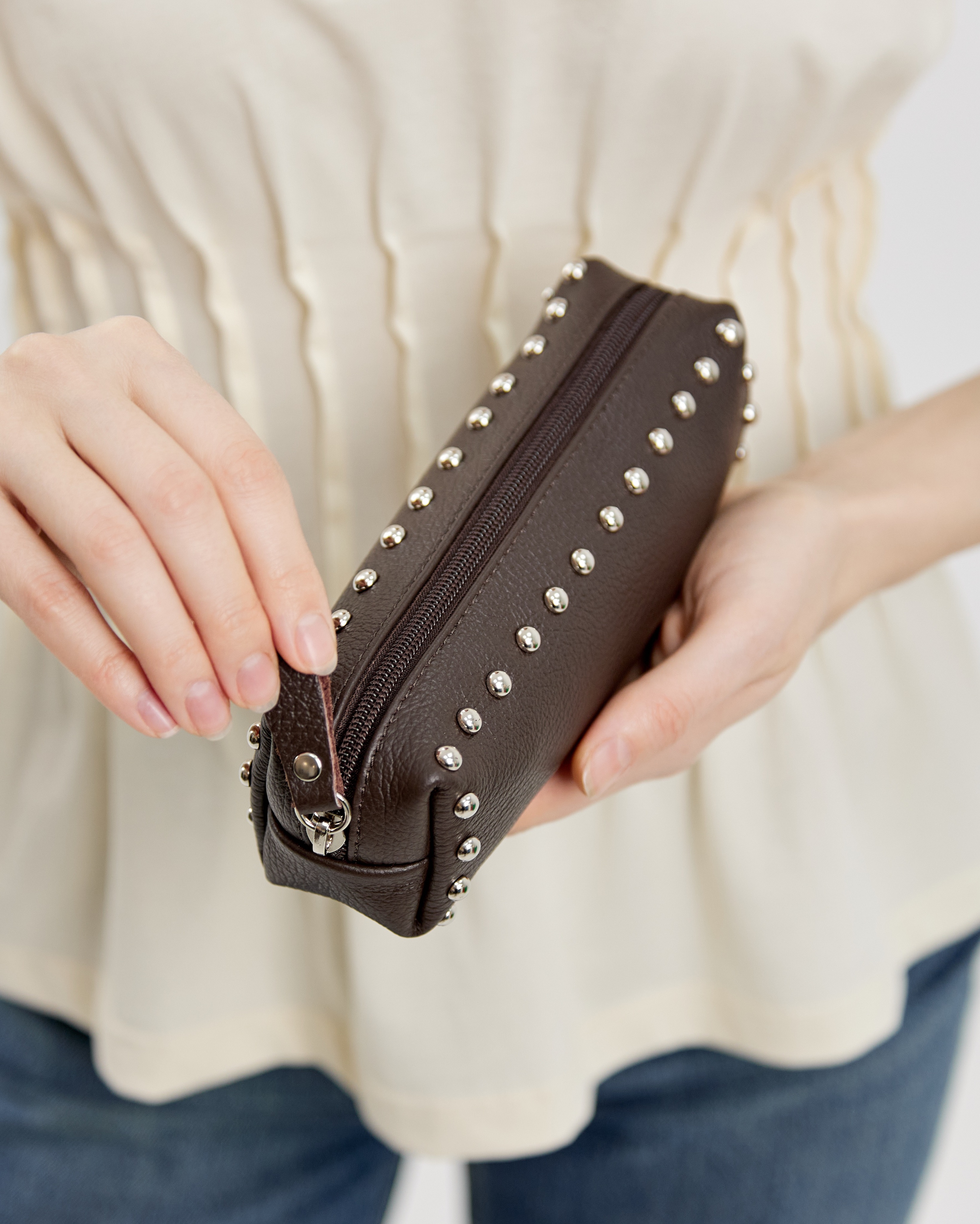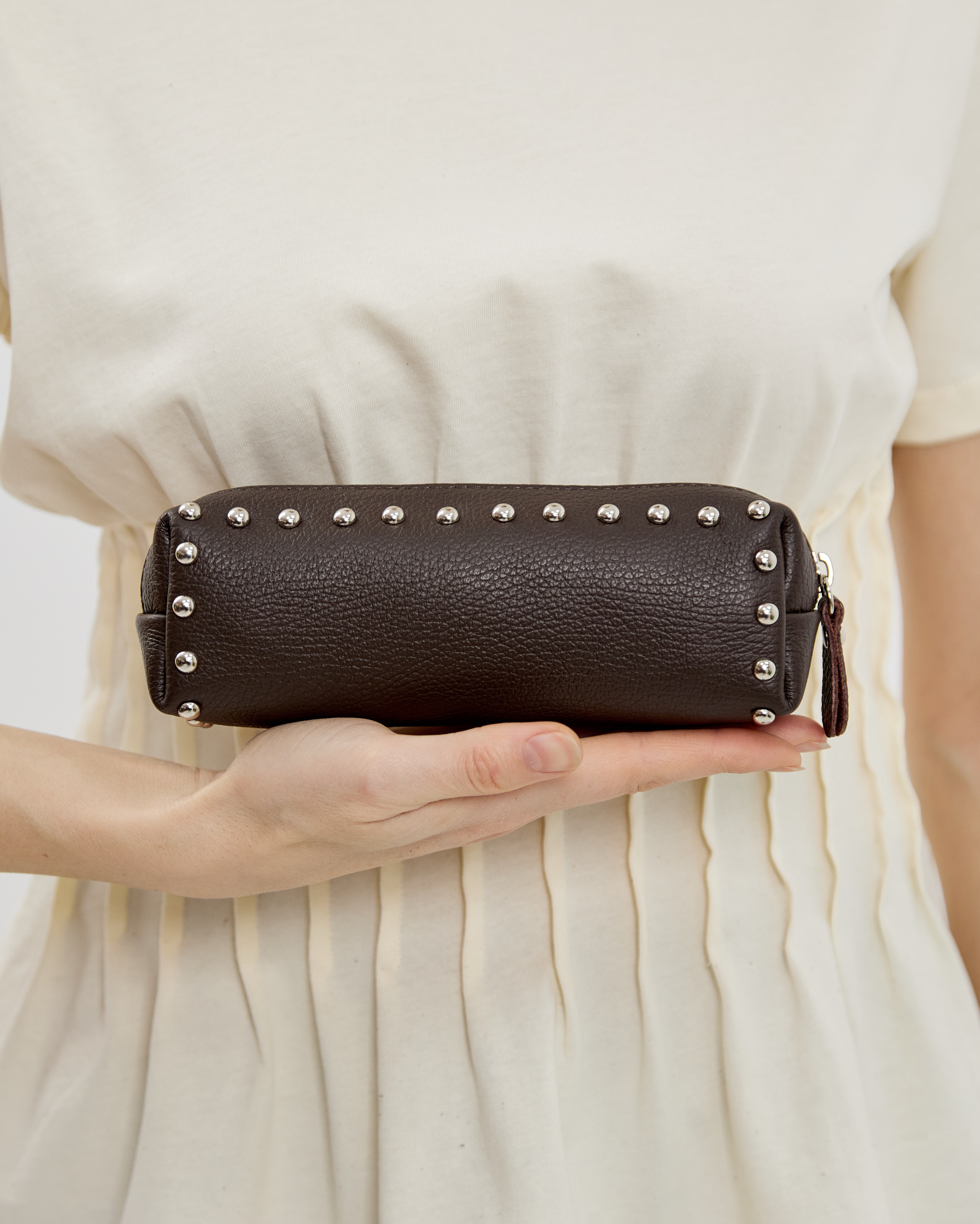 Косметичка выполнена из натуральной зернистой кожи. Косметичка удобна для ежедневного использования или поездок, позволяя организовать все необходимые средства для макияжа или другие нужные мелочи.