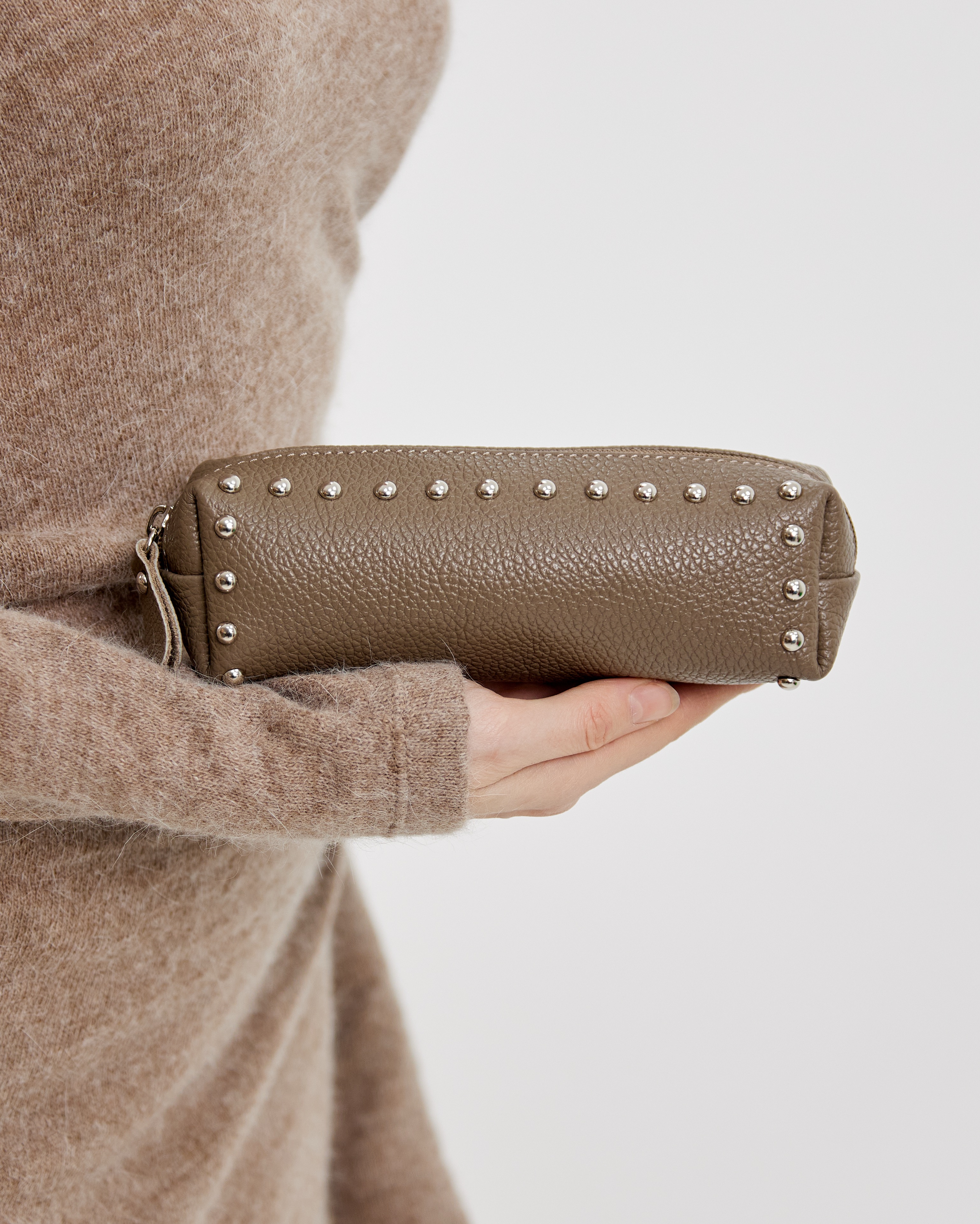 Косметичка выполнена из натуральной зернистой кожи. Косметичка удобна для ежедневного использования или поездок, позволяя организовать все необходимые средства для макияжа или другие нужные мелочи.