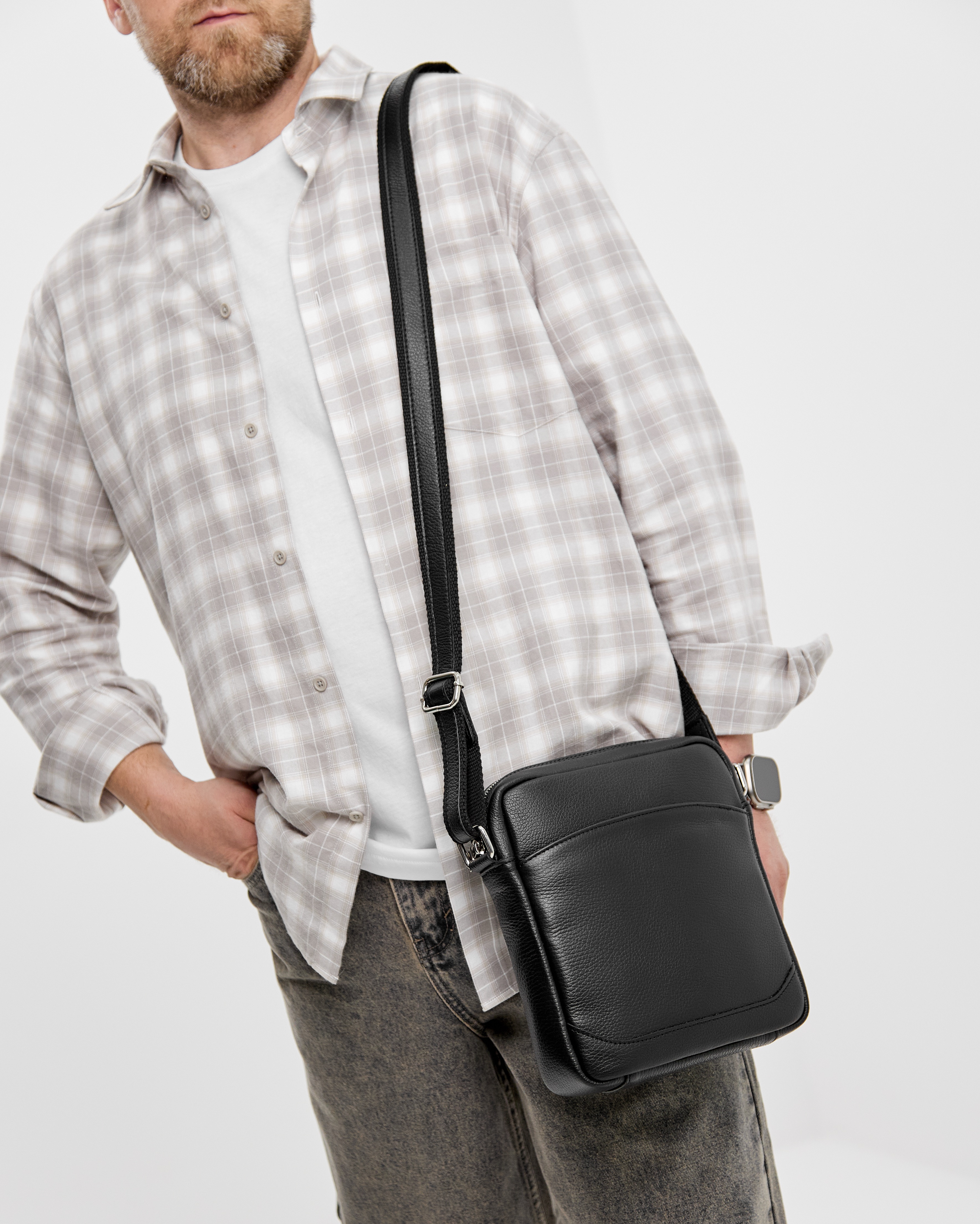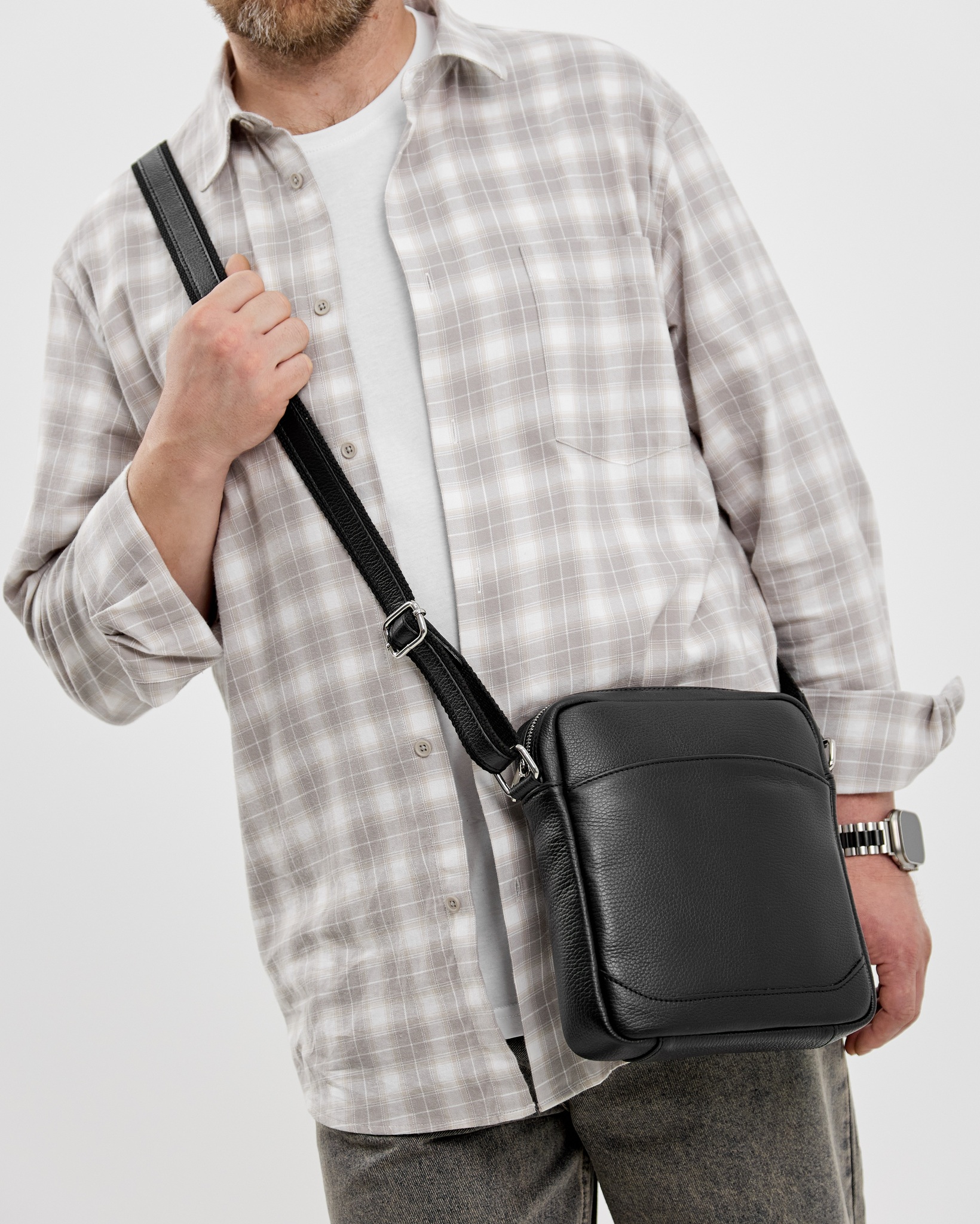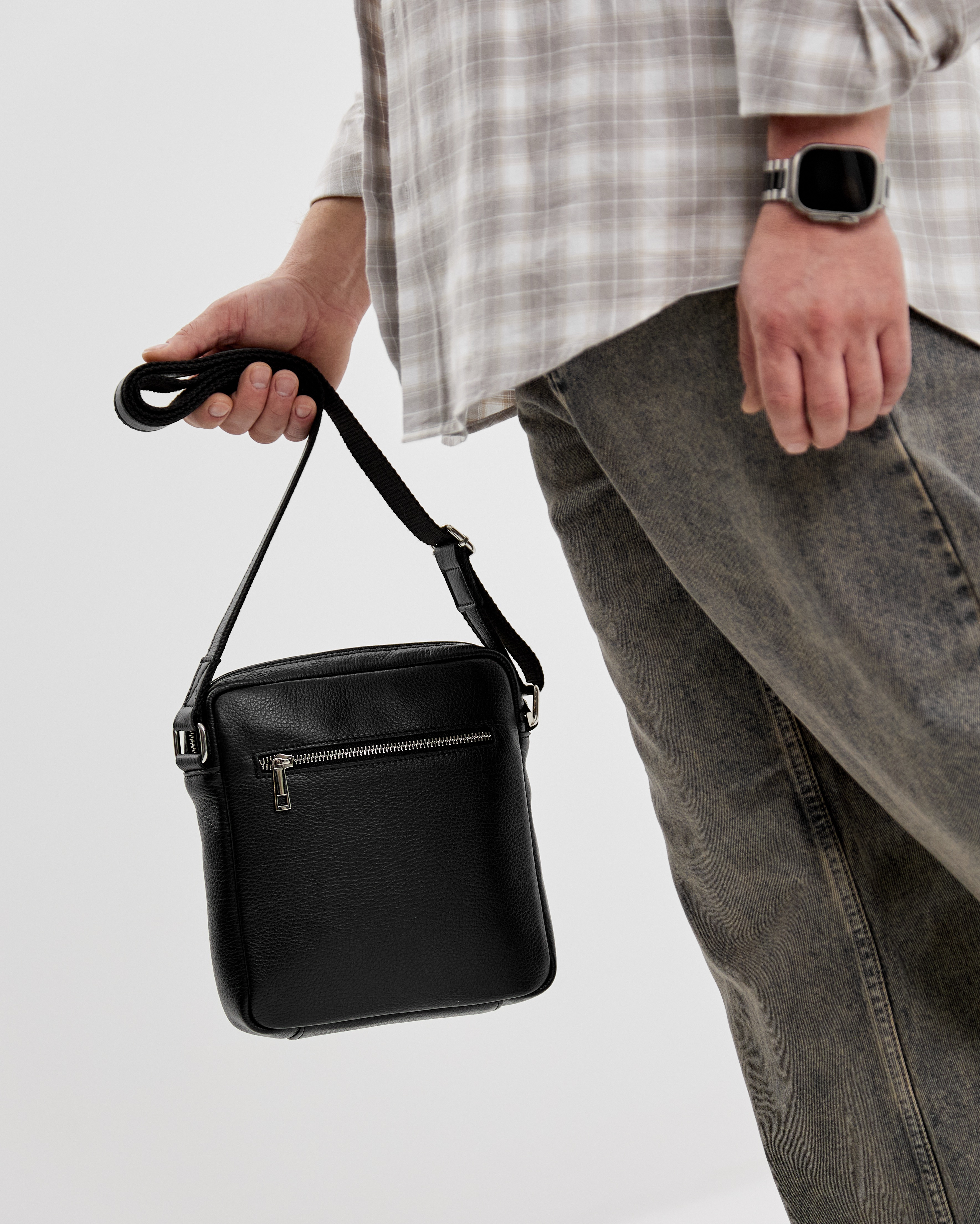 Сумка закрывается на молнию. В комплекте: регулируемый по длине ремень до 148 см.