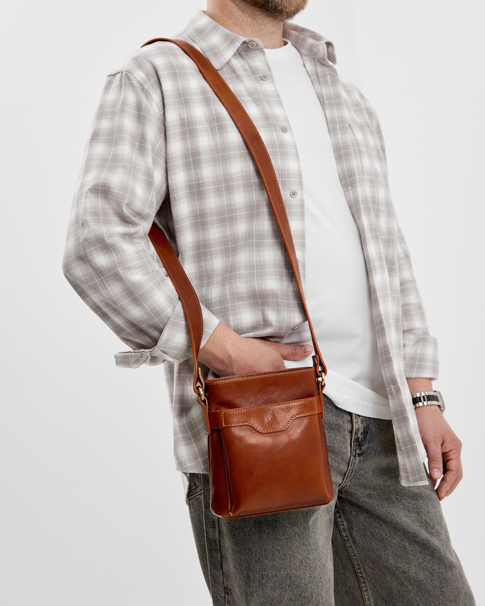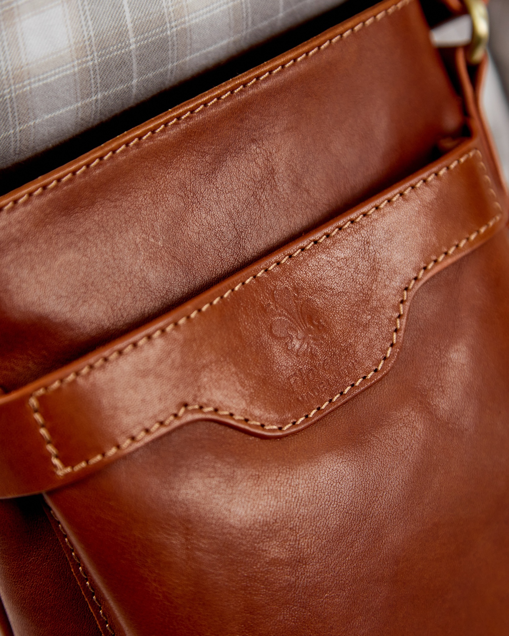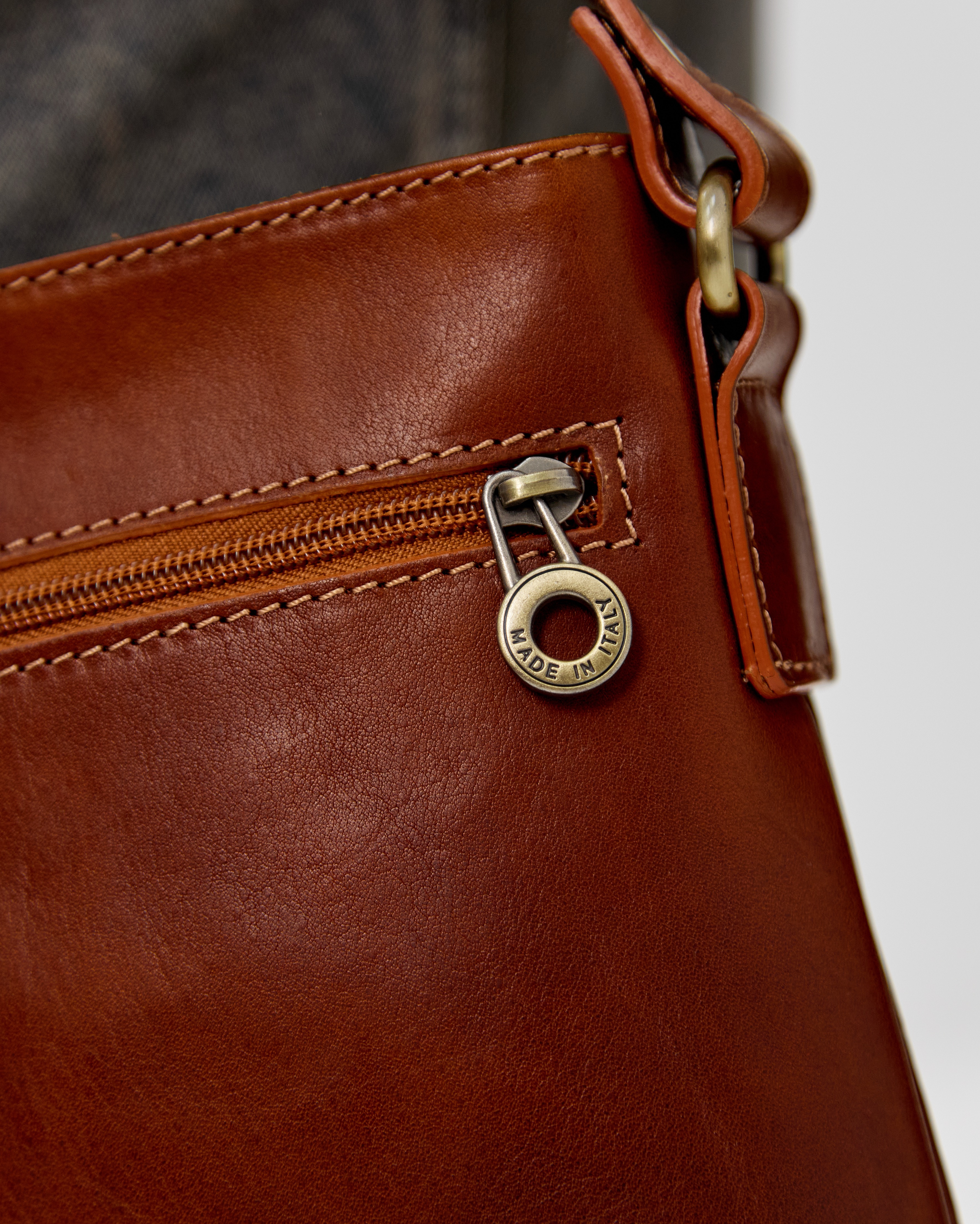 Сумка выполнена из гладкой натуральной кожи, итальянского производства. Сумка декорирована фурнитурой латунного цвета.