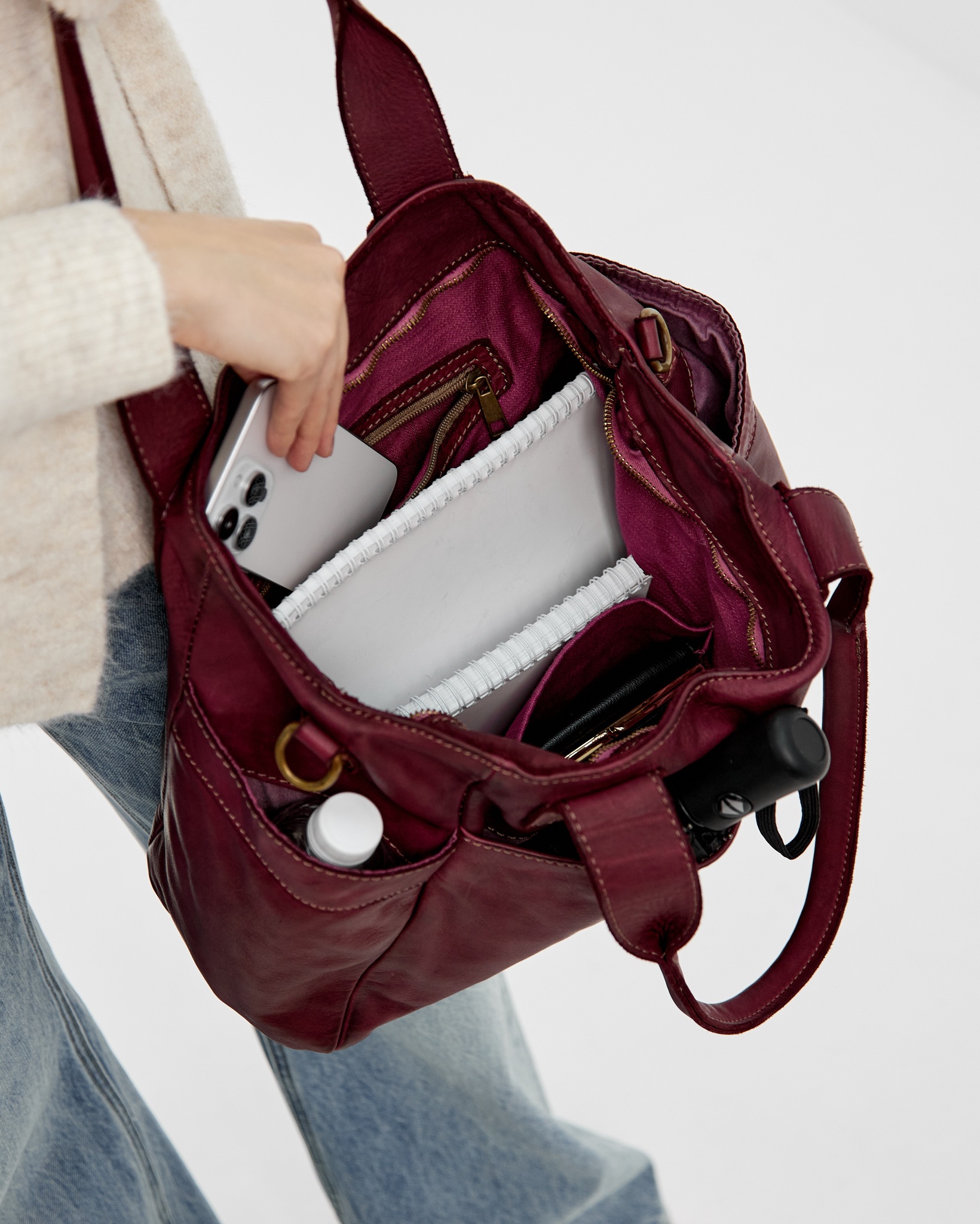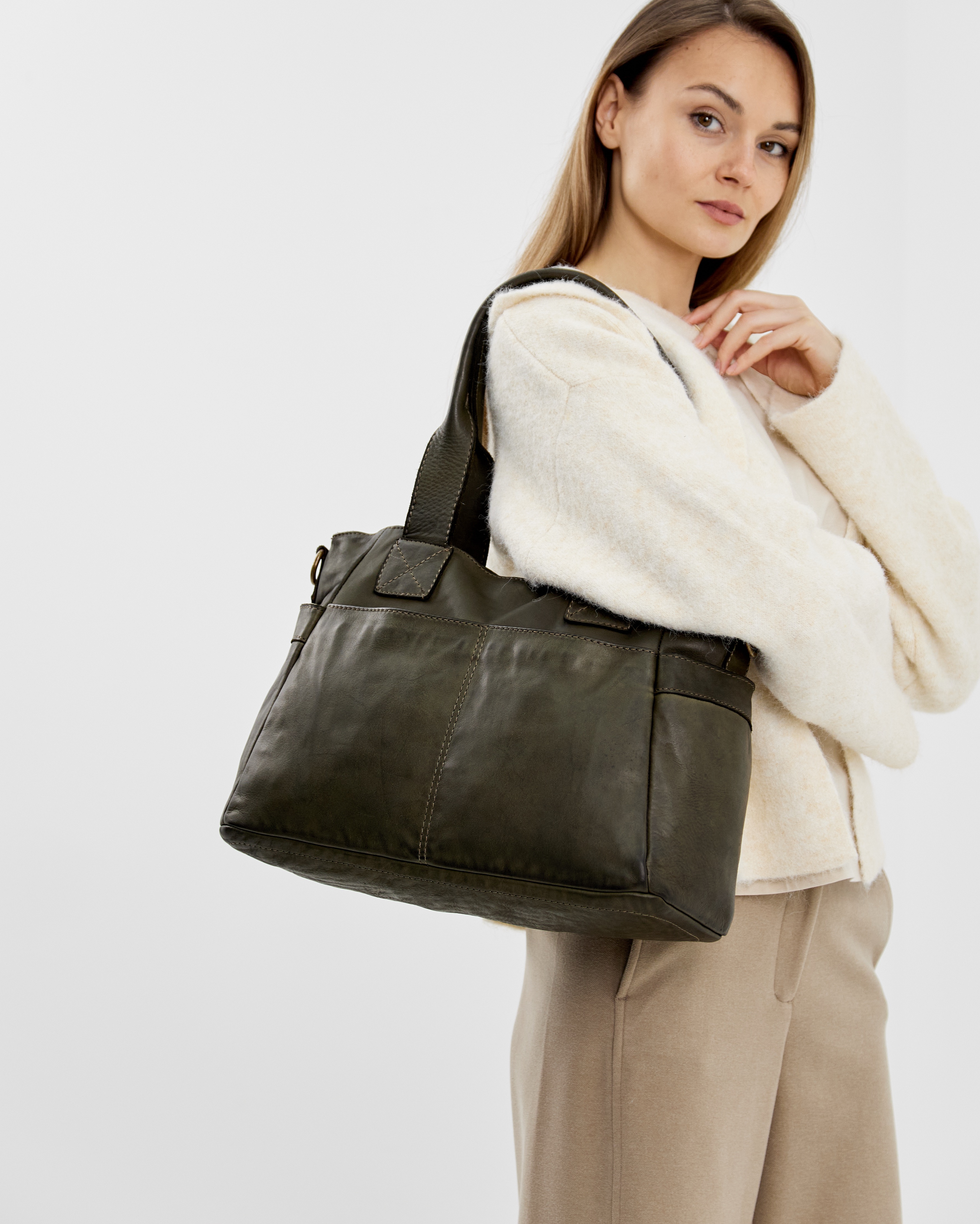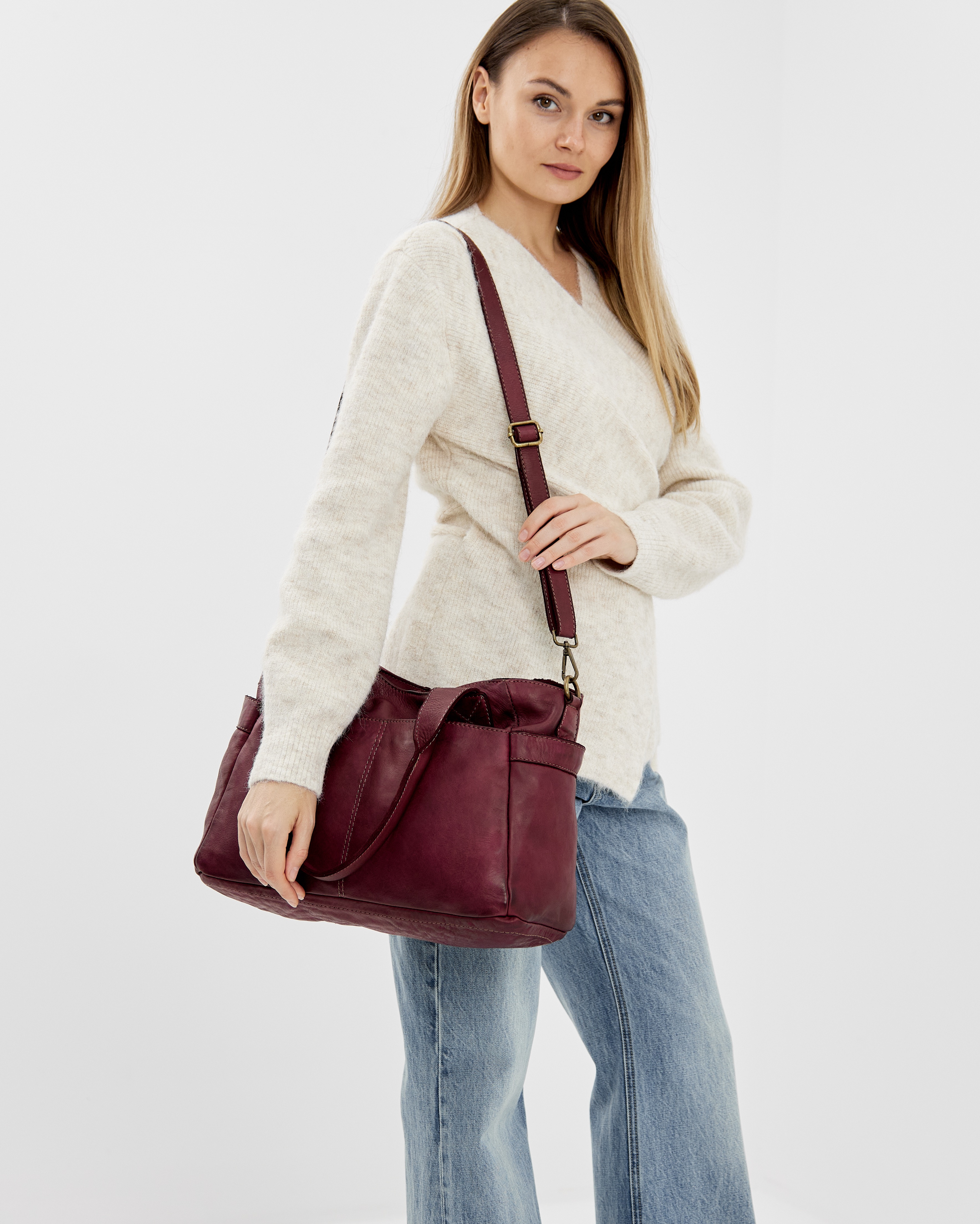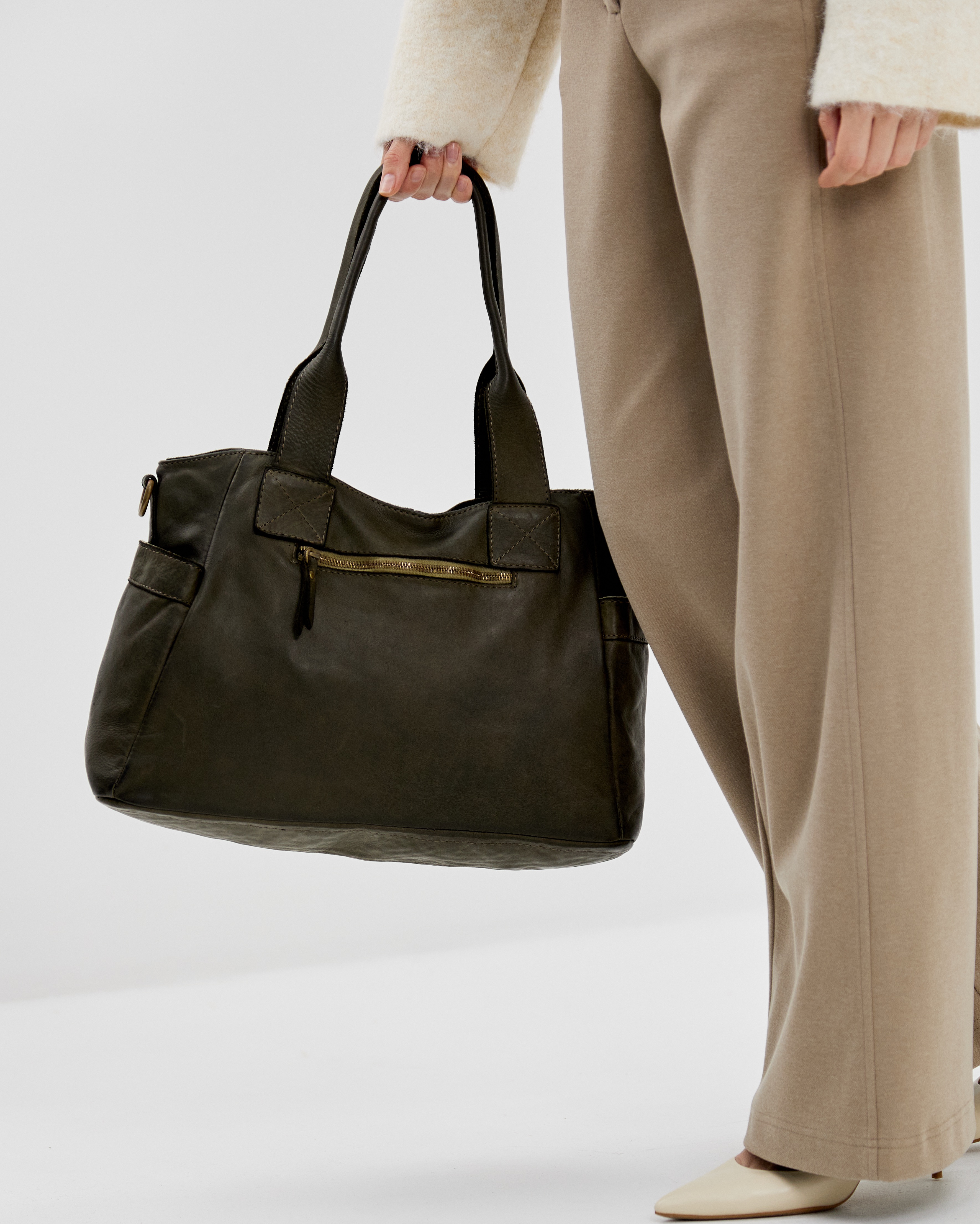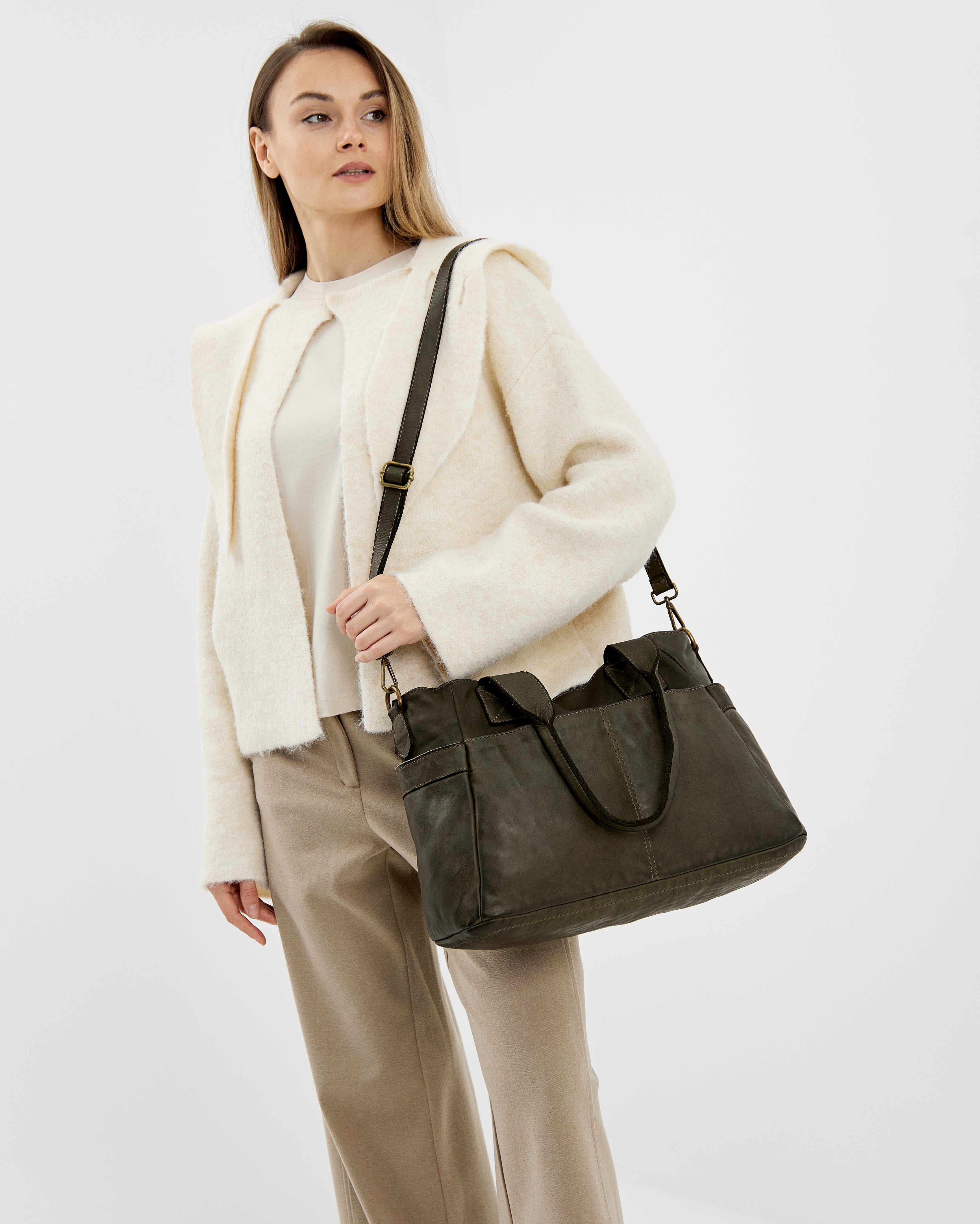 Сумку удобно носить как за короткие ручки в руке или на плече, так и с помощью длинного ремня, который входит в комплект. Закрывается надежно с помощью молнии.