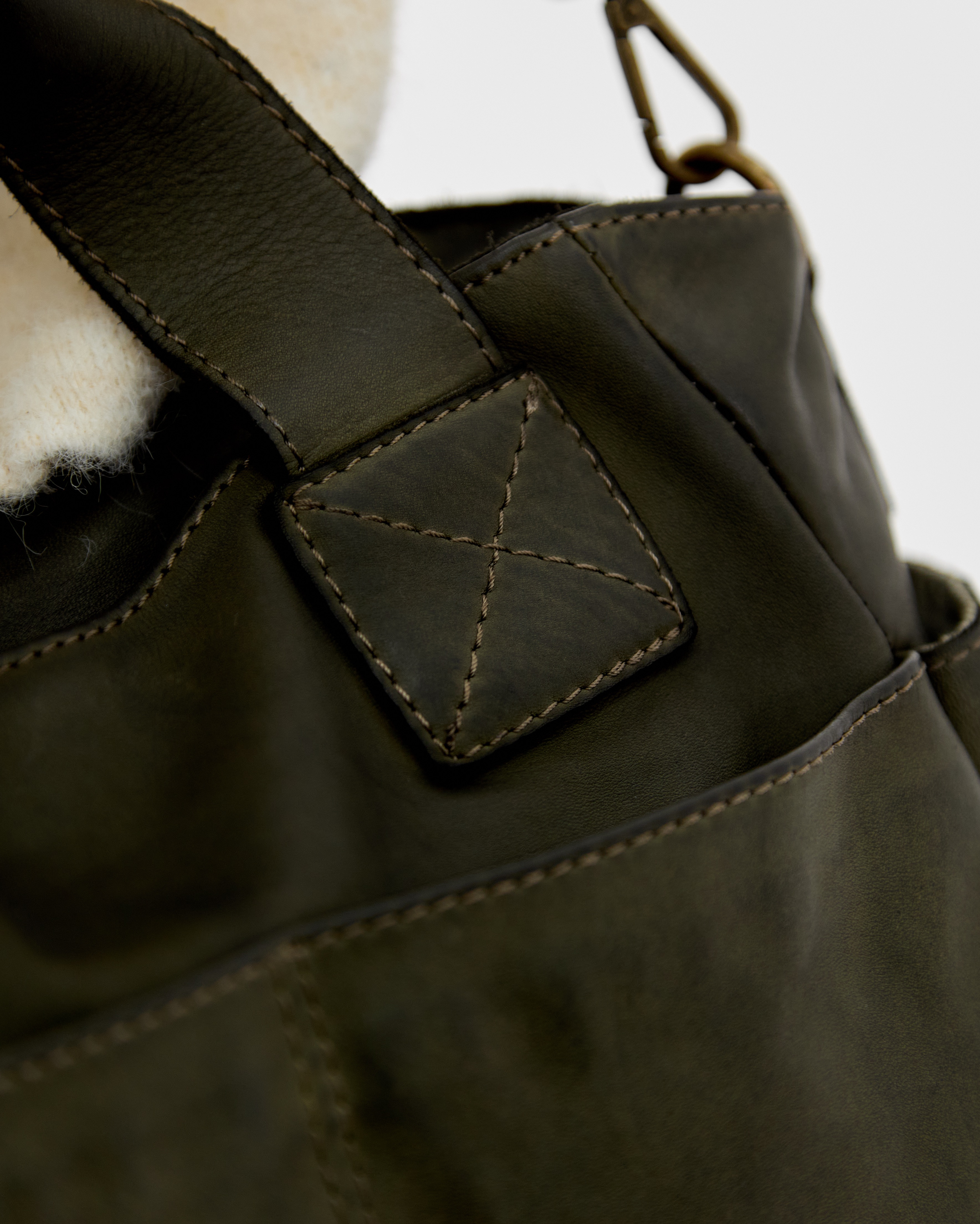 Сумка выполнена из натуральной зернистой кожи и декорирована фурнитурой латунного цвета.