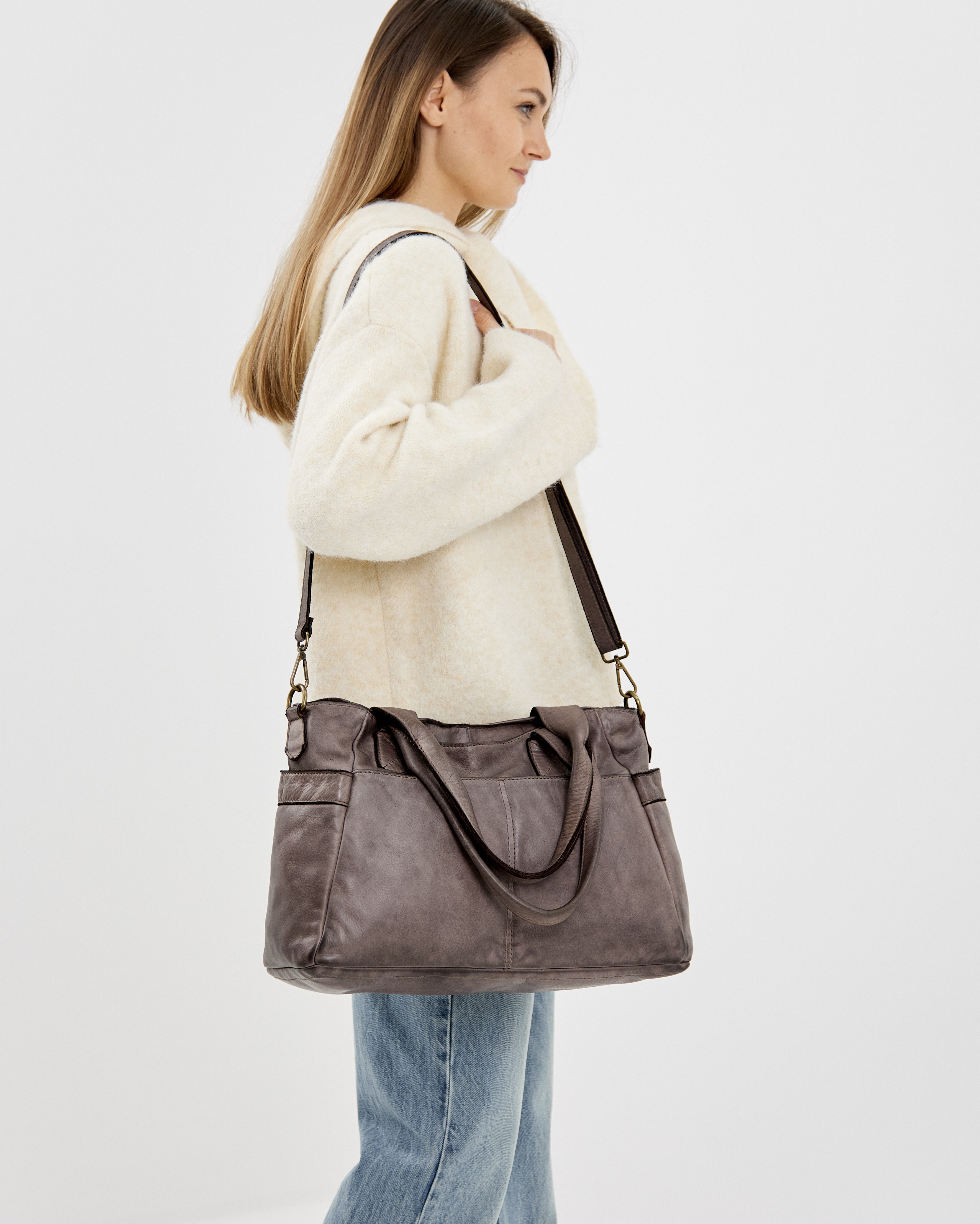 Сумку удобно носить как за короткие ручки в руке или на плече, так и с помощью длинного ремня, который входит в комплект. Закрывается надежно с помощью молнии.