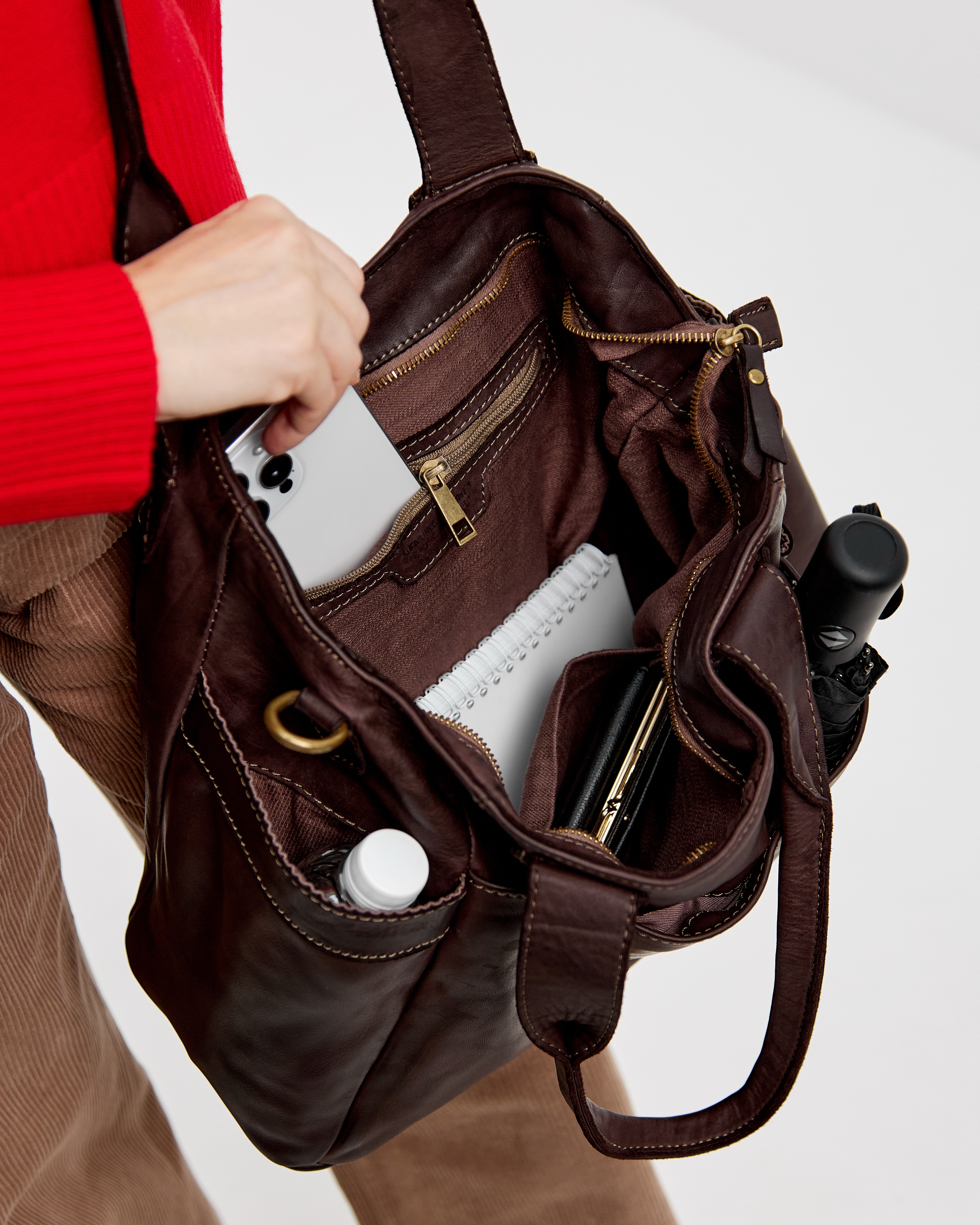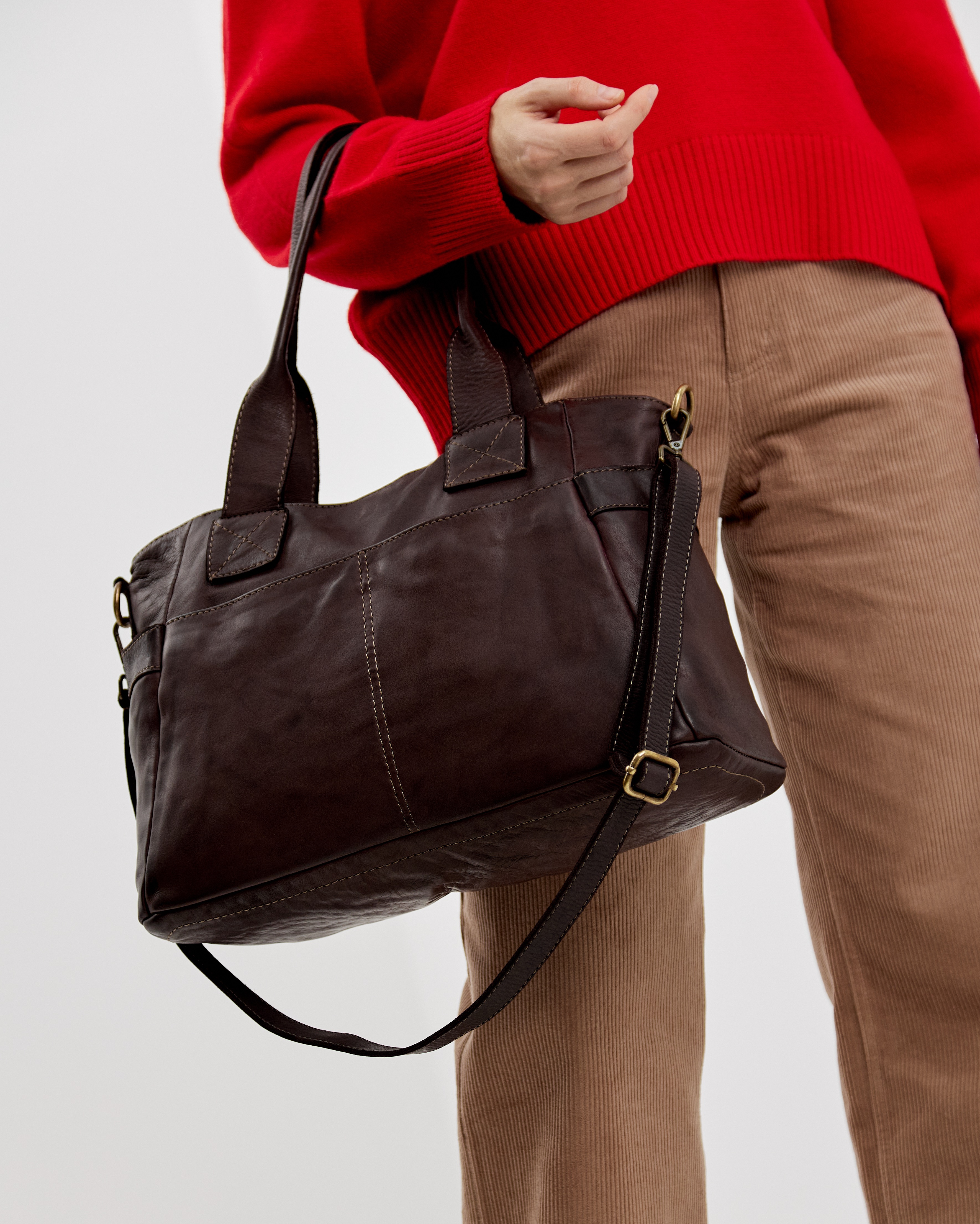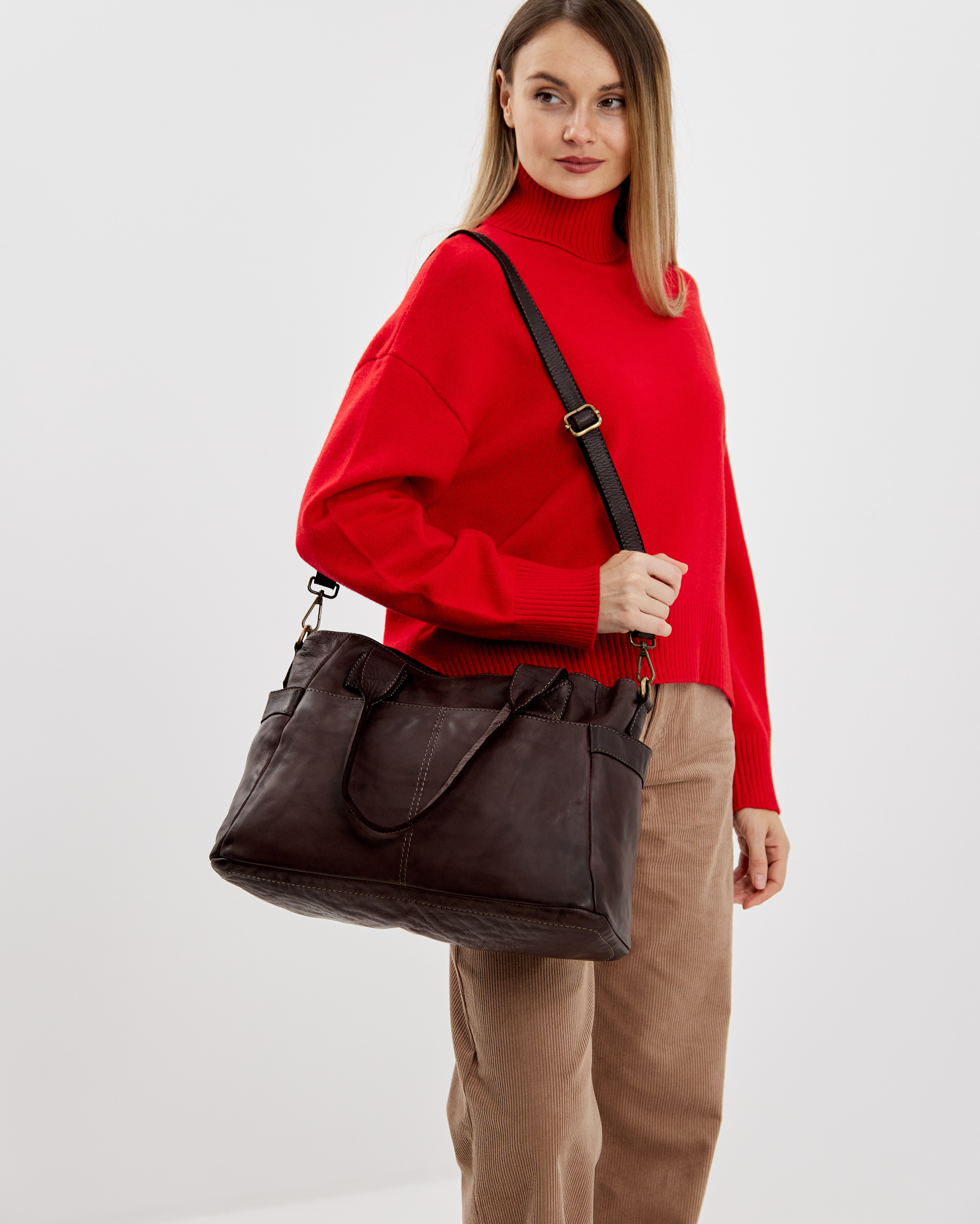 Сумку удобно носить как за короткие ручки в руке или на плече, так и с помощью длинного ремня, который входит в комплект. Закрывается надежно с помощью молнии.