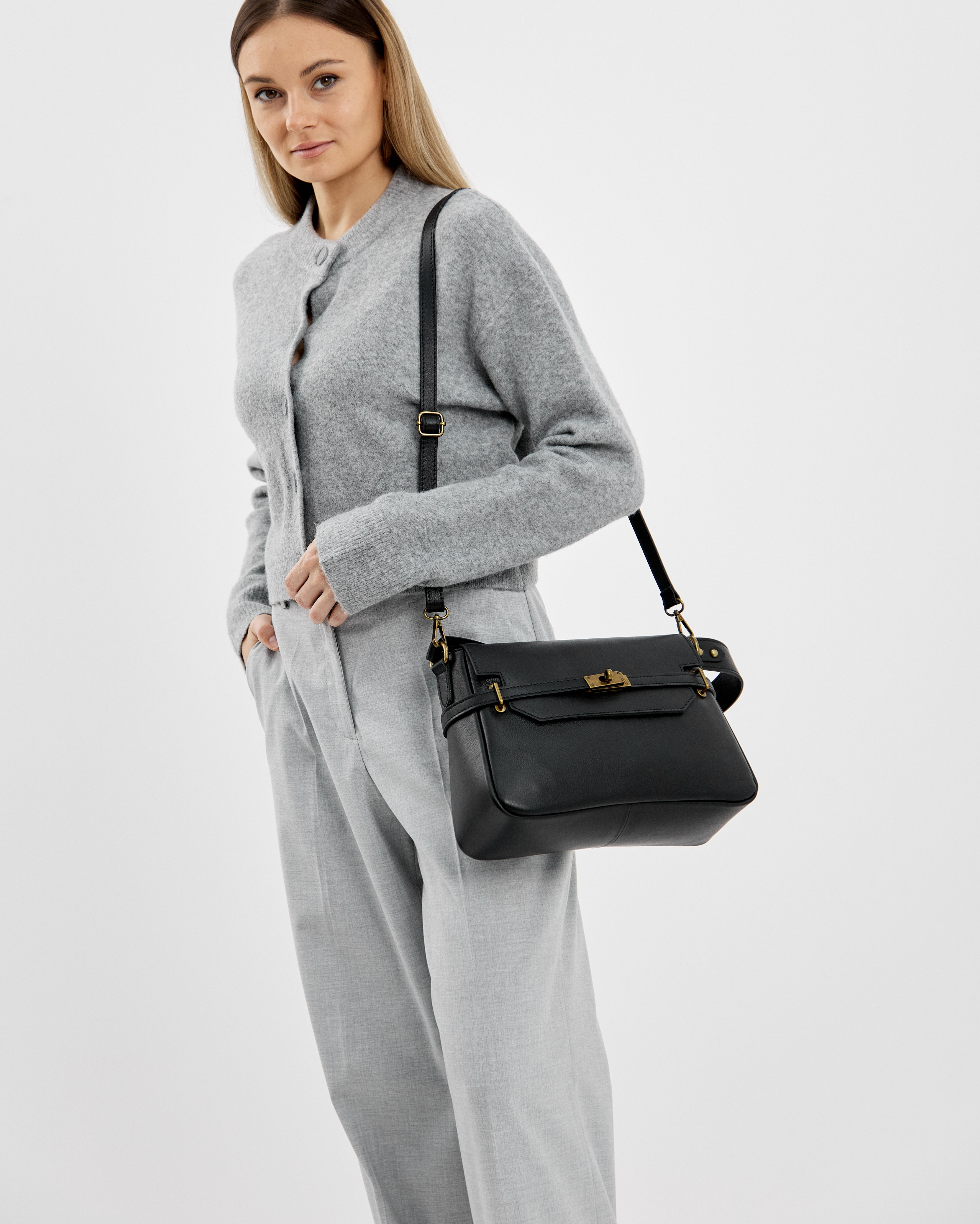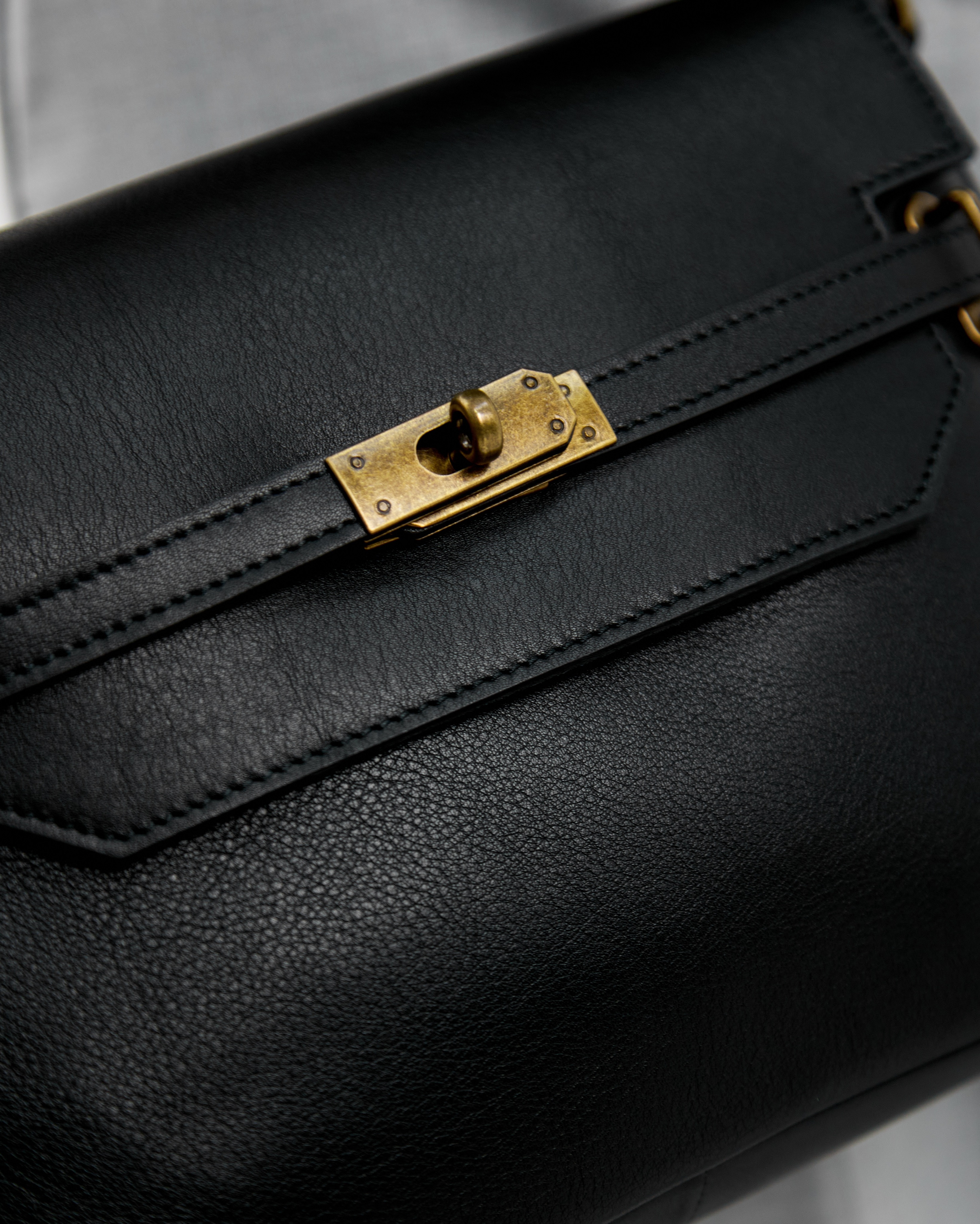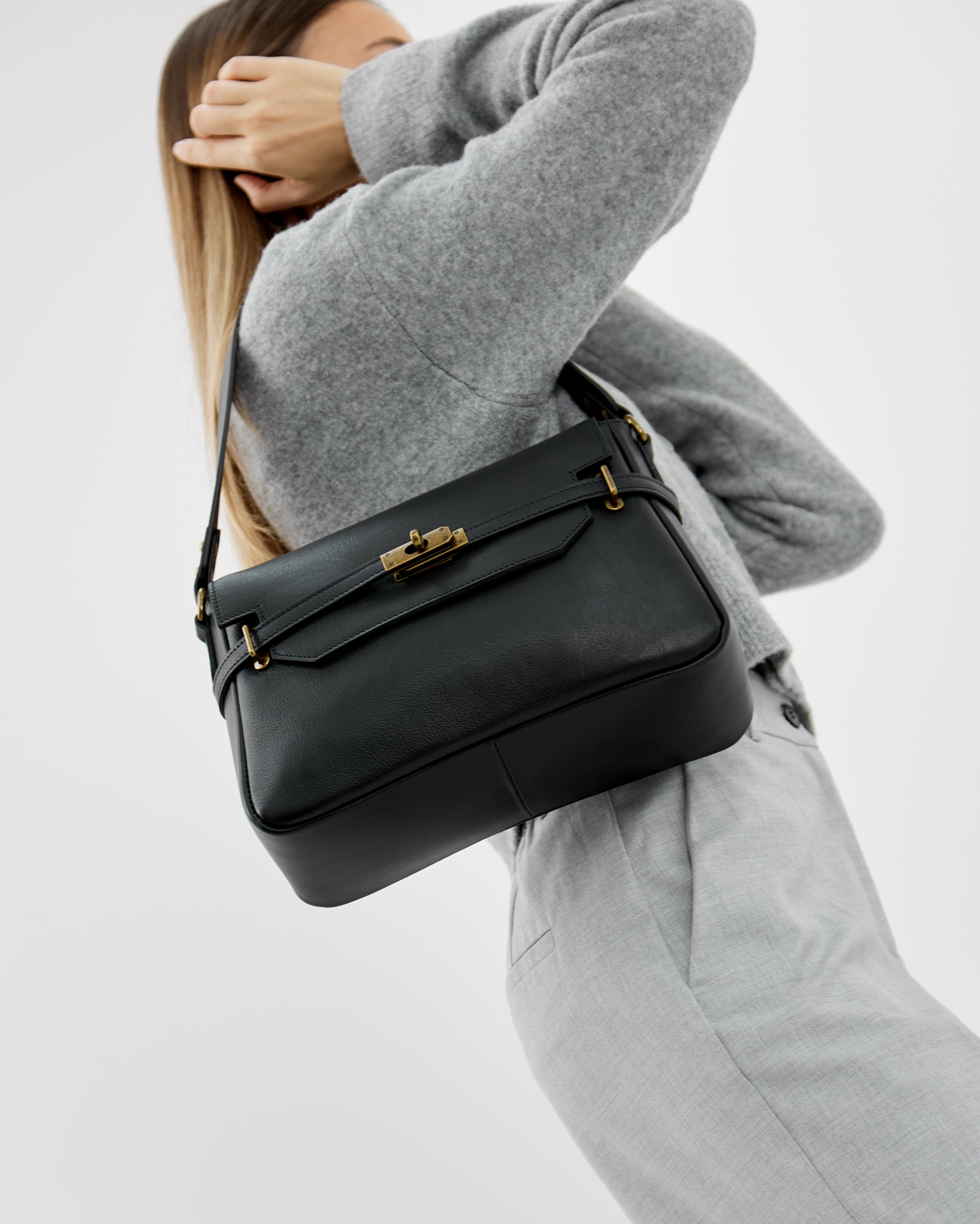 Сумка выполнена из натуральной кожи и декорирована фурнитурой латунного цвета. Лаконичный дизайн сумки позволяет легко сочетать ее с разными образами .
