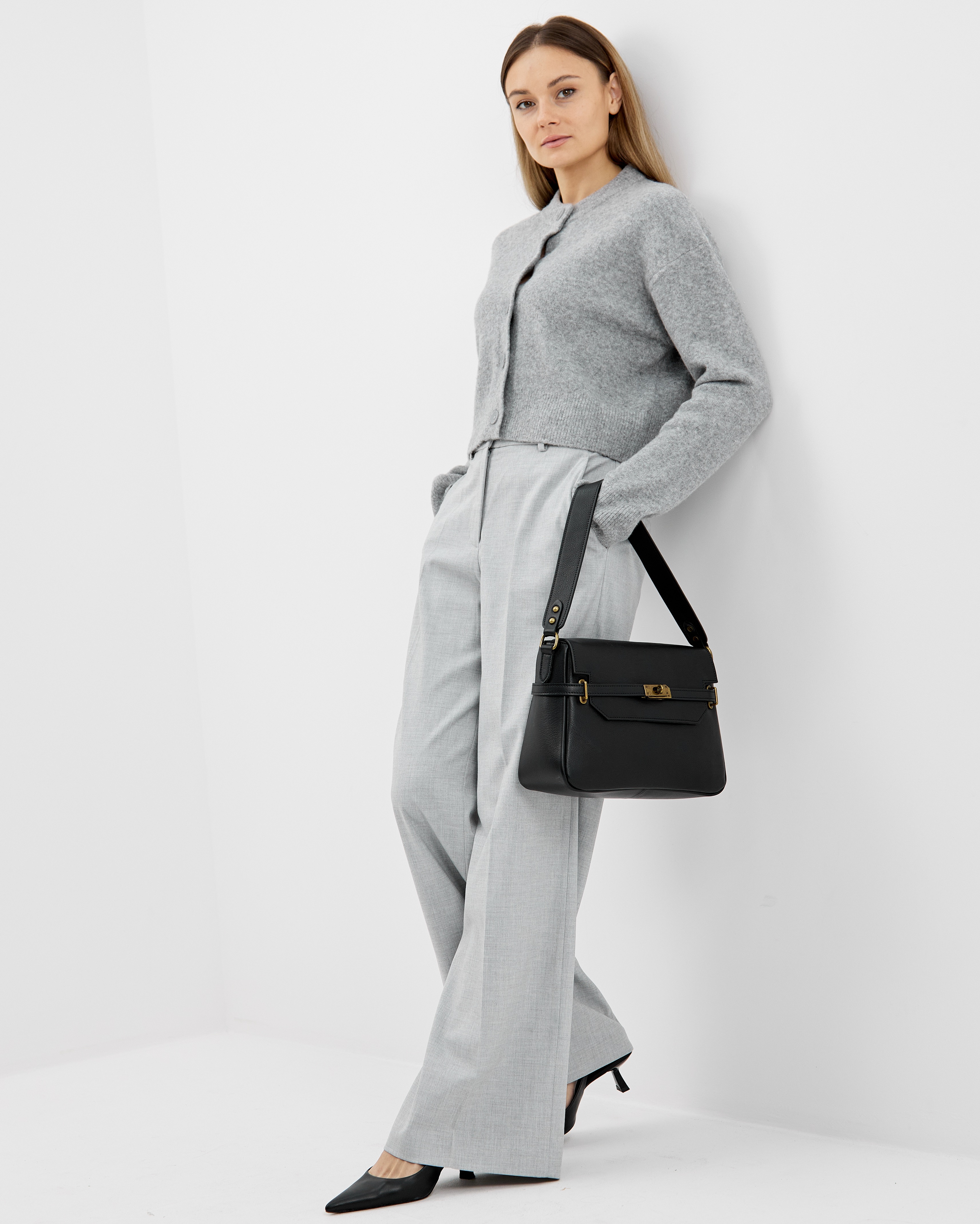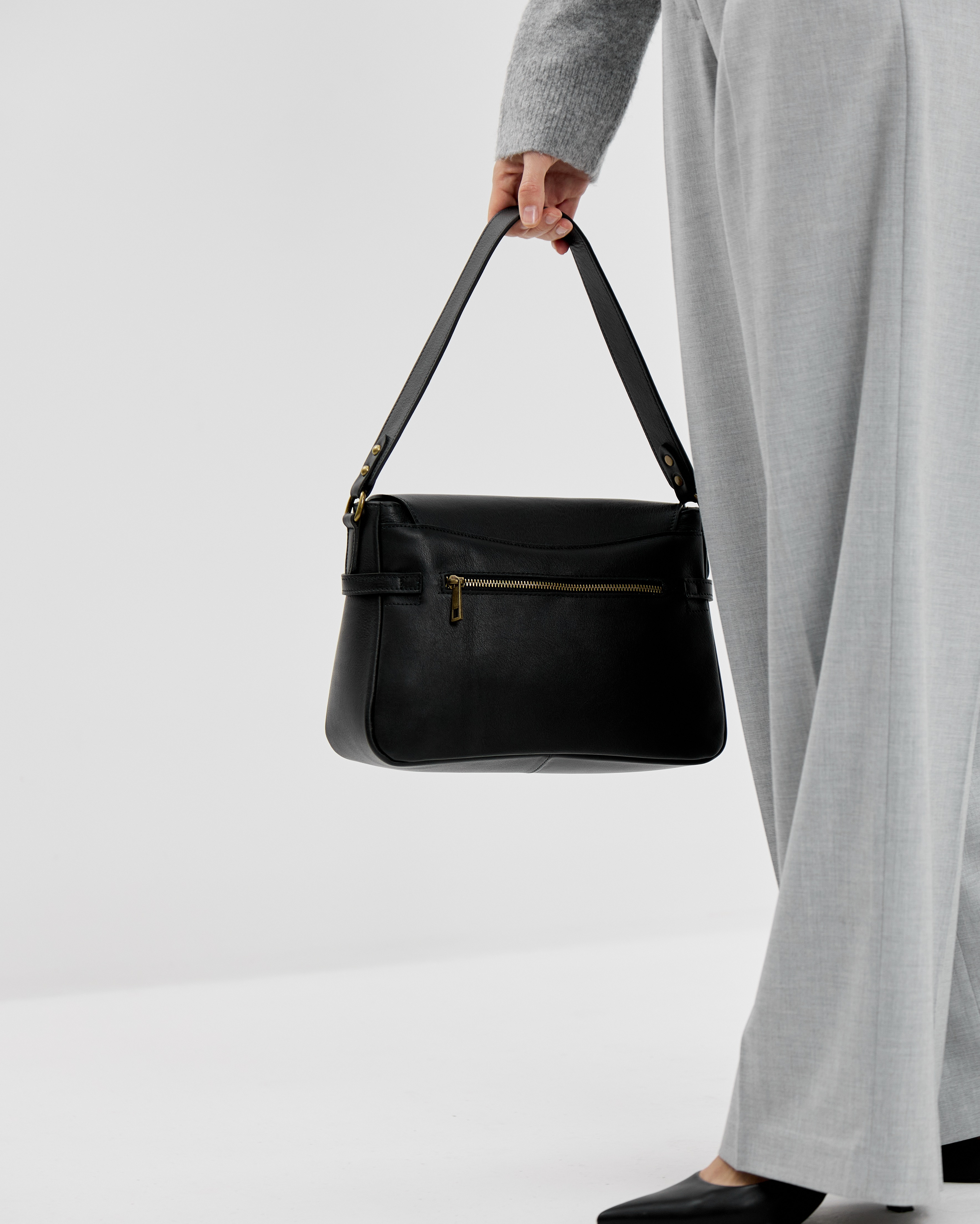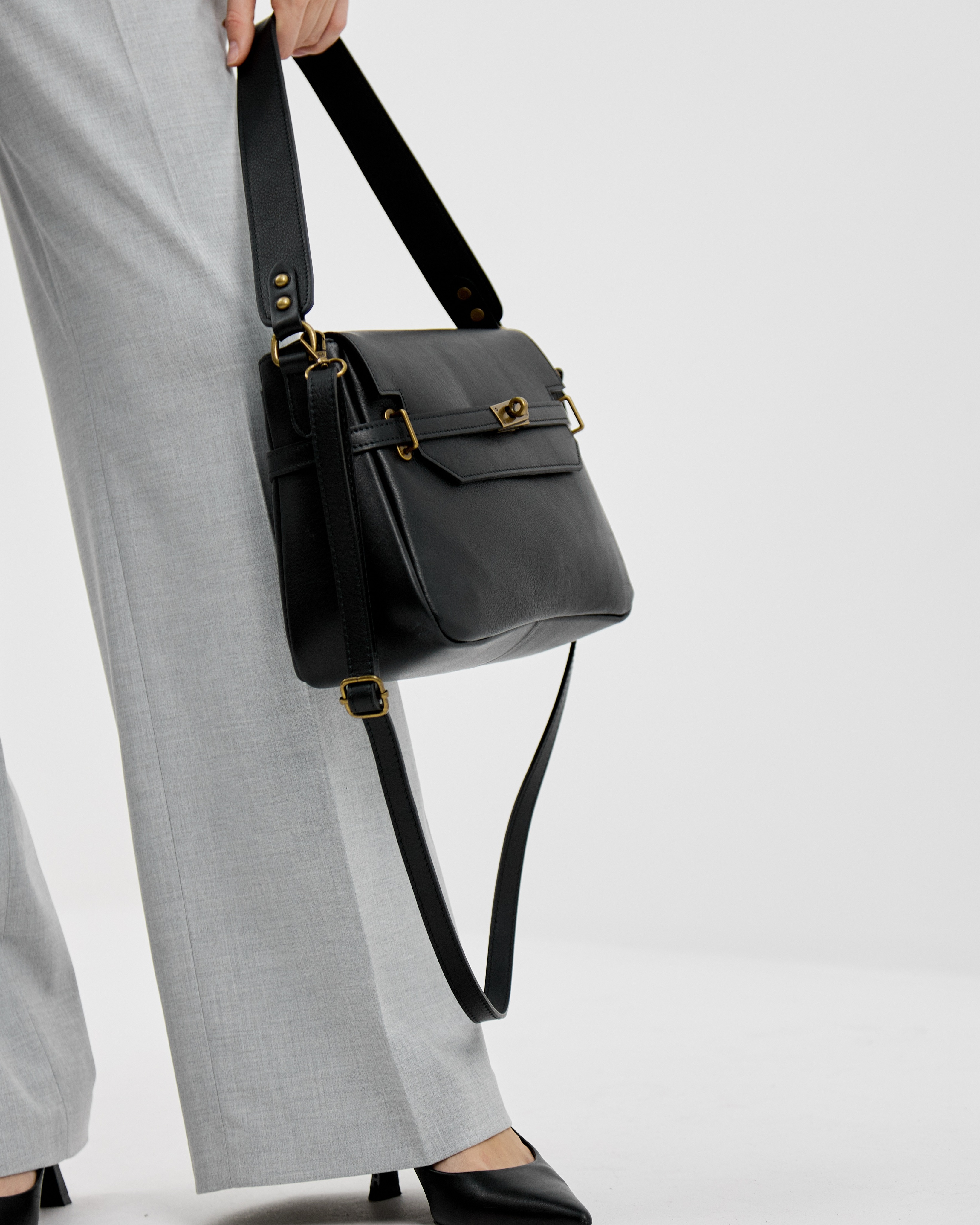 Сумка выполнена из натуральной кожи и декорирована фурнитурой латунного цвета. Лаконичный дизайн сумки позволяет легко сочетать ее с разными образами .