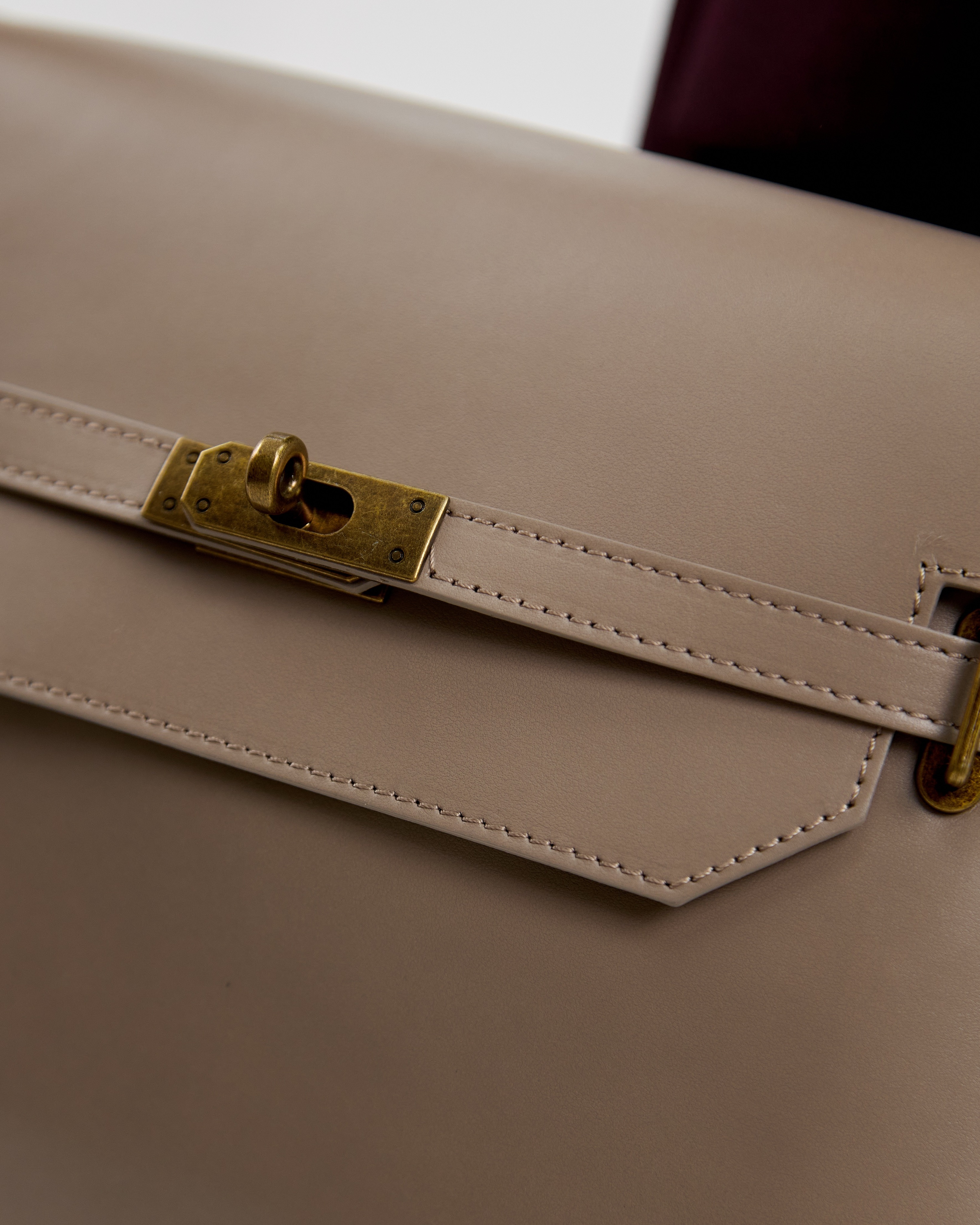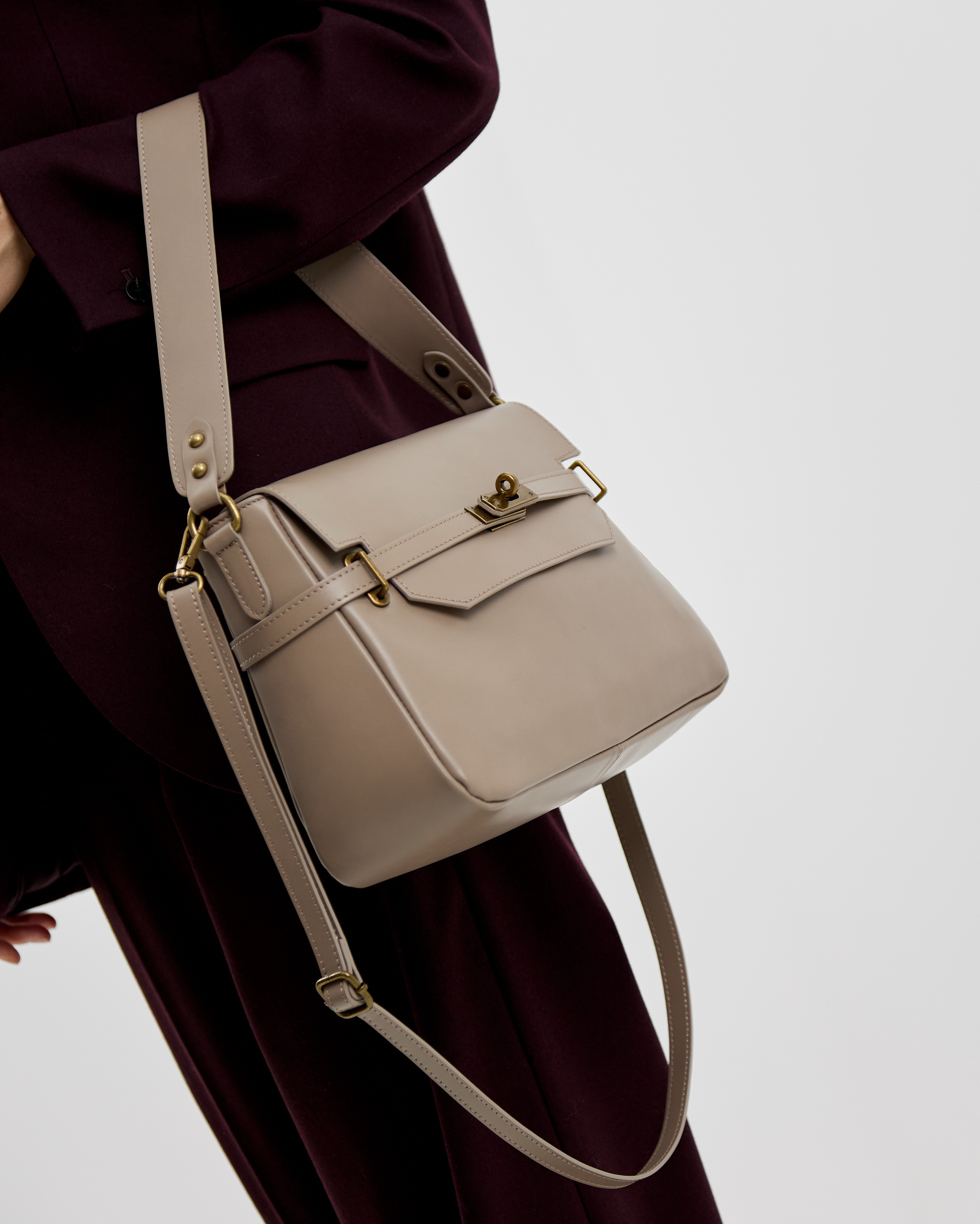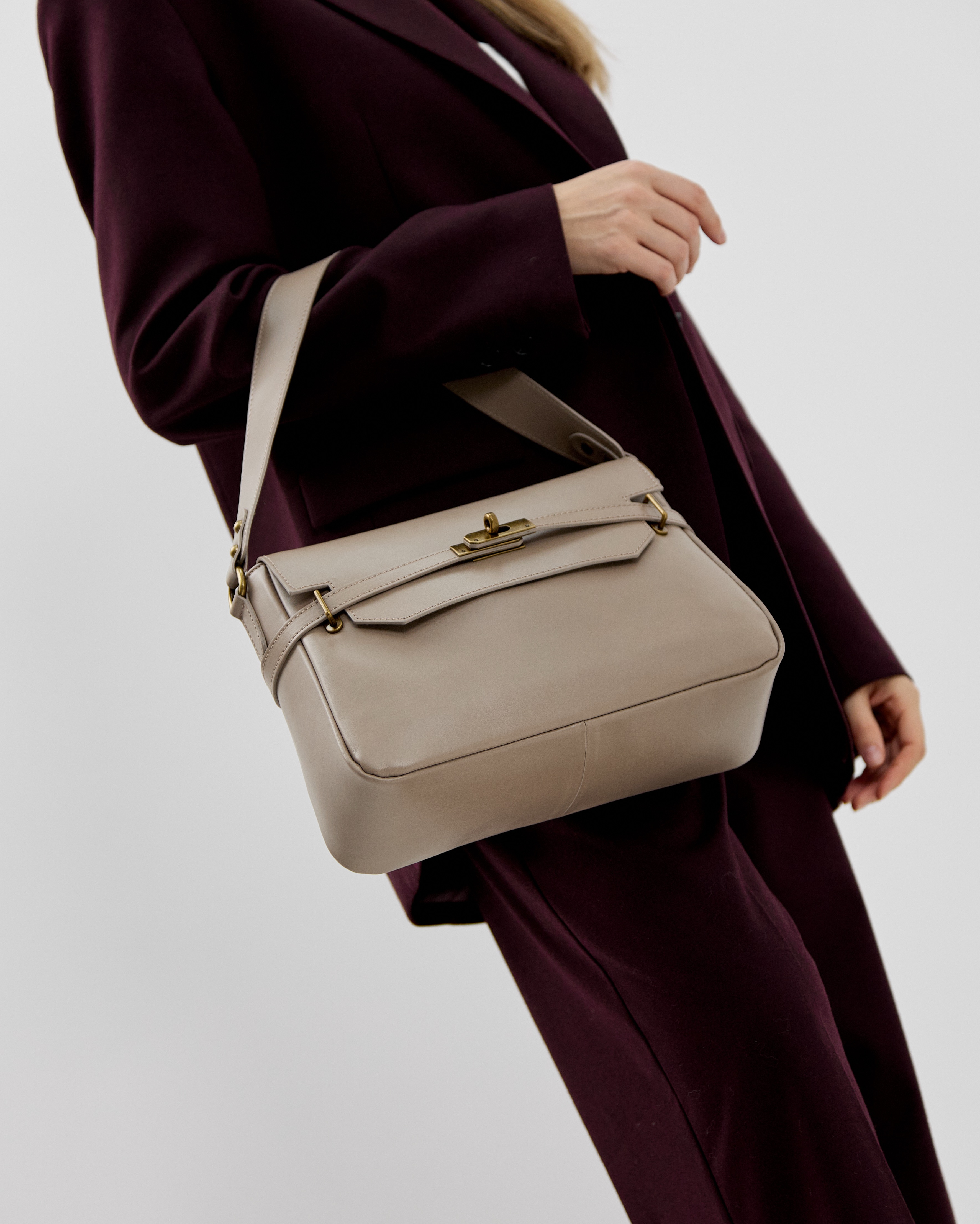Сумка выполнена из натуральной кожи и декорирована фурнитурой латунного цвета. Лаконичный дизайн сумки позволяет легко сочетать ее с разными образами .