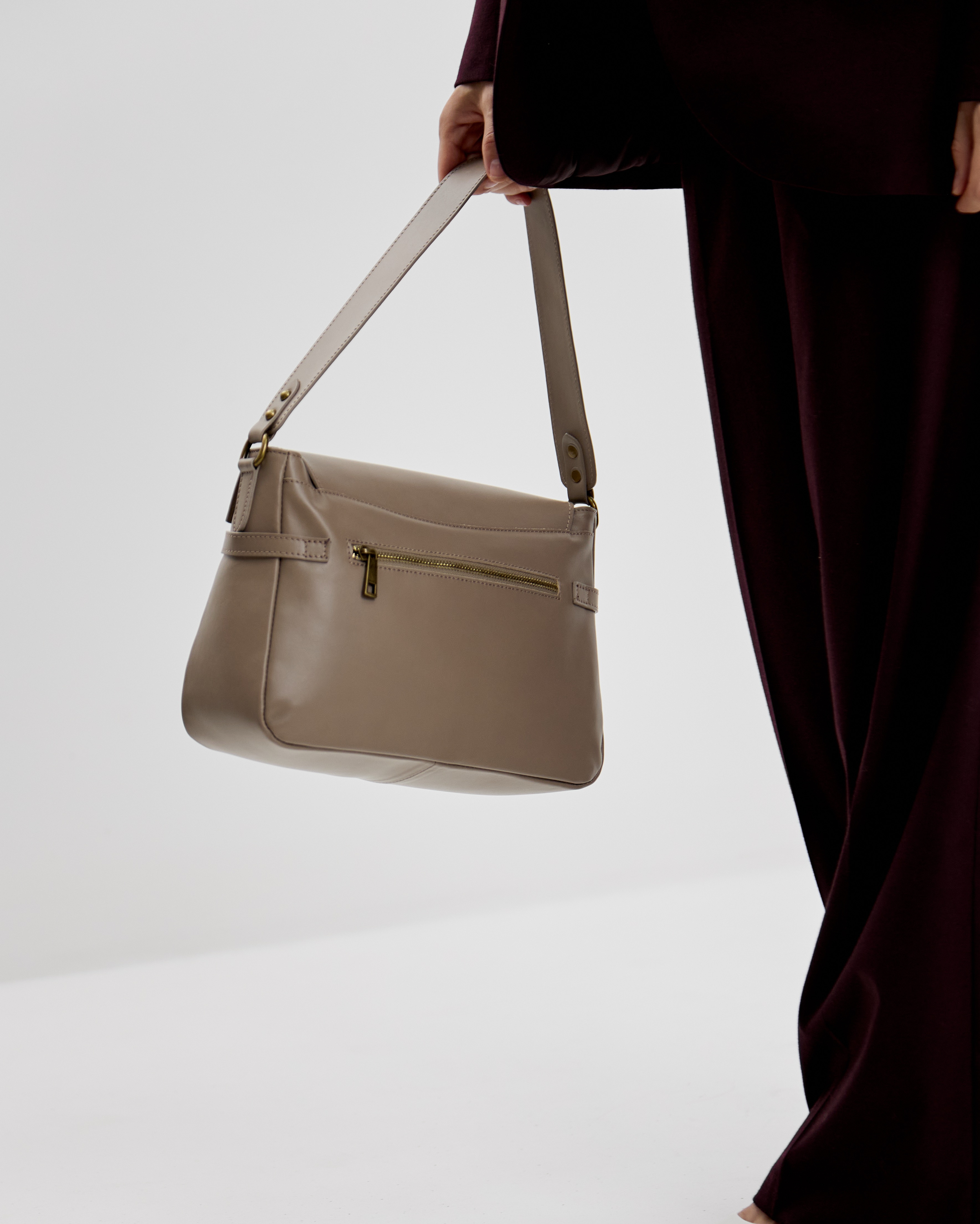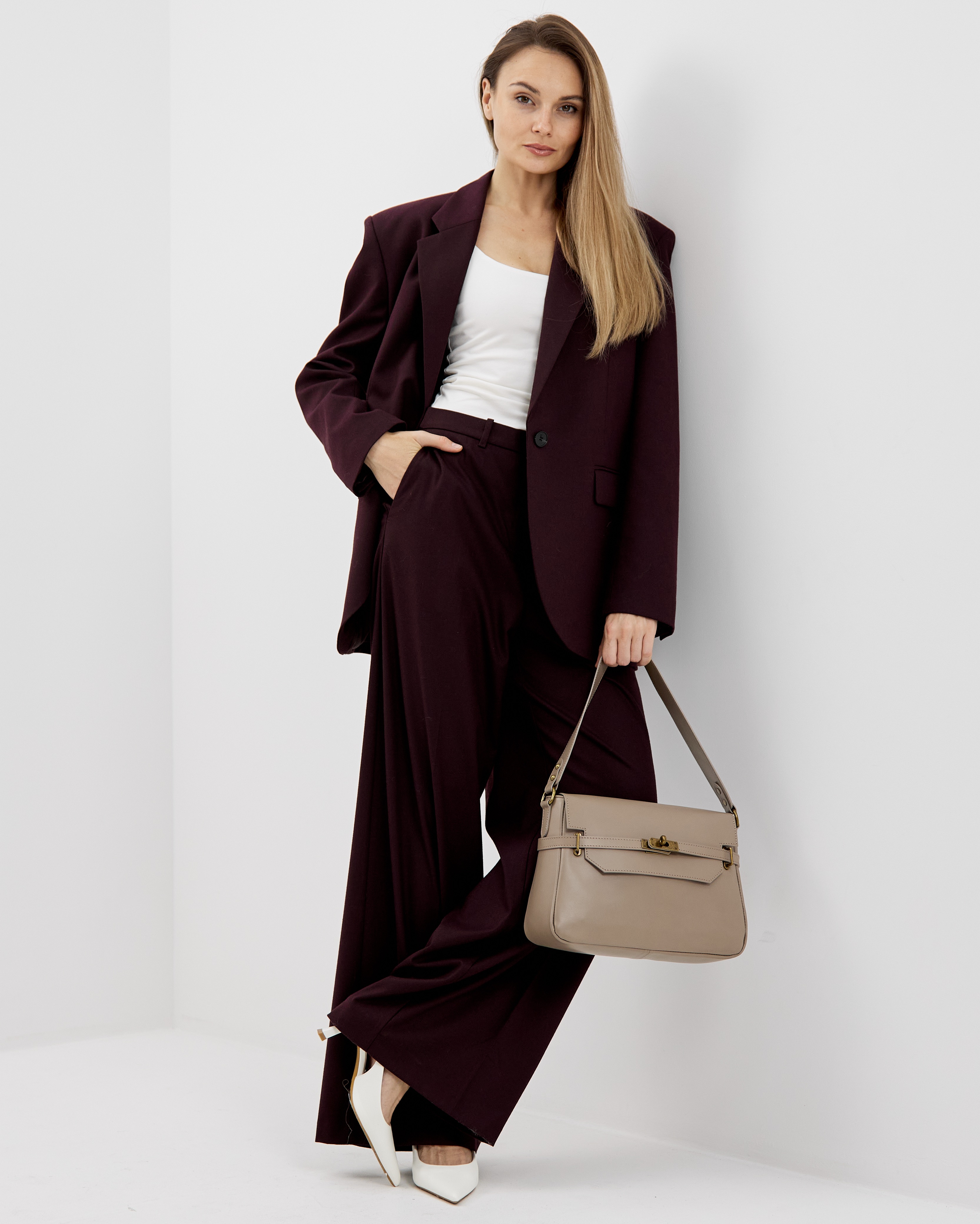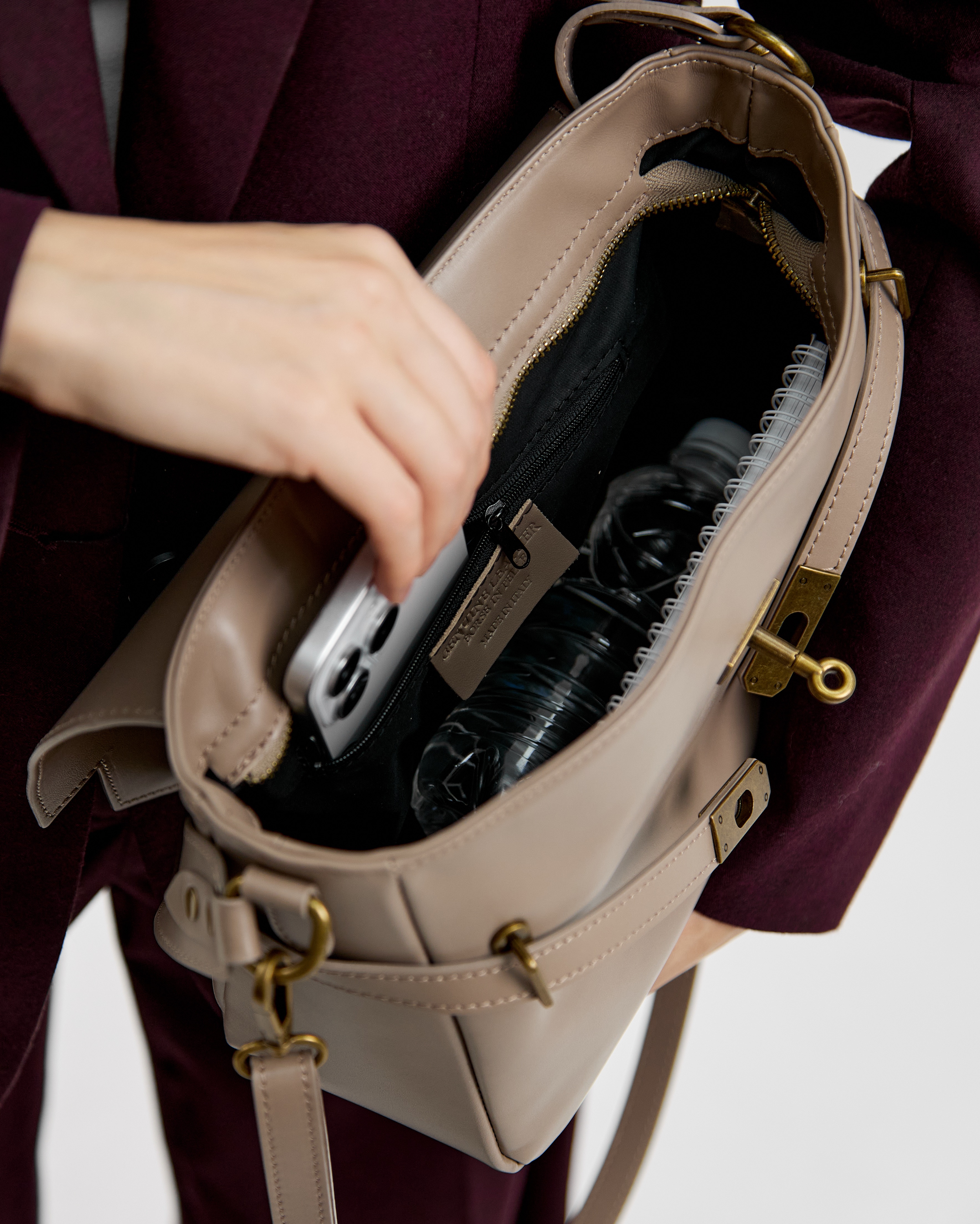 Сумка выполнена из натуральной кожи и декорирована фурнитурой латунного цвета. Лаконичный дизайн сумки позволяет легко сочетать ее с разными образами .