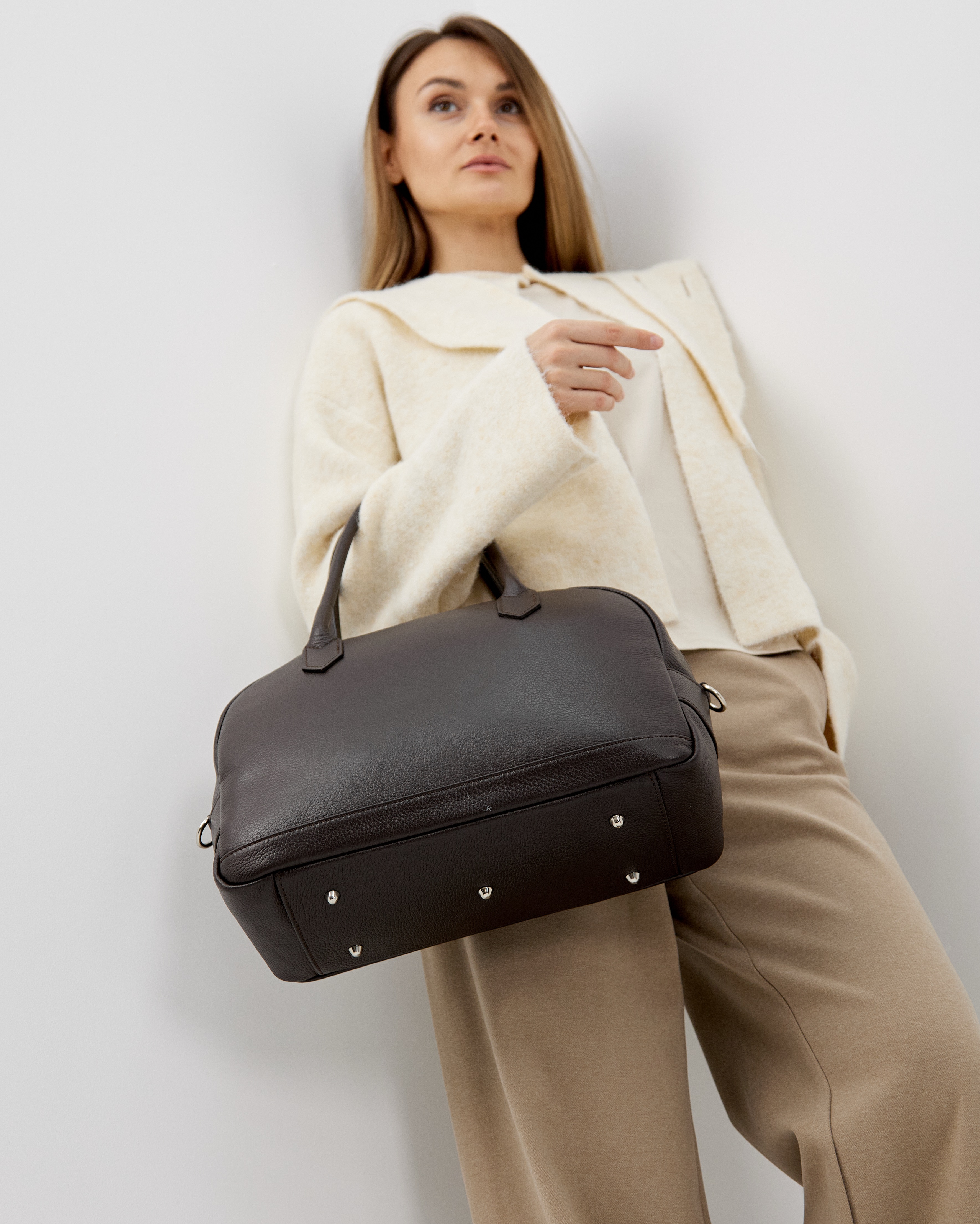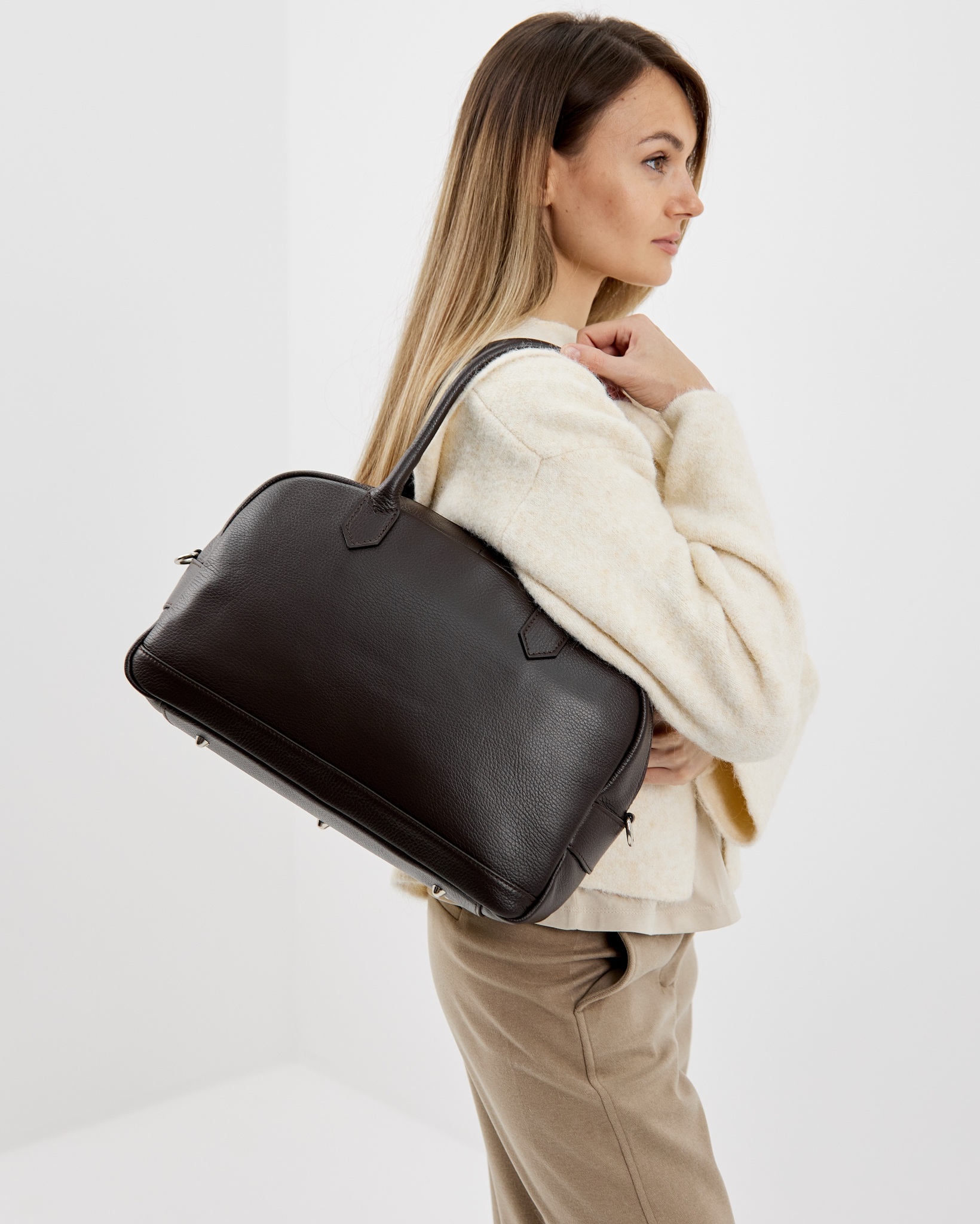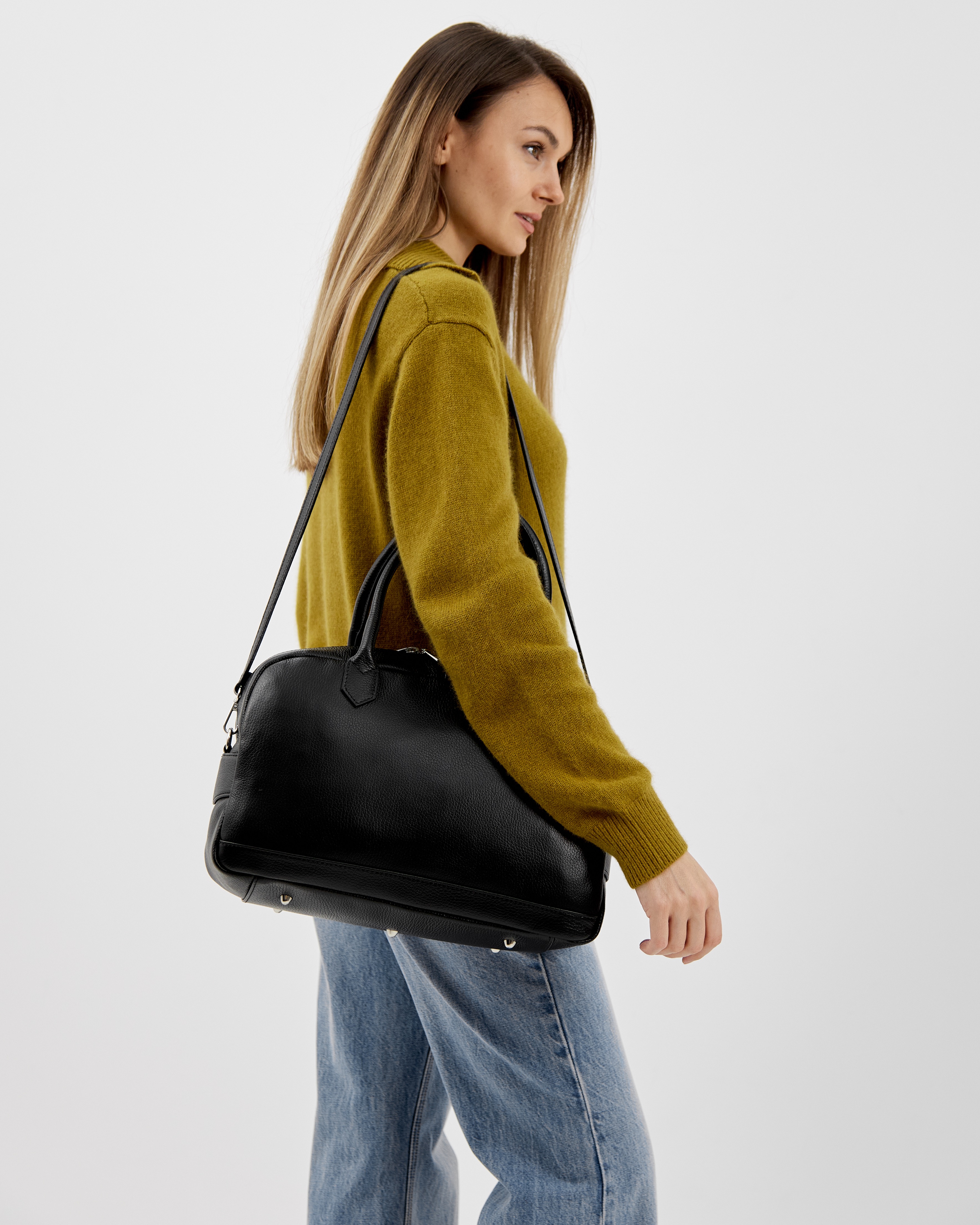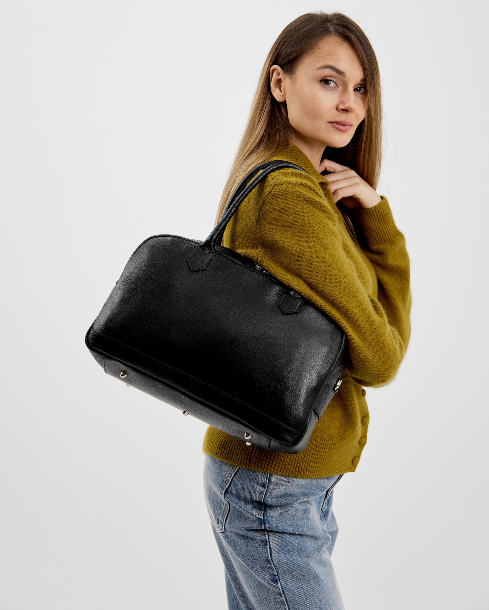 Сумку удобно носить как за ручки в руке или на предплечье, так и с помощью длинного  ремня, который входит в комплект. Закрывается надежно на молнию.