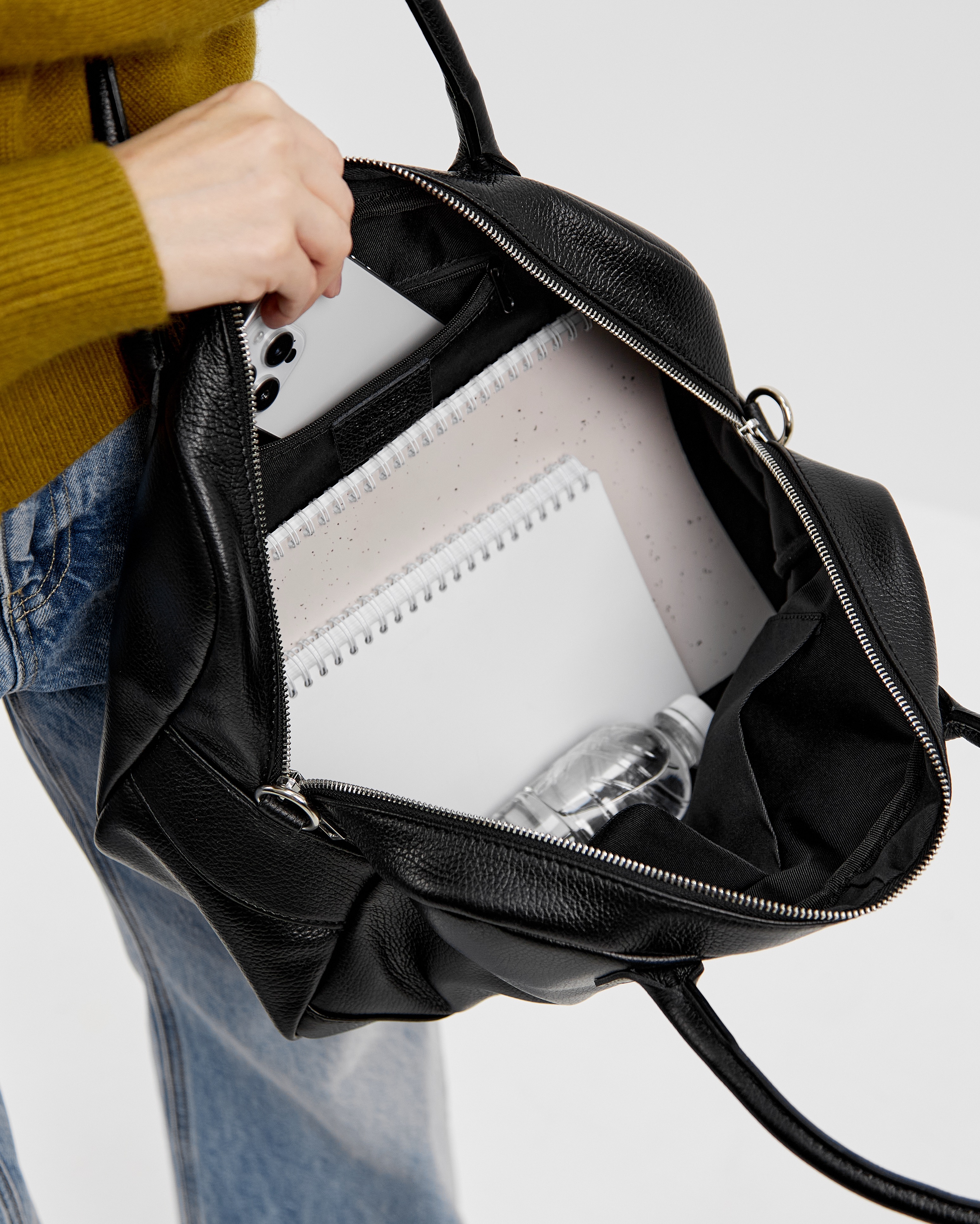 Внутри сумки вас ждет продуманное пространство: одно отделение, а также дополнительный карман на молнии и два кармана открытого типа. Снаружи: на задней стенке также расположен карман на молнии.