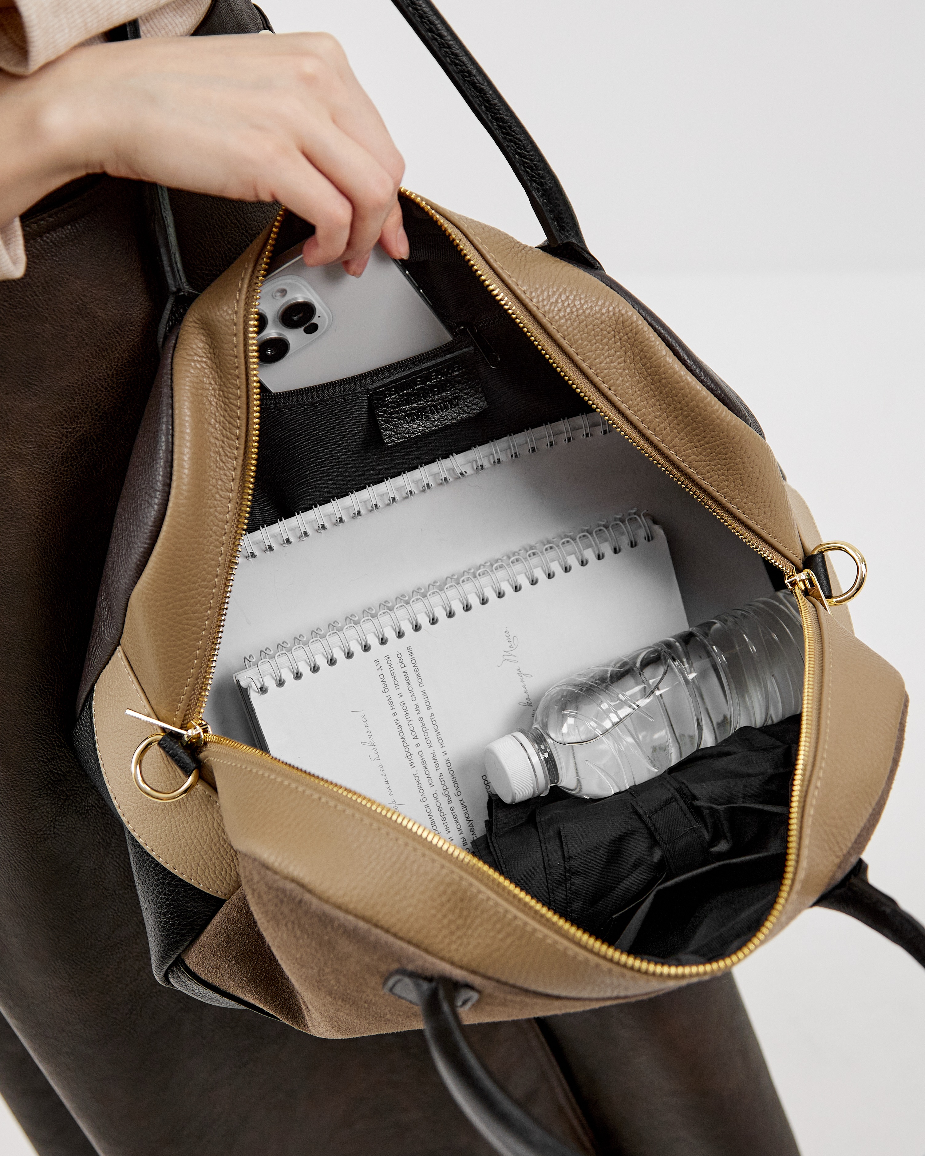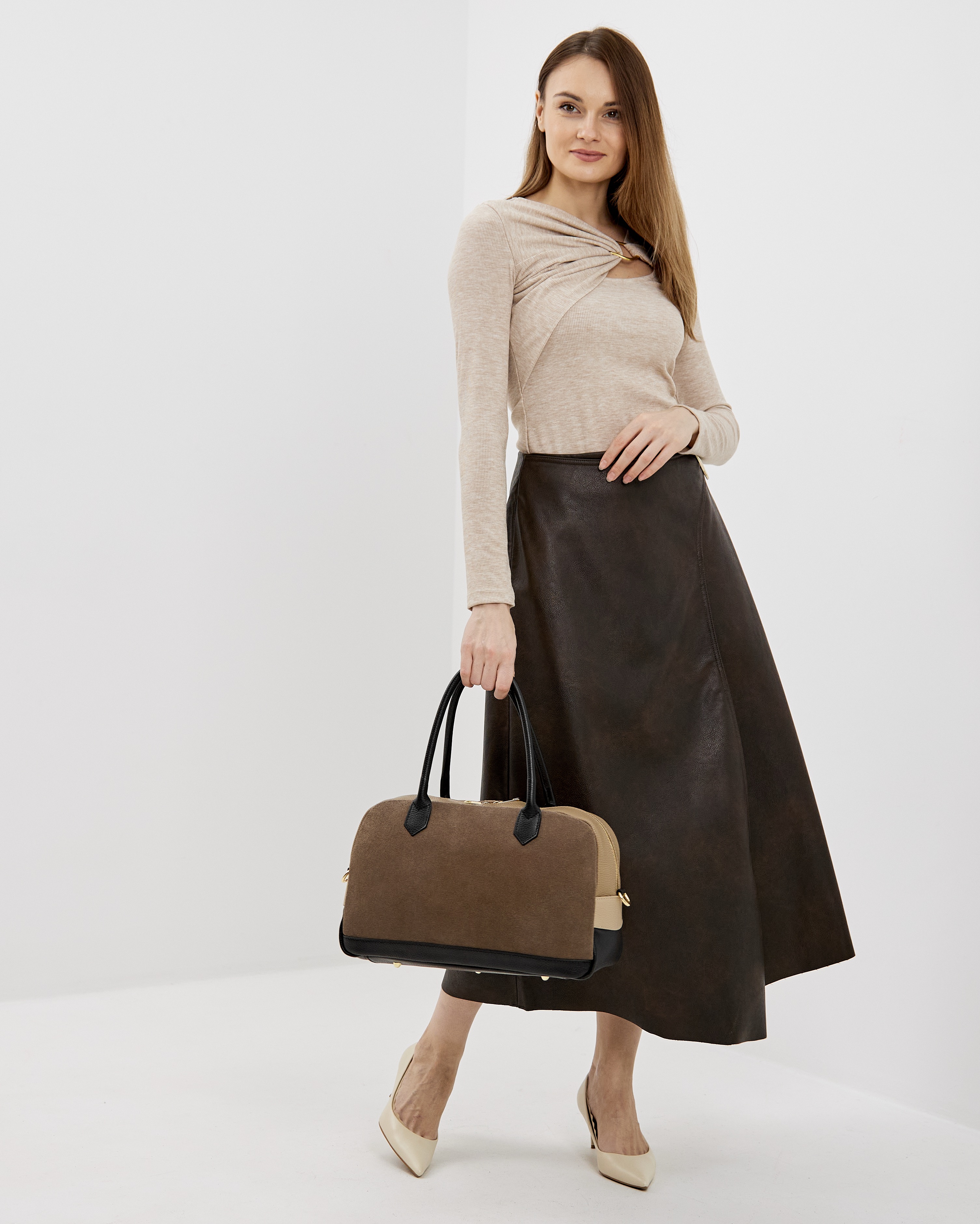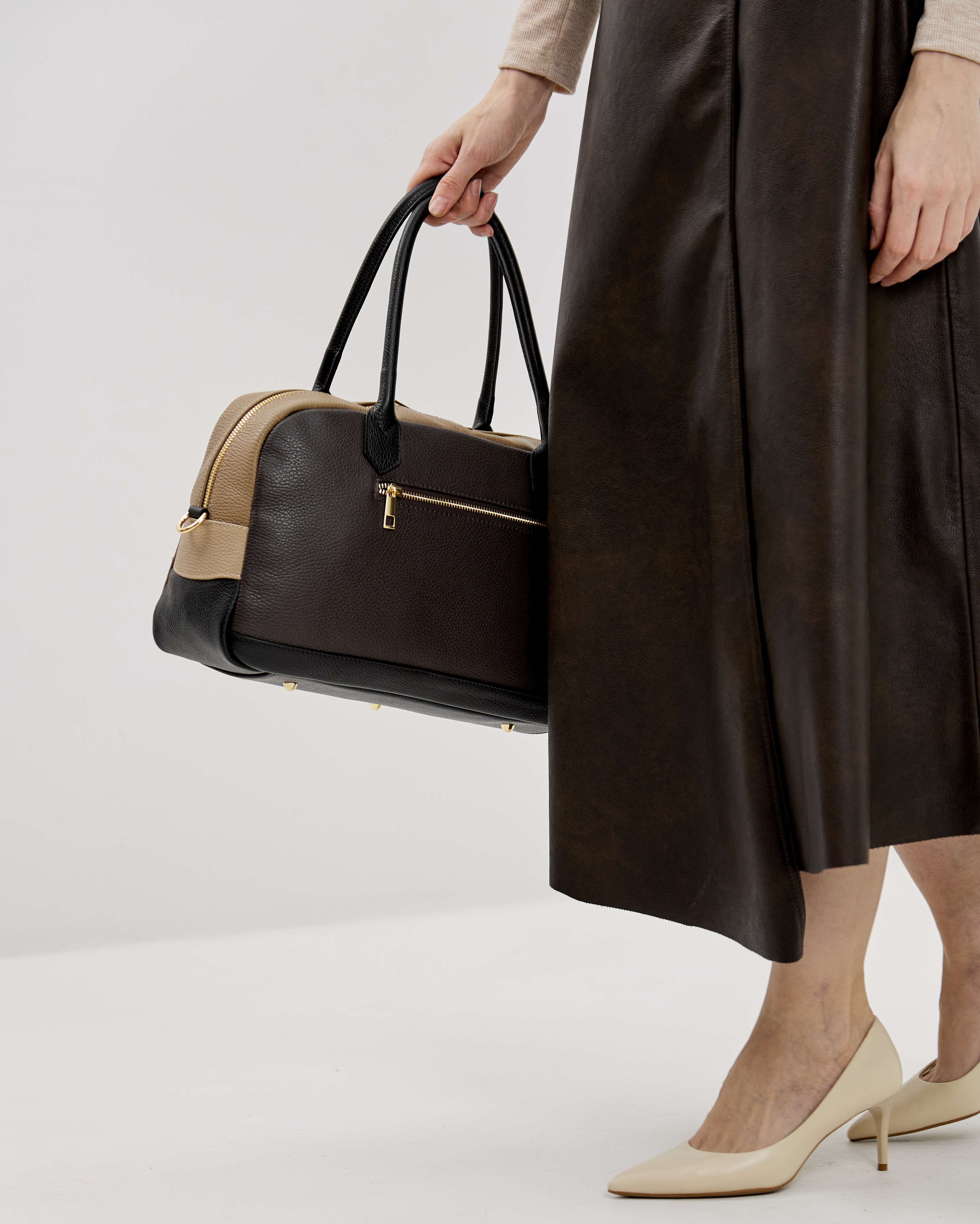 Сумку удобно носить как за ручки в руке или на предплечье, так и с помощью длинного ремня, который входит в комплект. Закрывается надежно на молнию.