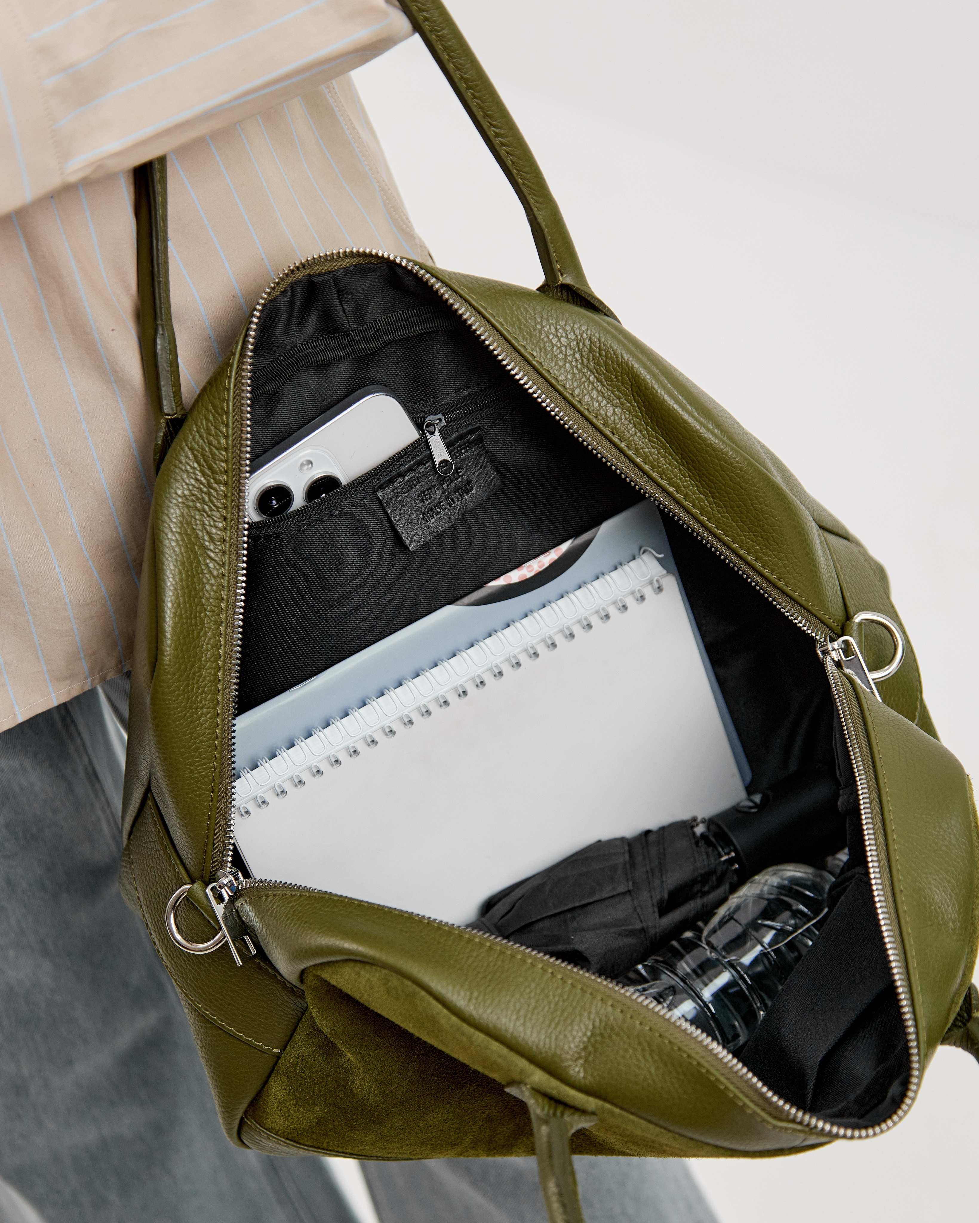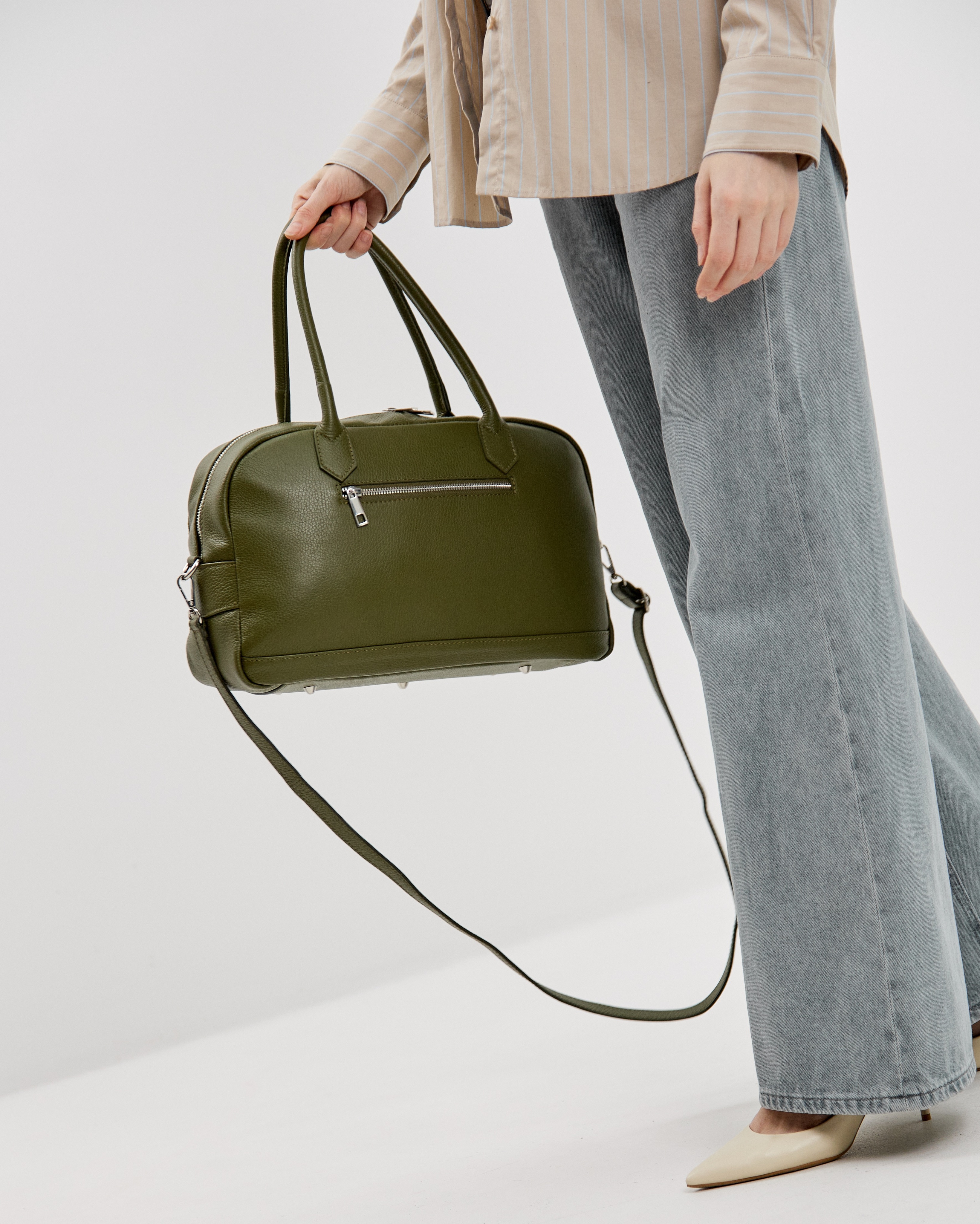 Сумку удобно носить как за ручки в руке или на предплечье, так и с помощью длинного ремня, который входит в комплект. Закрывается надежно на молнию.
