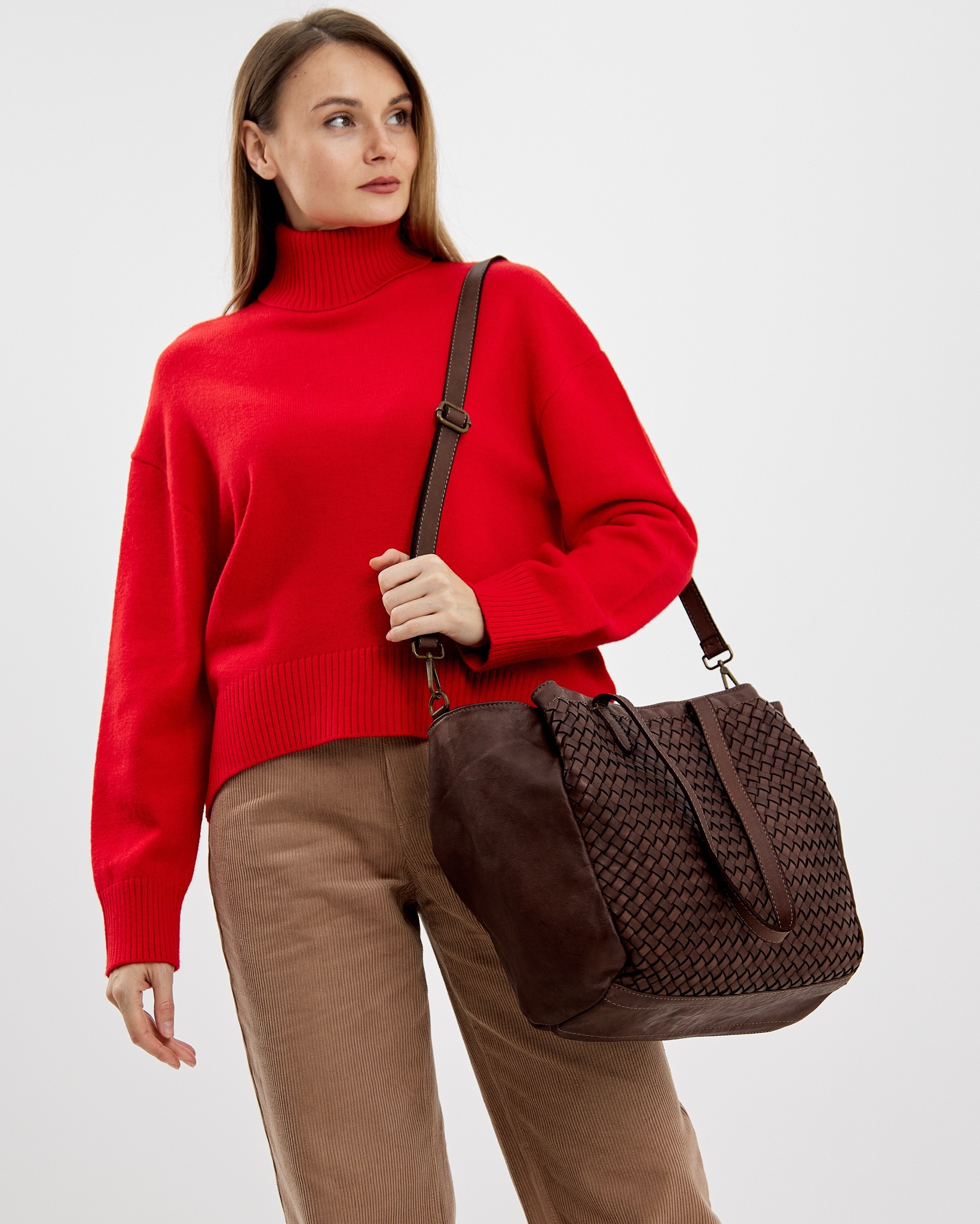 Сумку удобно носить как за короткие ручки в руке или на плече, так и с помощью длинного ремня, который входит в комплект. Закрывается надежно с помощью молнии.
