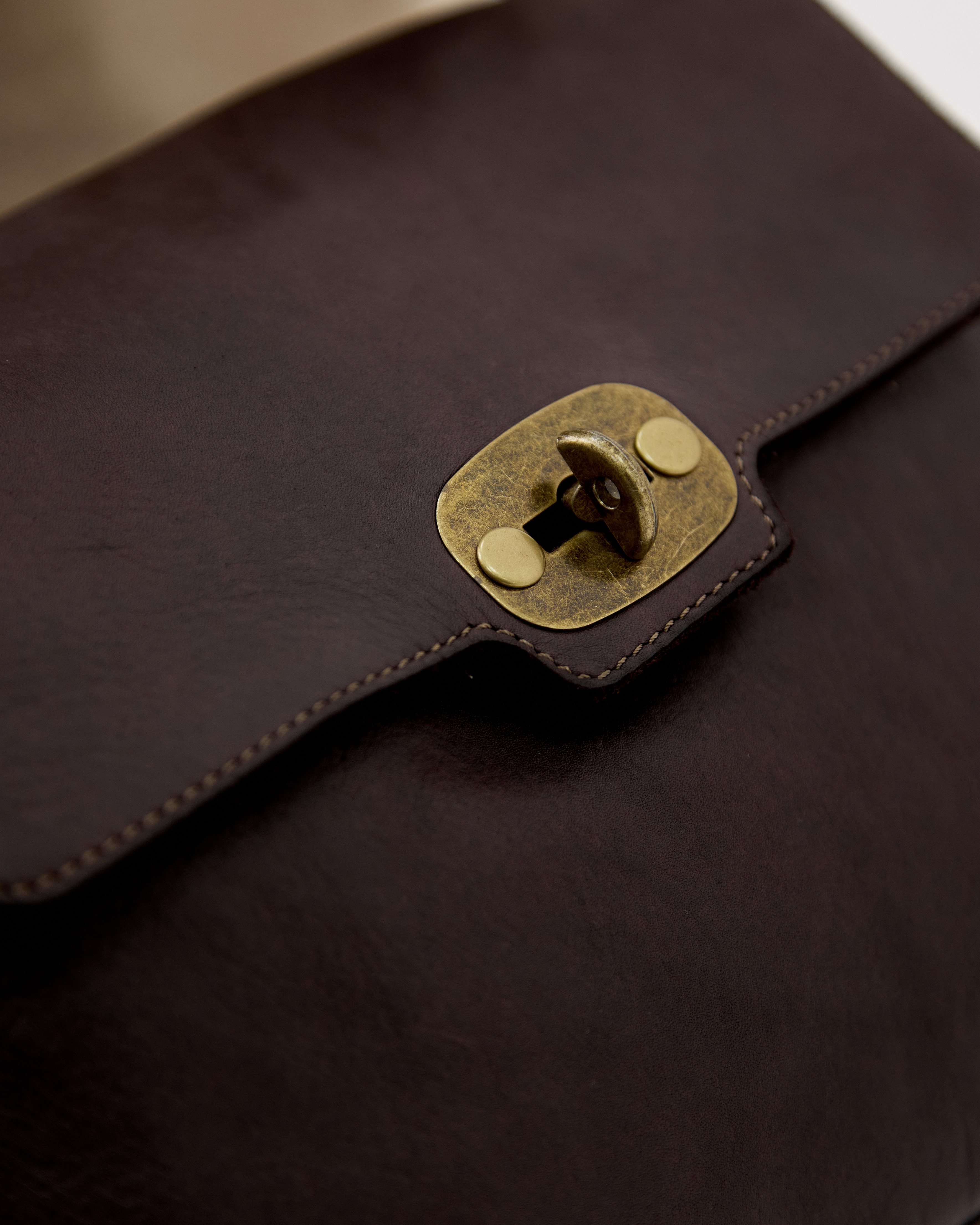 Сумка выполнена из натуральной кожи и декорирована фурнитурой латунного цвета.