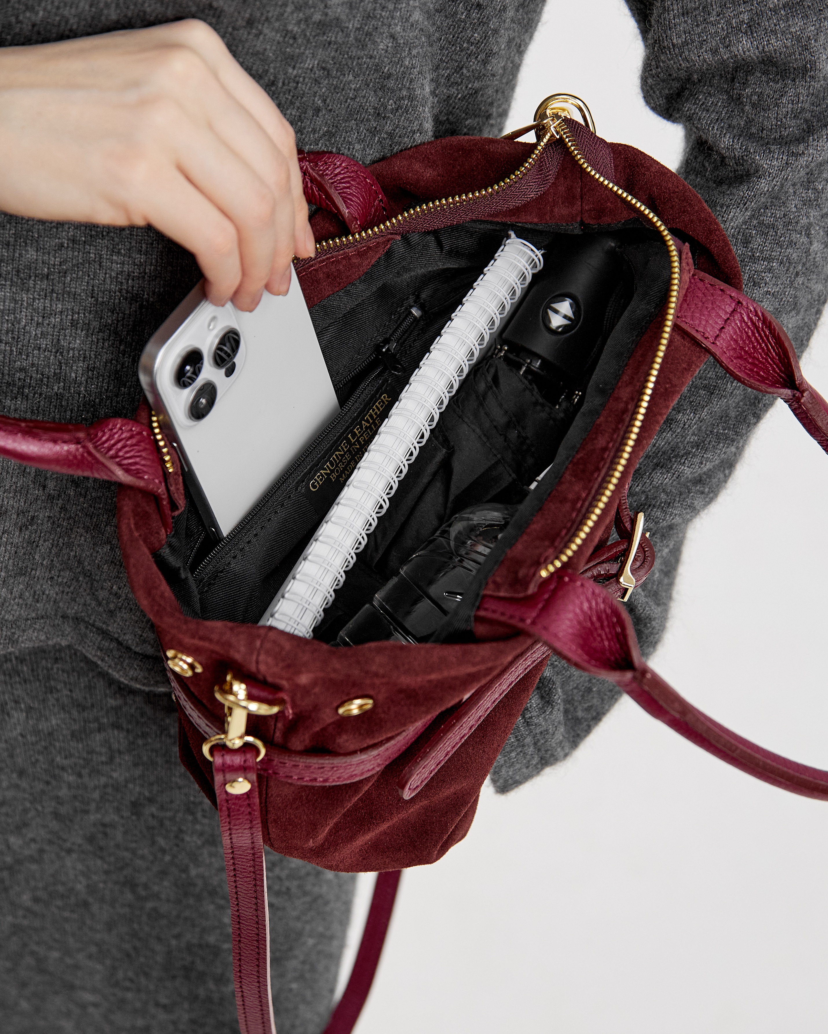 Сумку удобно носить как за короткие ручки в руке или на предплечье, так и с помощью длинного регулируемого ремня, который входит в комплект. Закрывается надежно с помощью молнии.