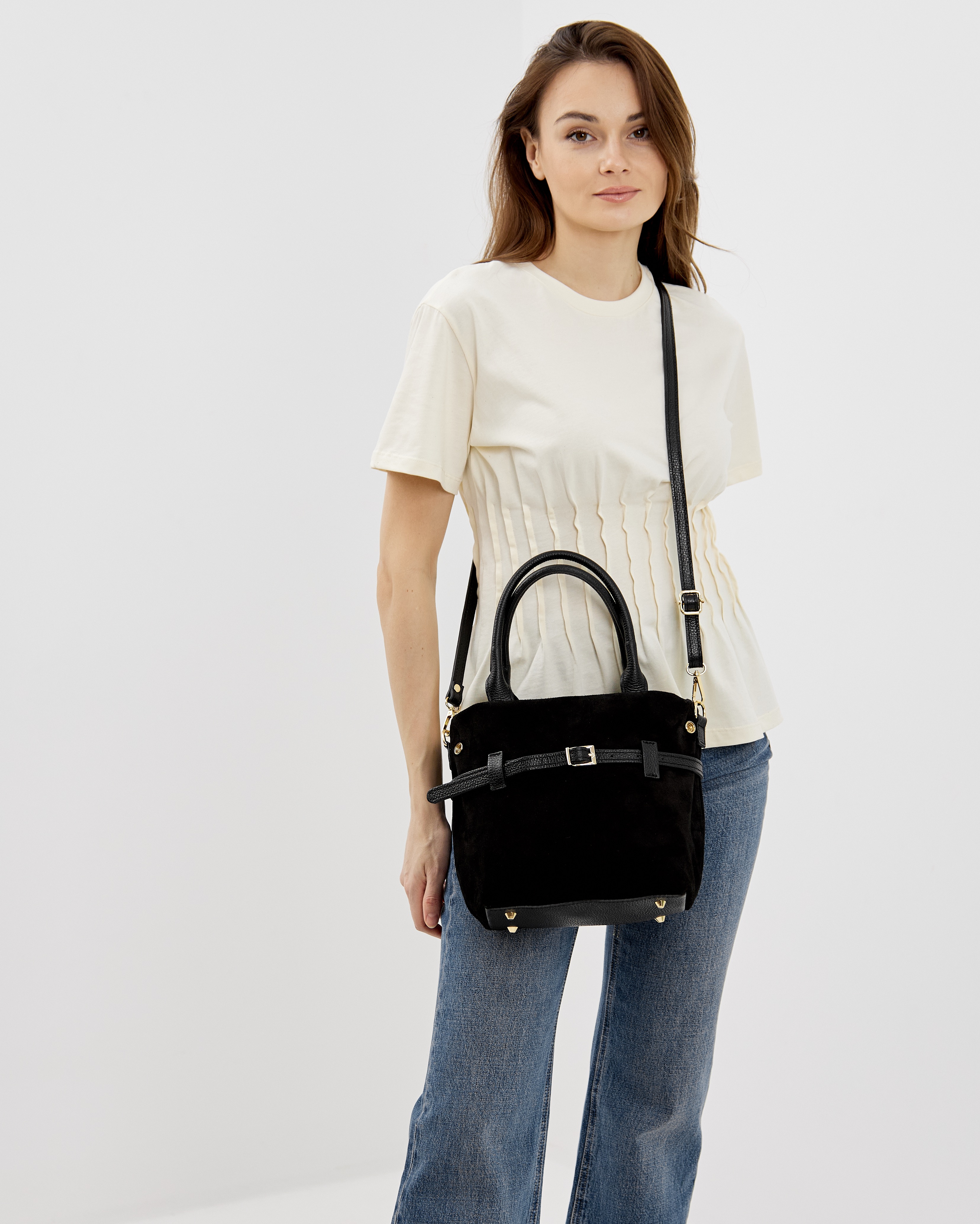 Сумку удобно носить как за короткие ручки в руке или на предплечье, так и с помощью длинного регулируемого ремня, который входит в комплект. Закрывается надежно с помощью молнии.