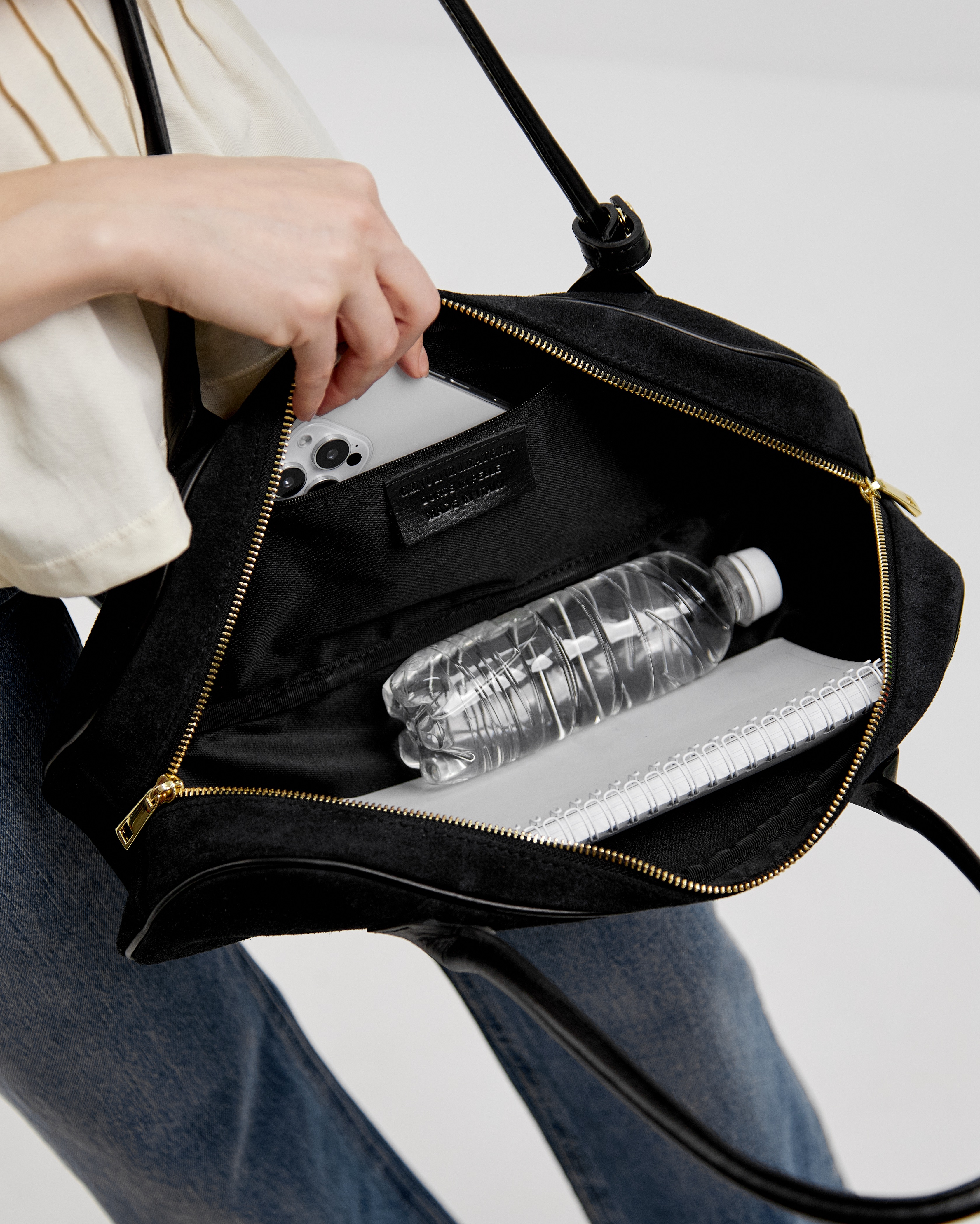 Внутри сумки удобное пространство: одно отделение, а также дополнительный карман на молнии.