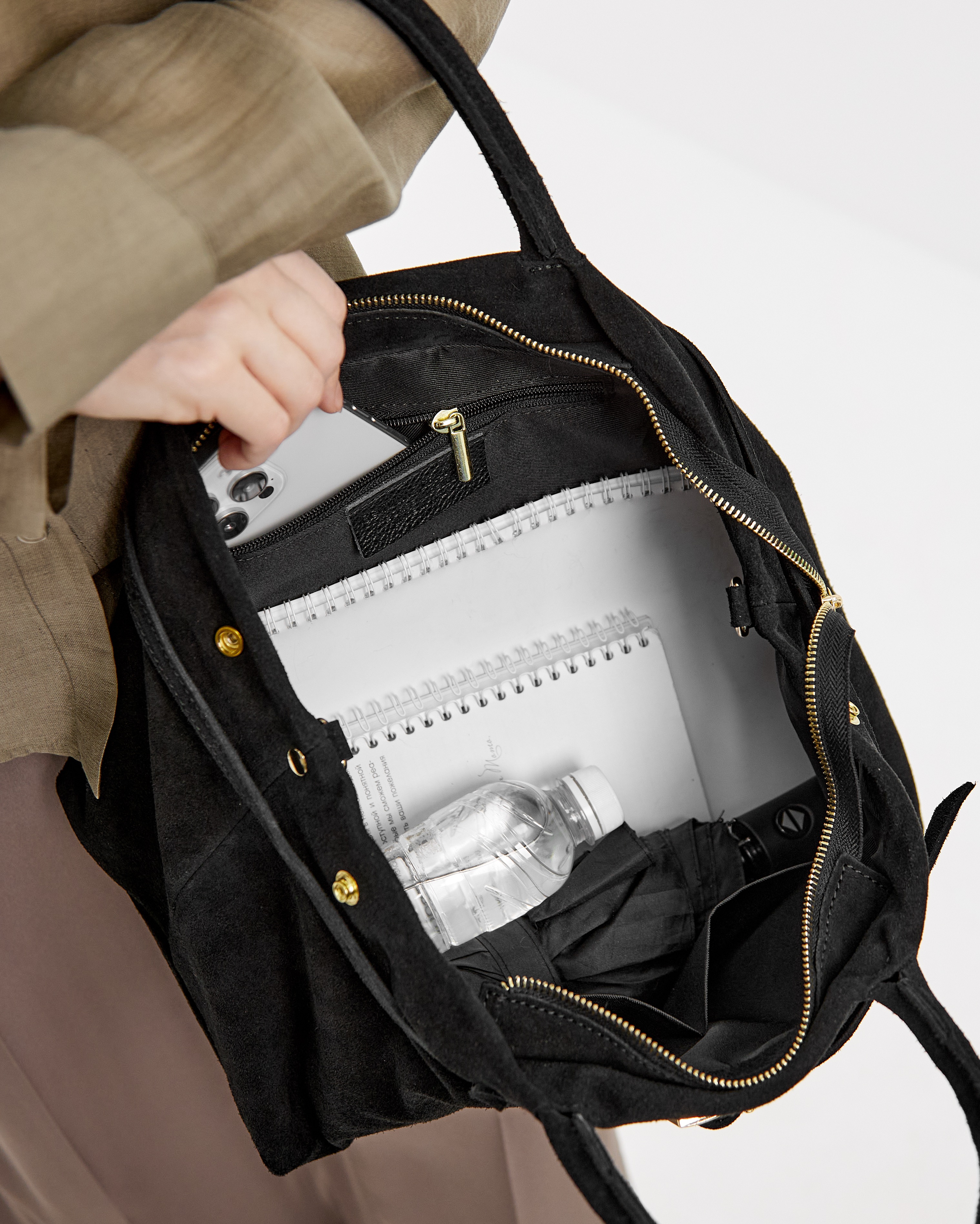 Внутри сумки продуманное пространство: одно отделение, а также дополнительный карман на молнии и два кармана быстрого доступа.