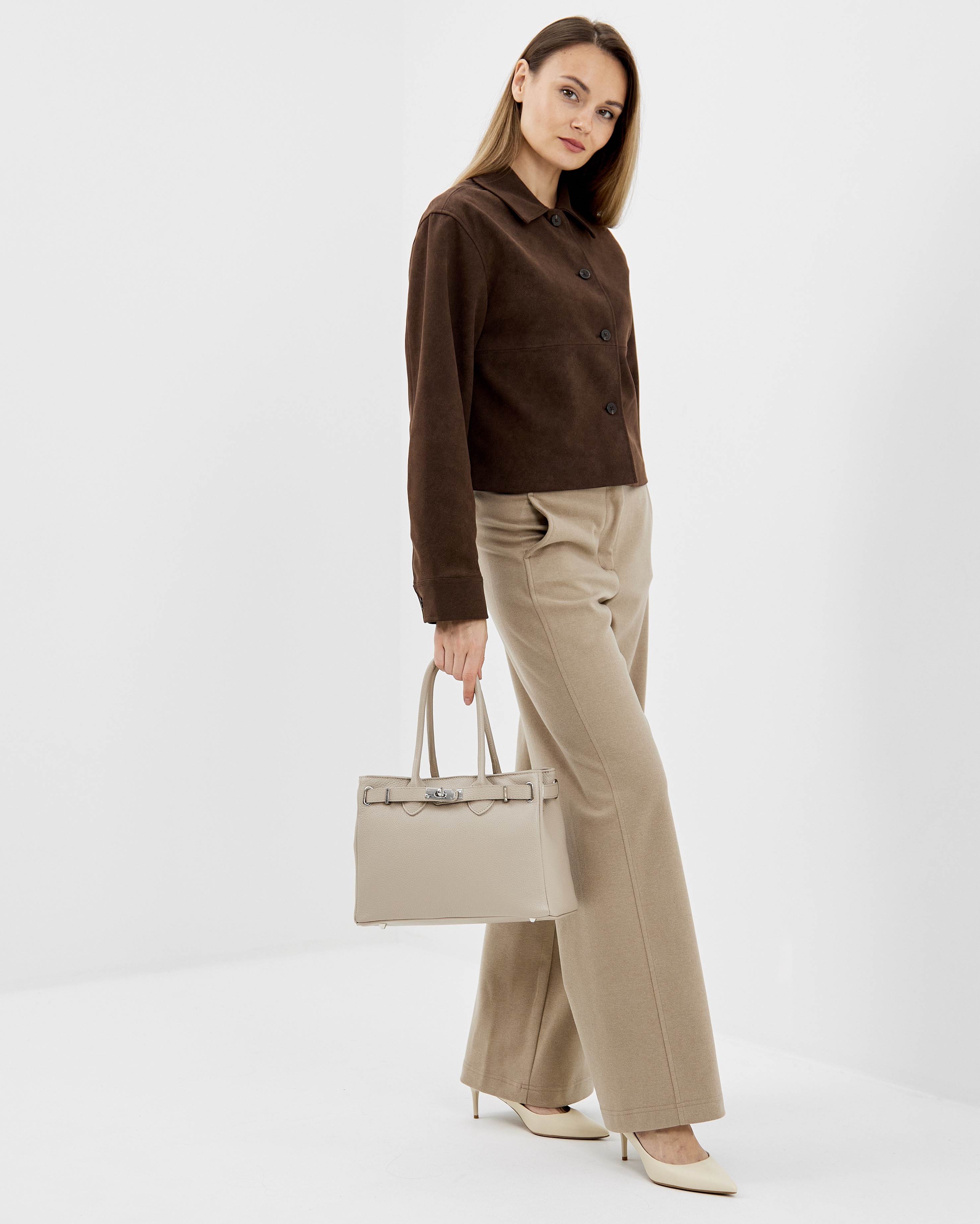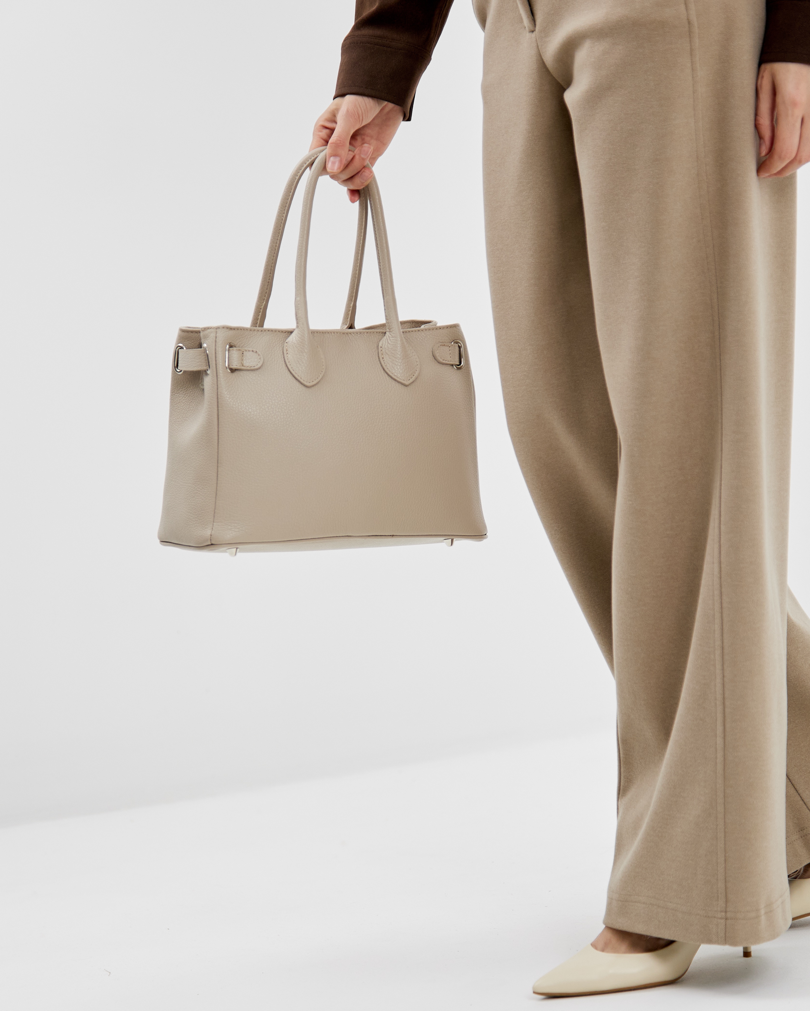 Сумку удобно носить как за короткие ручки в руке или на предплечье, так и с помощью длинного нерегулируемого ремня, который входит в комплект. Закрывается надежно с помощью поворотного механизма и молнии.