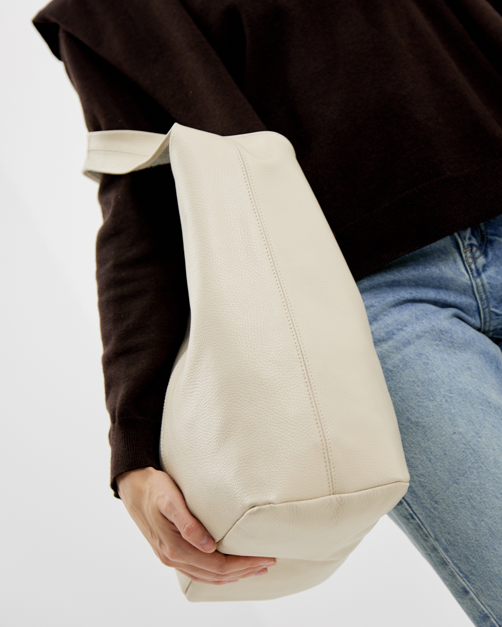 Сумка выполнена из натуральной зернистой кожи и декорирована фурнитурой серебряного цвета. Базовая модель, которая будет актуальна в любое время года и прекрасно подойдет для работы, путешествий и повседневных дел.