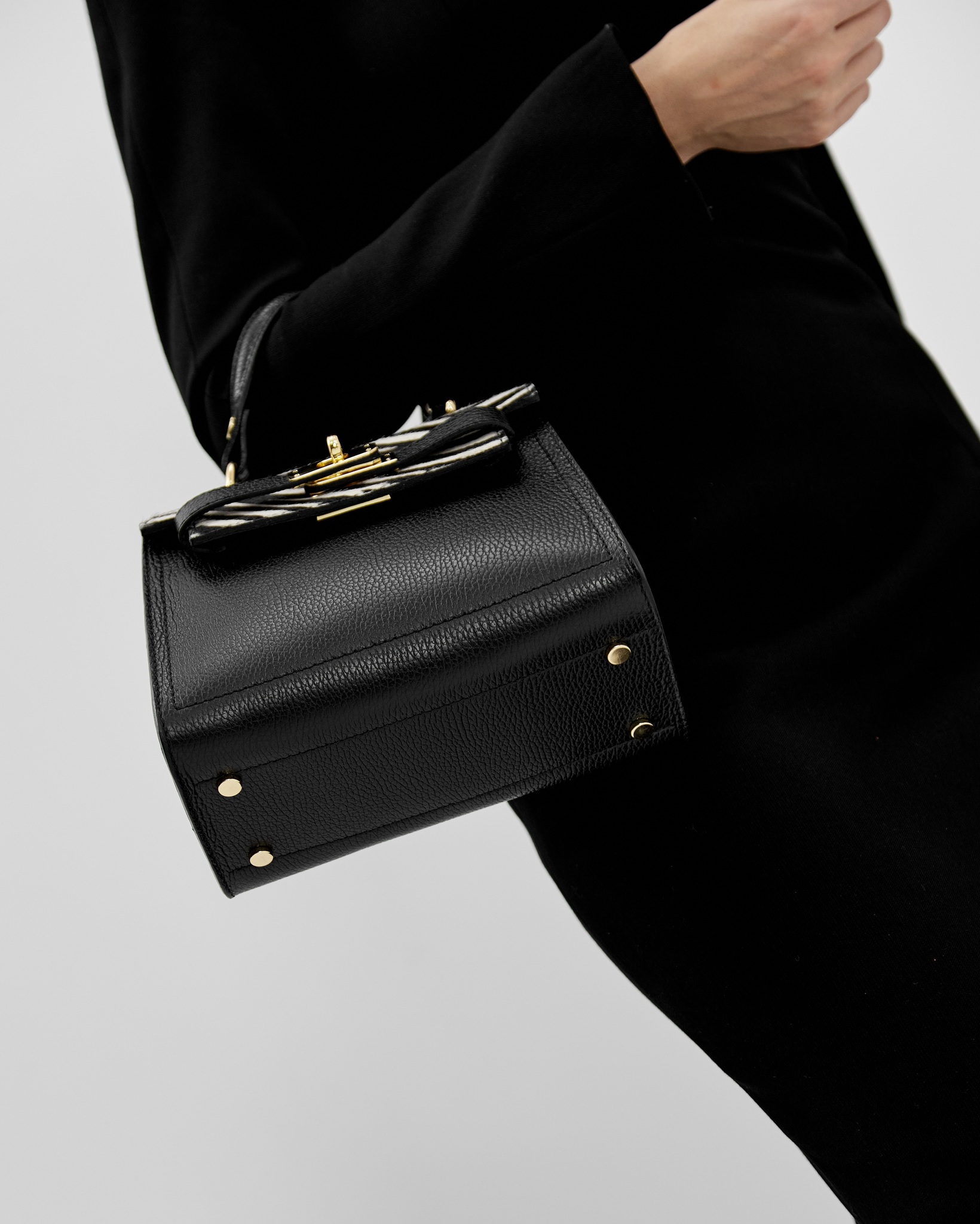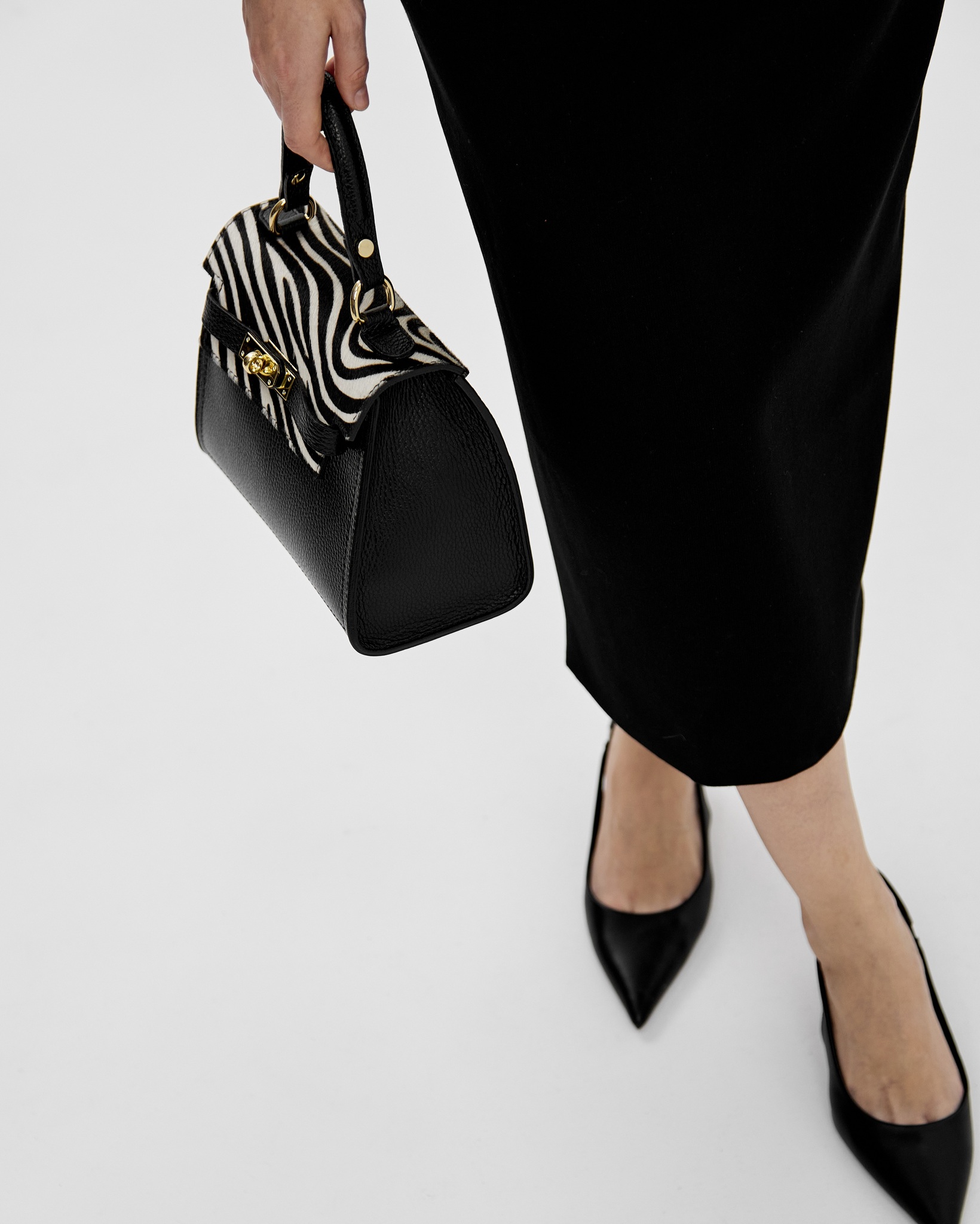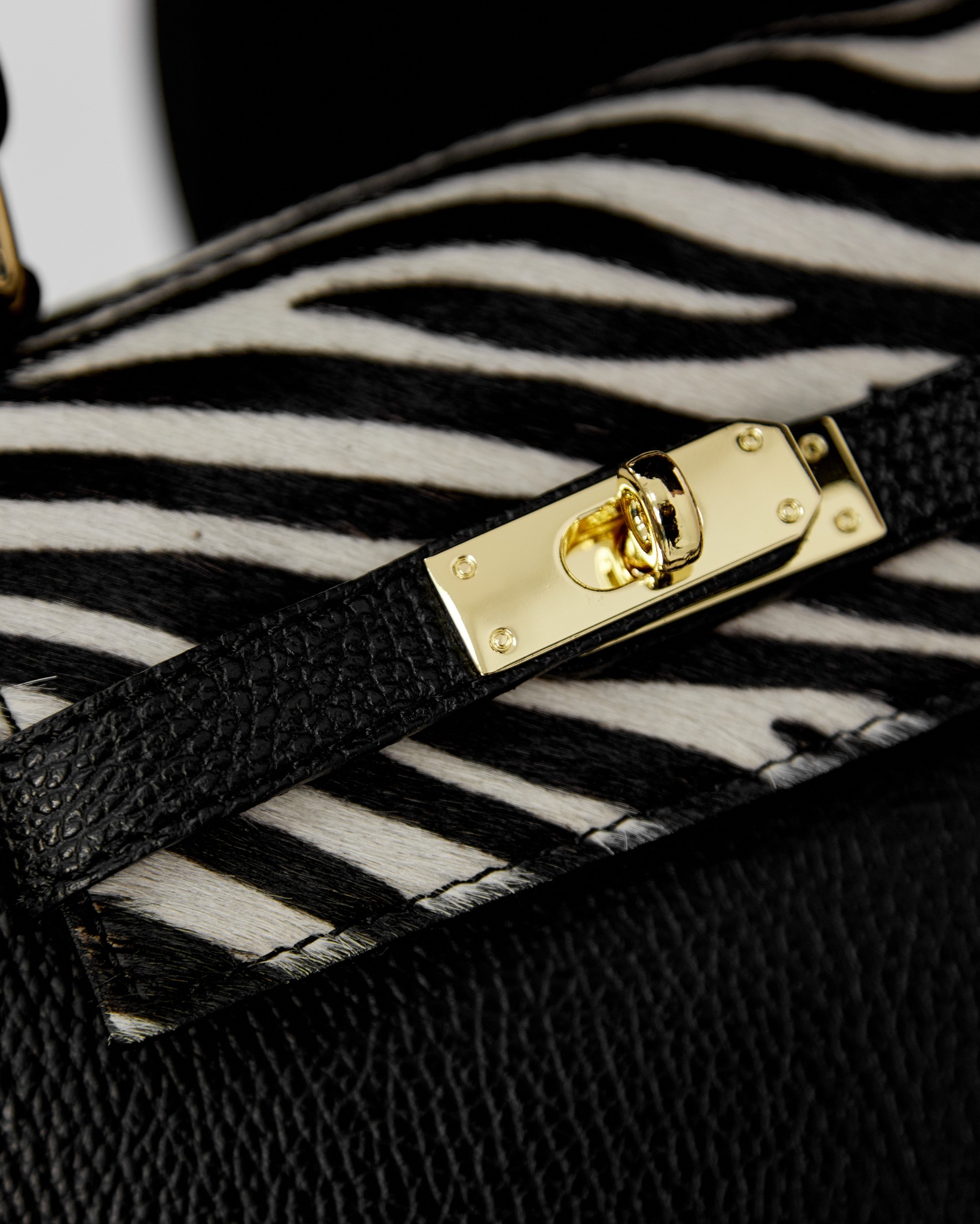Сумка удобна в использовании: можно носить за короткую ручку в руке или в формате кросс-боди благодаря регулируемому ремню. Сумка надежно закрывается с помощью поворотного механизма и молнии.