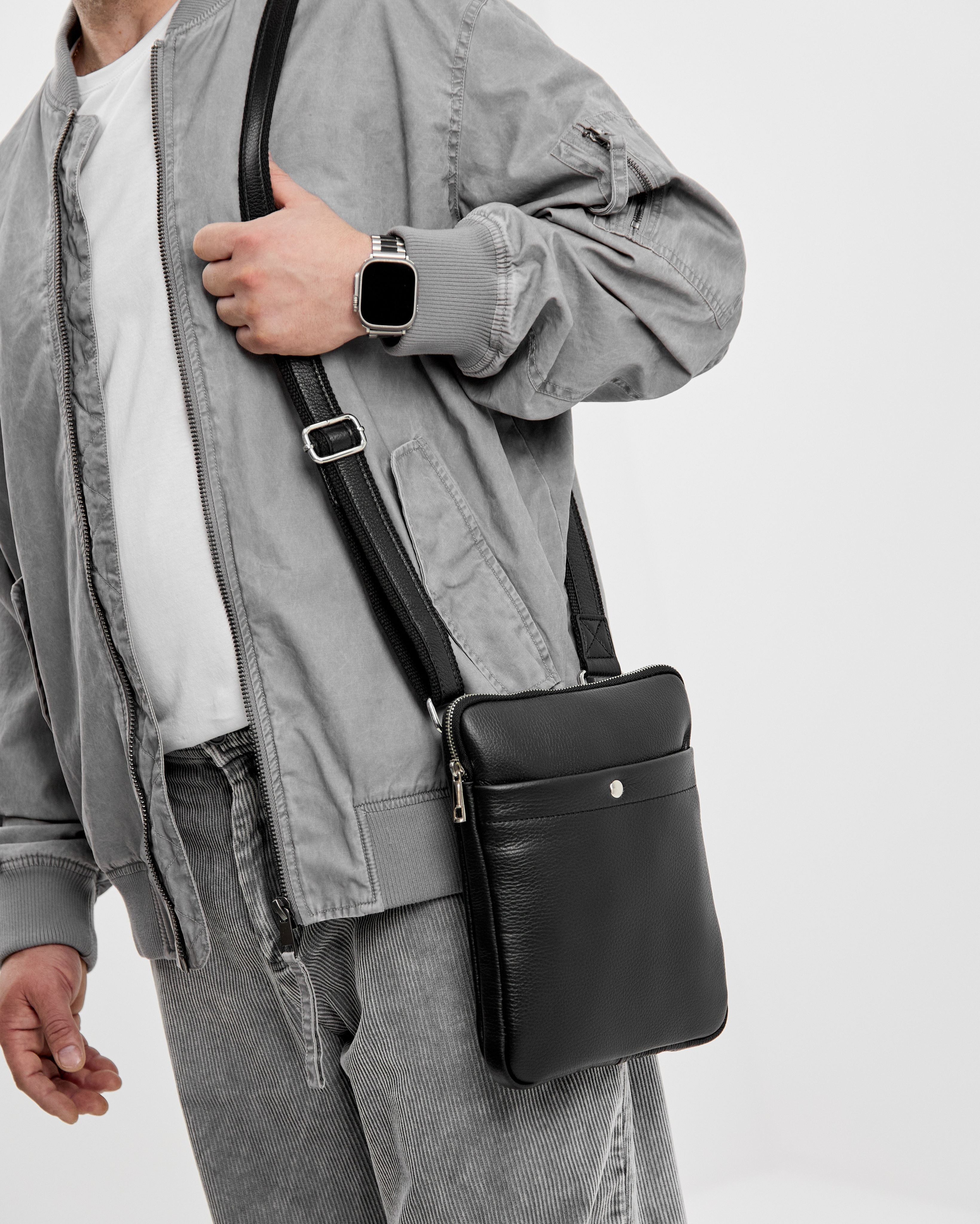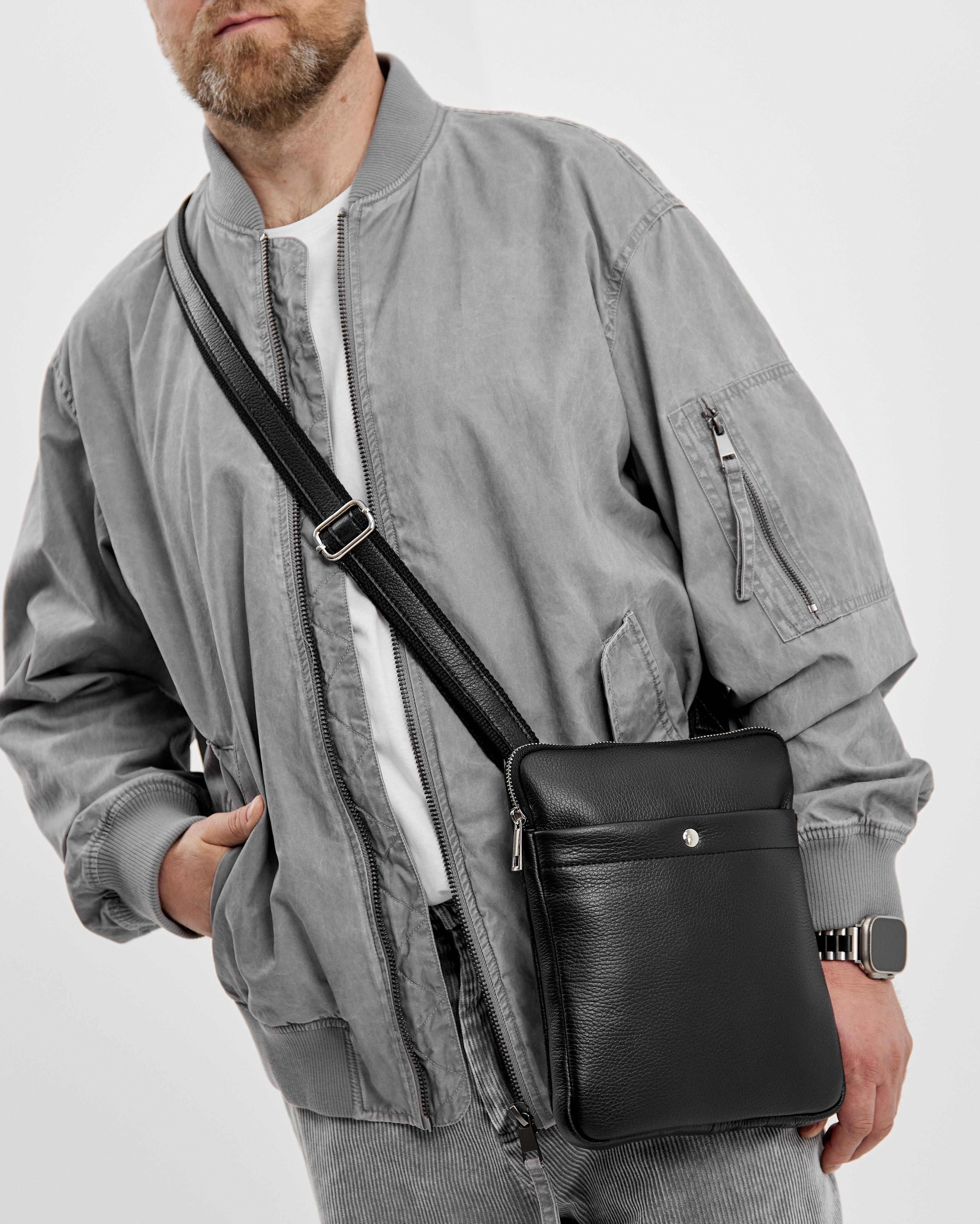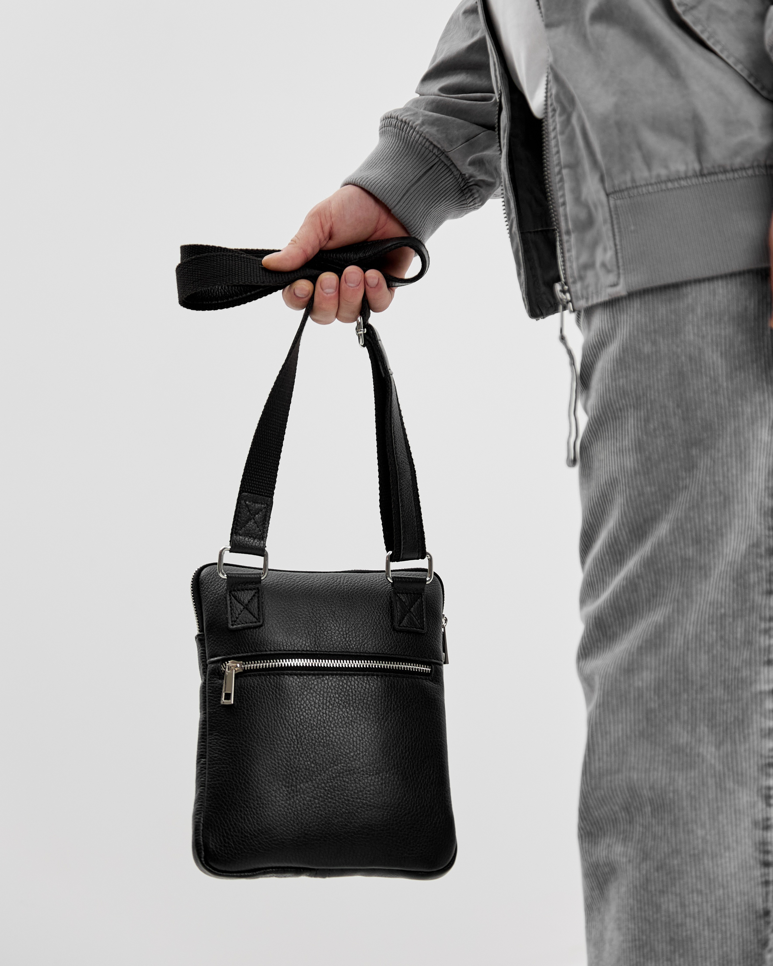 Сумка закрывается на молнию. В комплекте: регулируемый по длине ремень до 140 см.