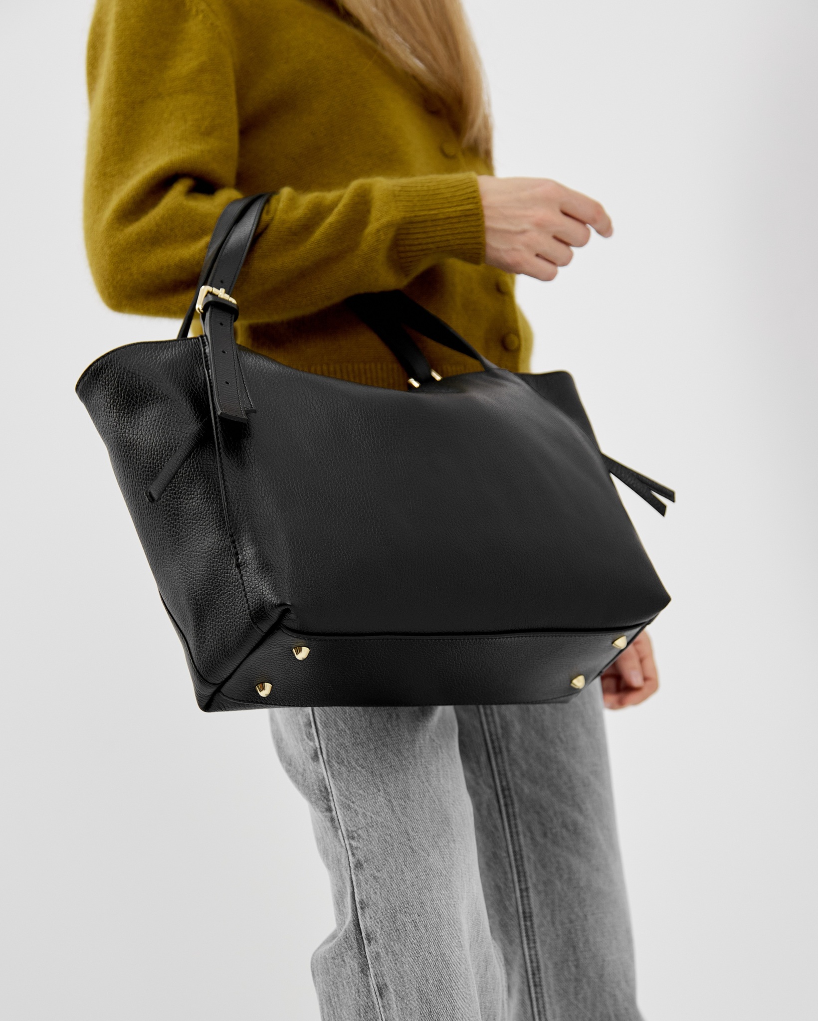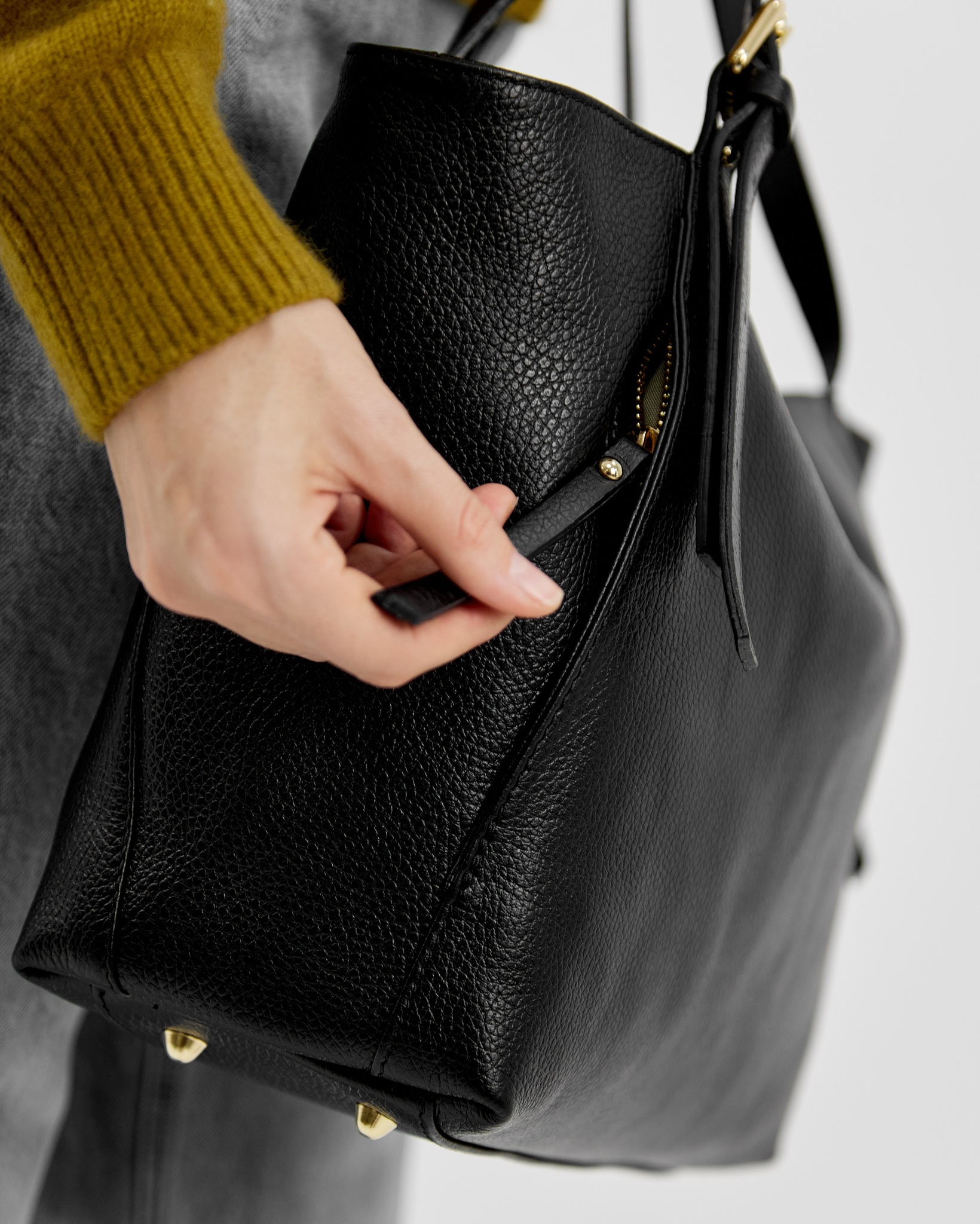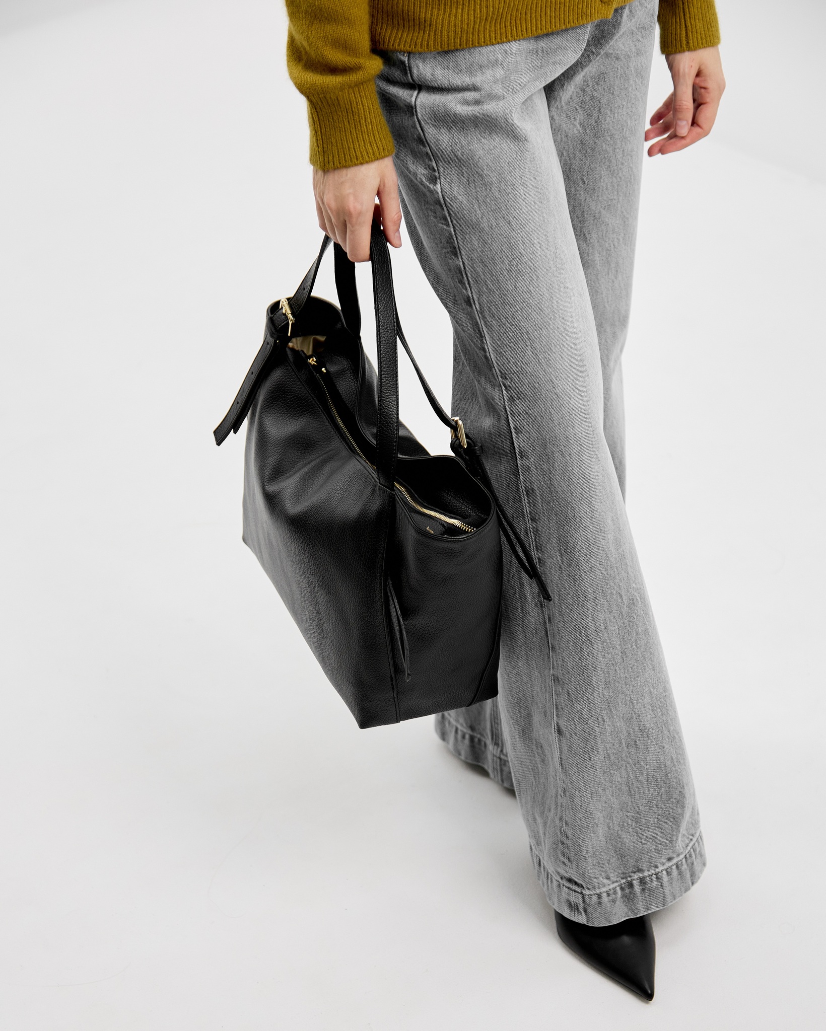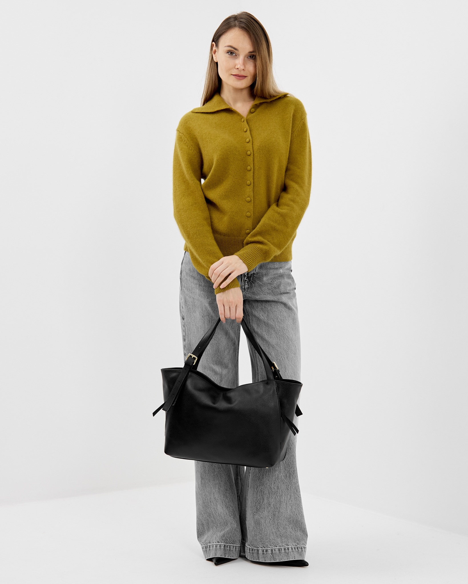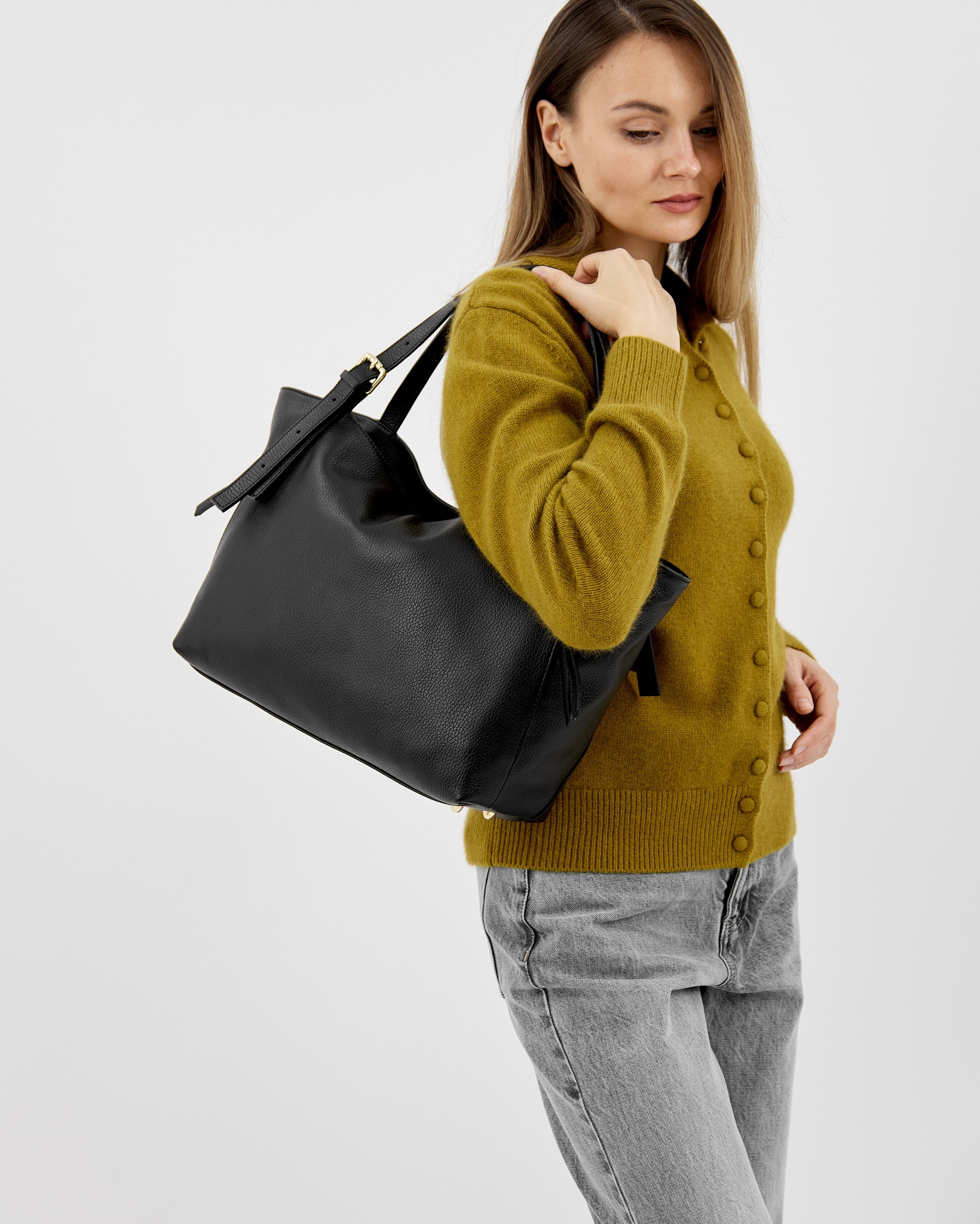 Сумка выполнена из натуральной зернистой кожи, фурнитура золотого цвета.