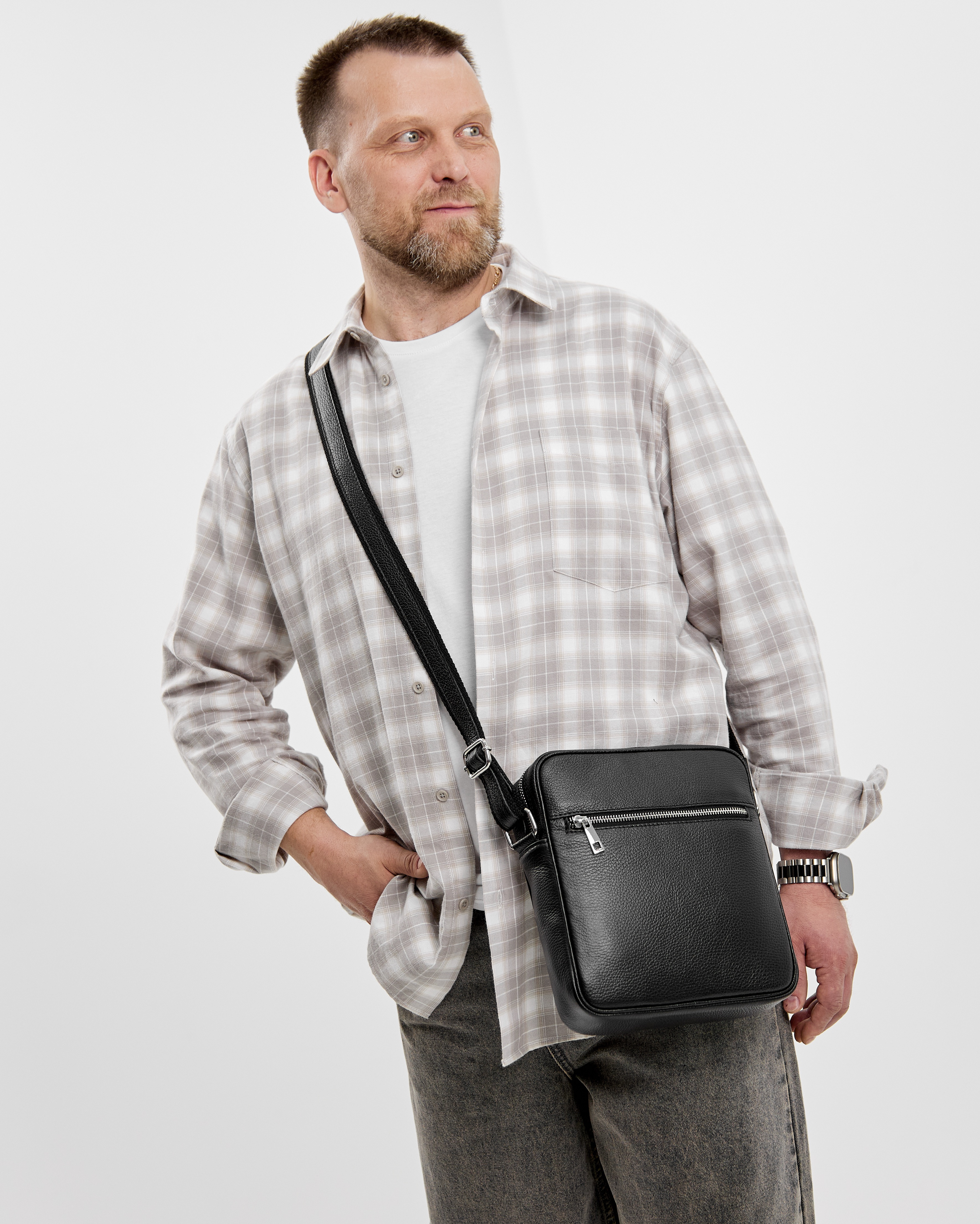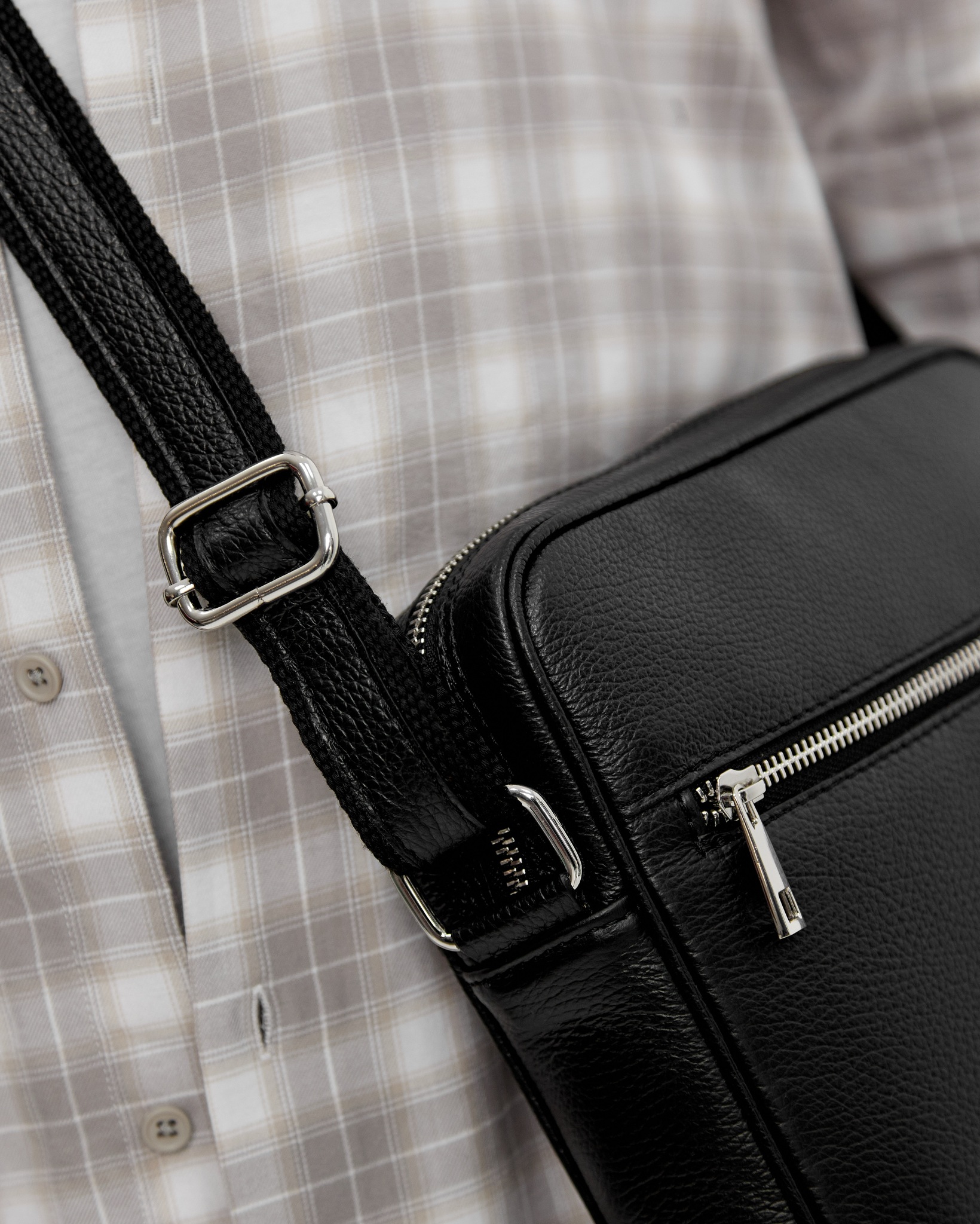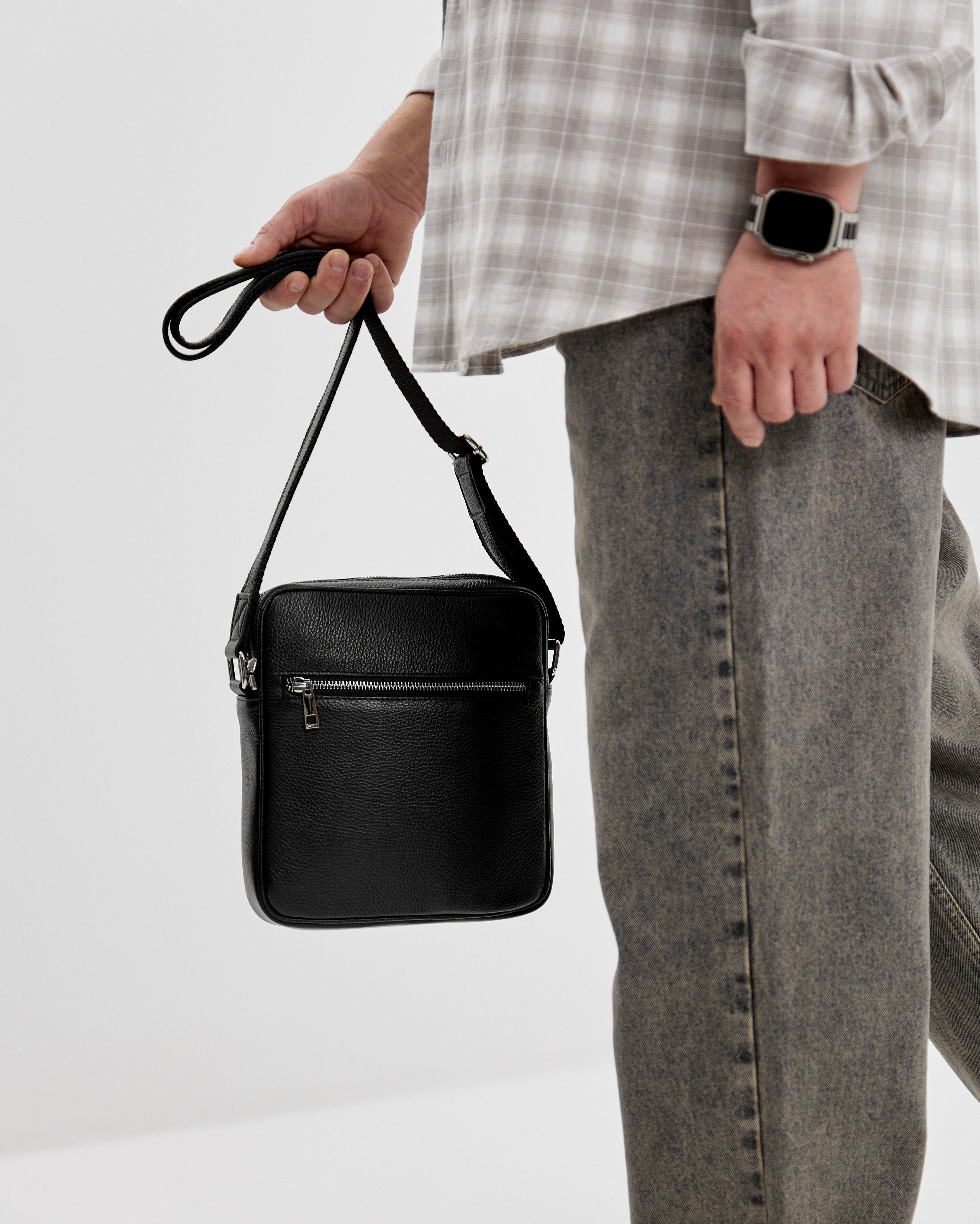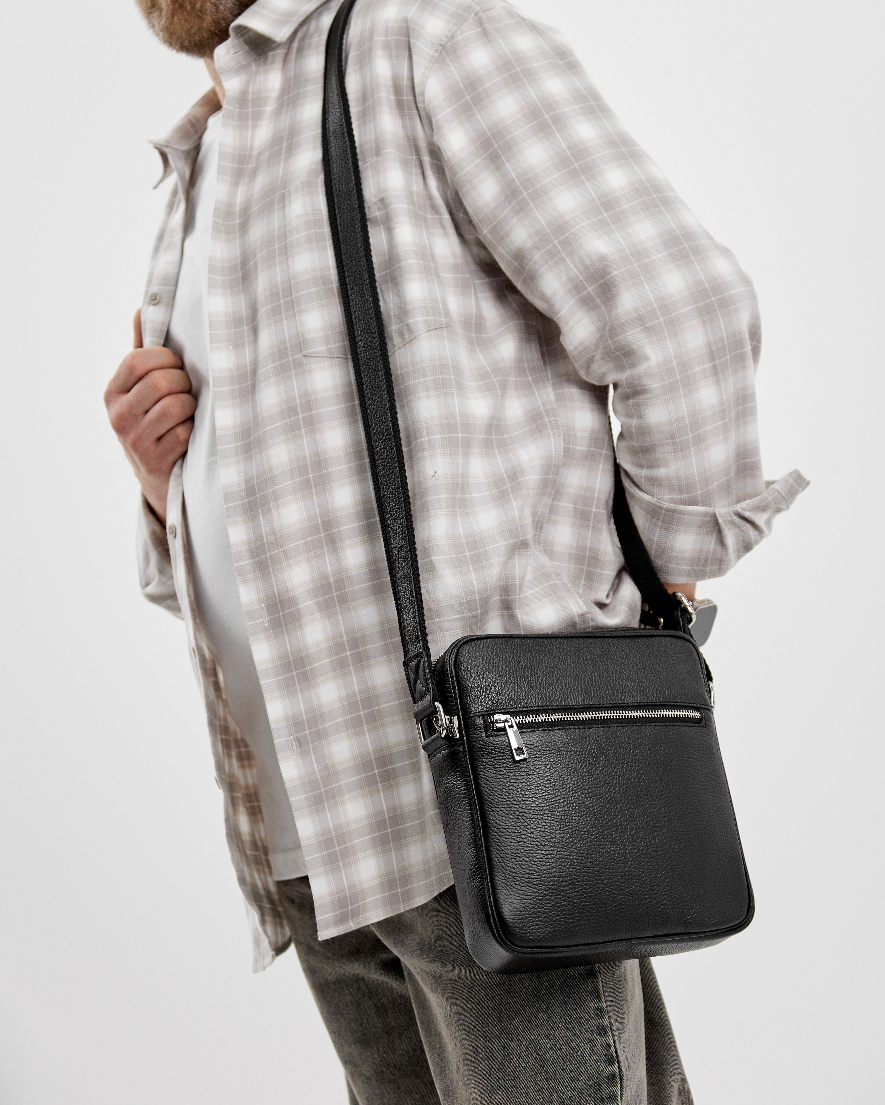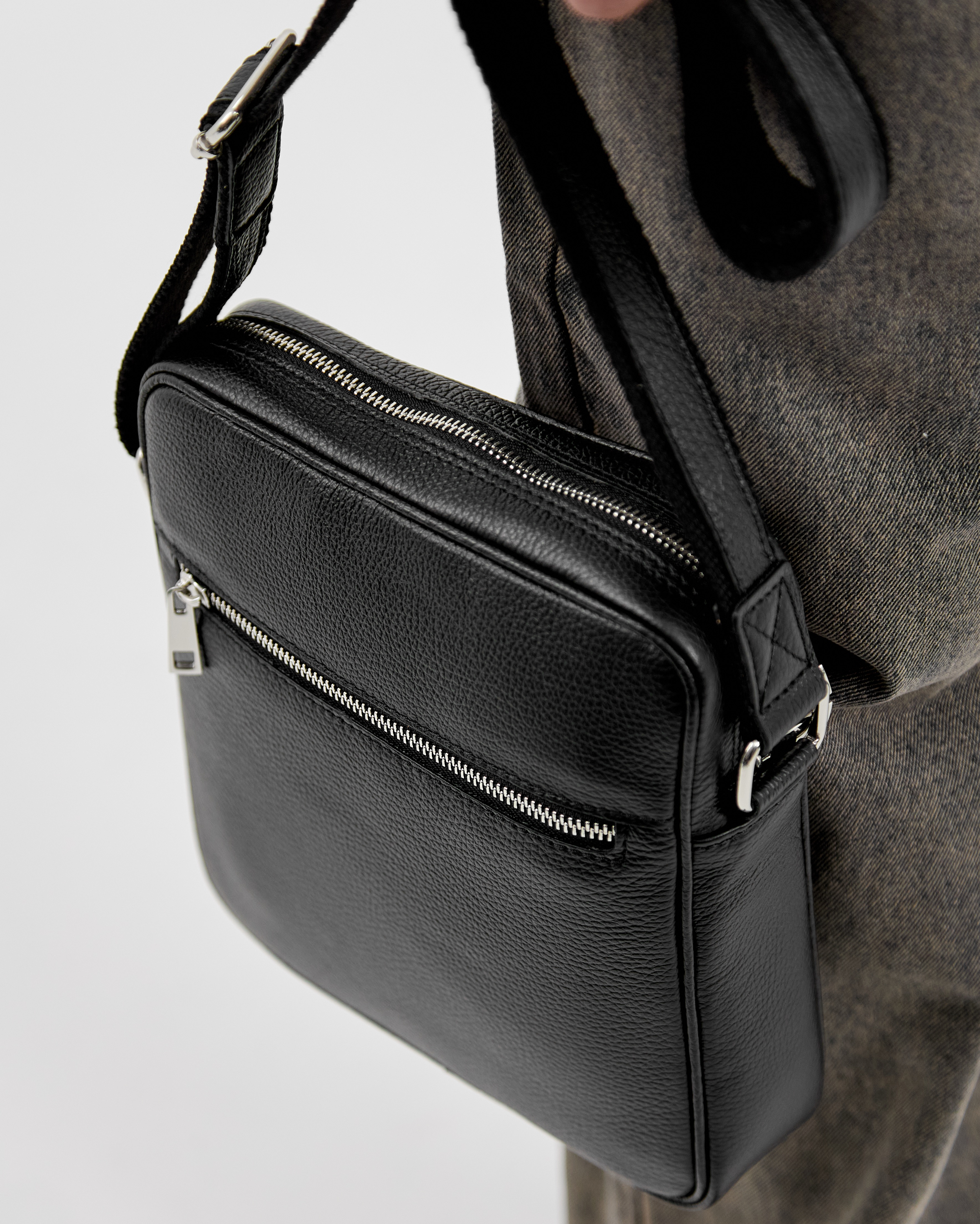 Сумка закрывается на молнию. В комплекте: регулируемый по длине ремень до 145 см.