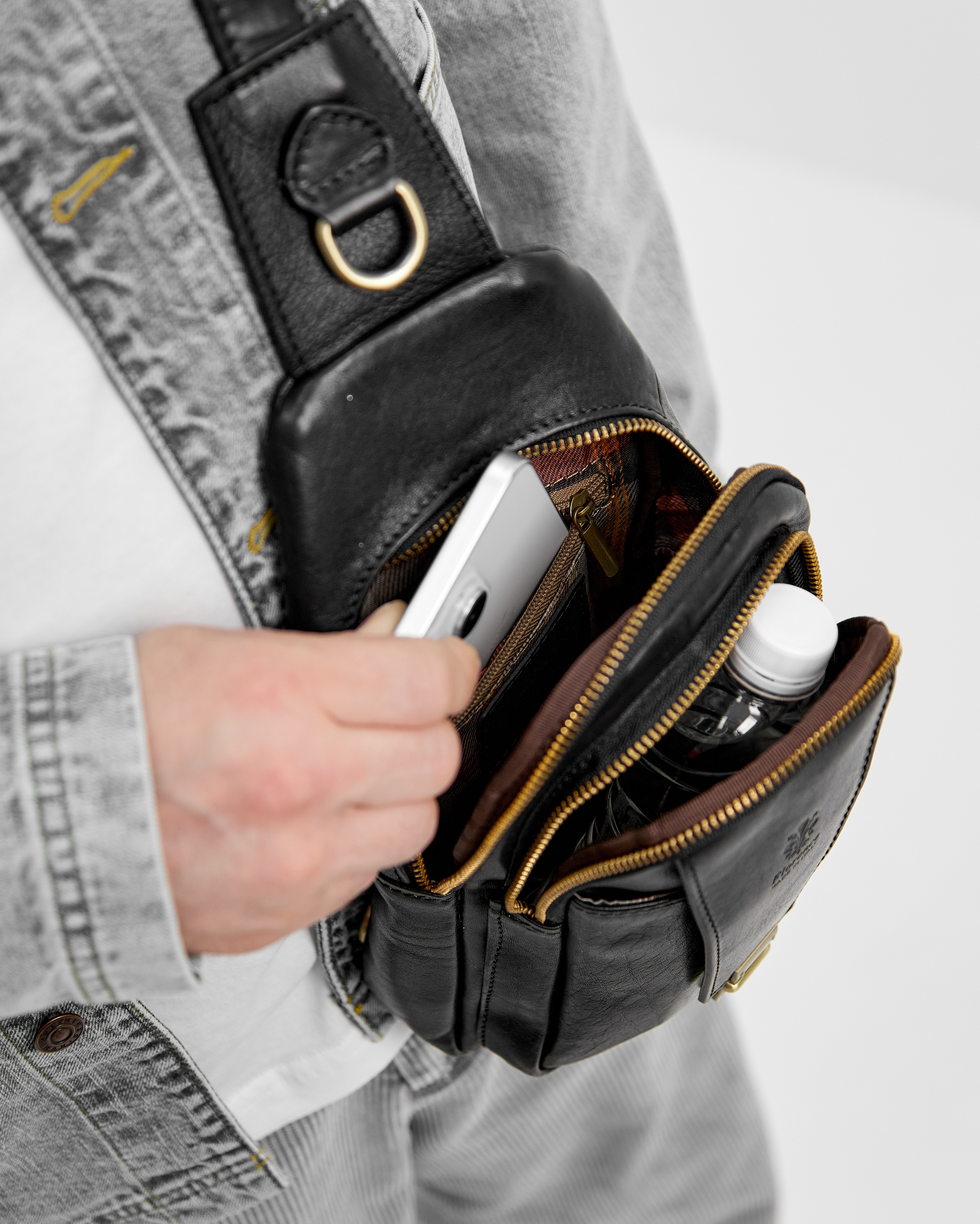 Сумка закрывается на молнию. В комплекте: регулируемый по длине ремень от 70 до 125 см.