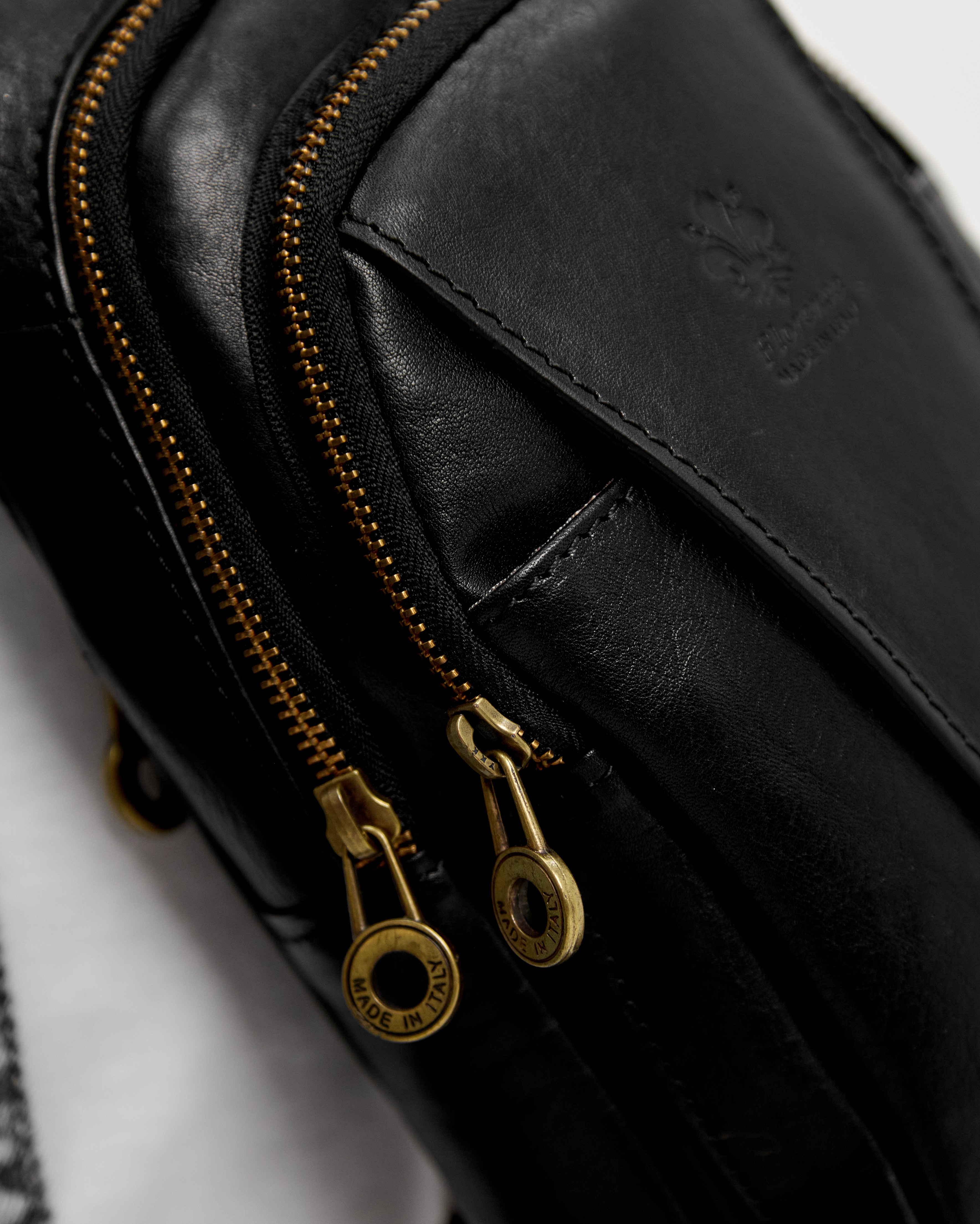 Внутри: два независимых отделения, которые закрываются на молнию, а также дополнительные карманы для мелочей. Снаружи: на задней стороне карман на молнии.