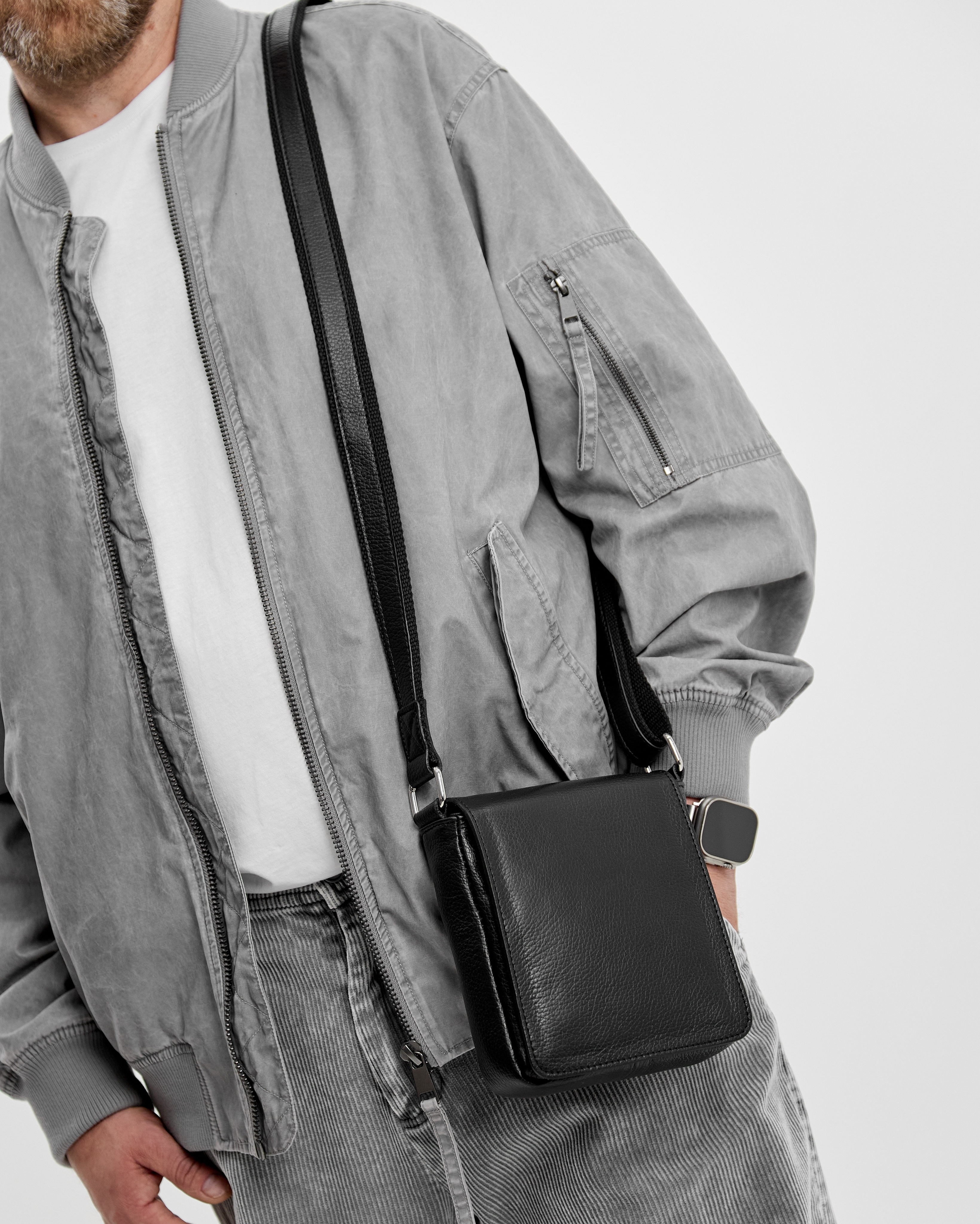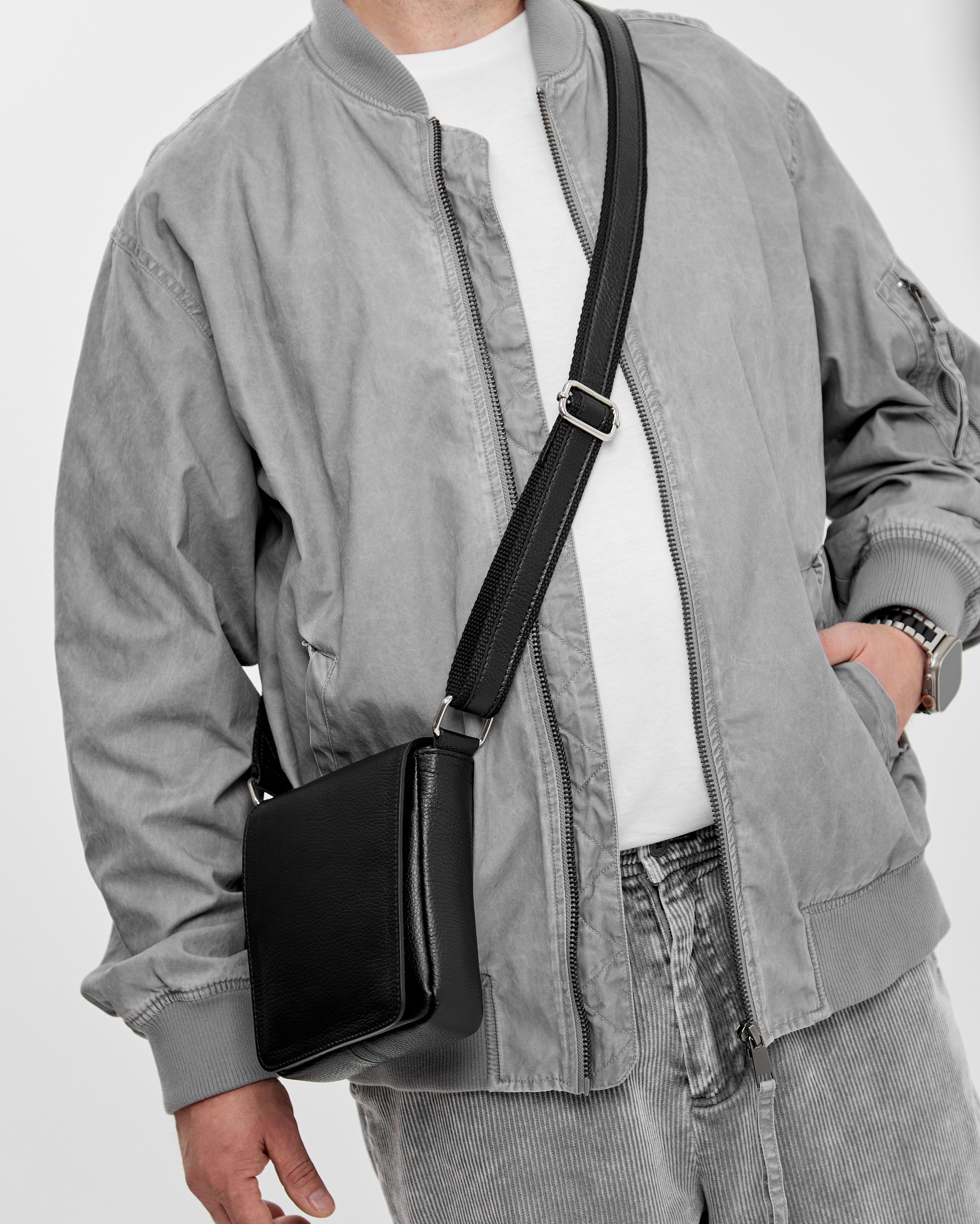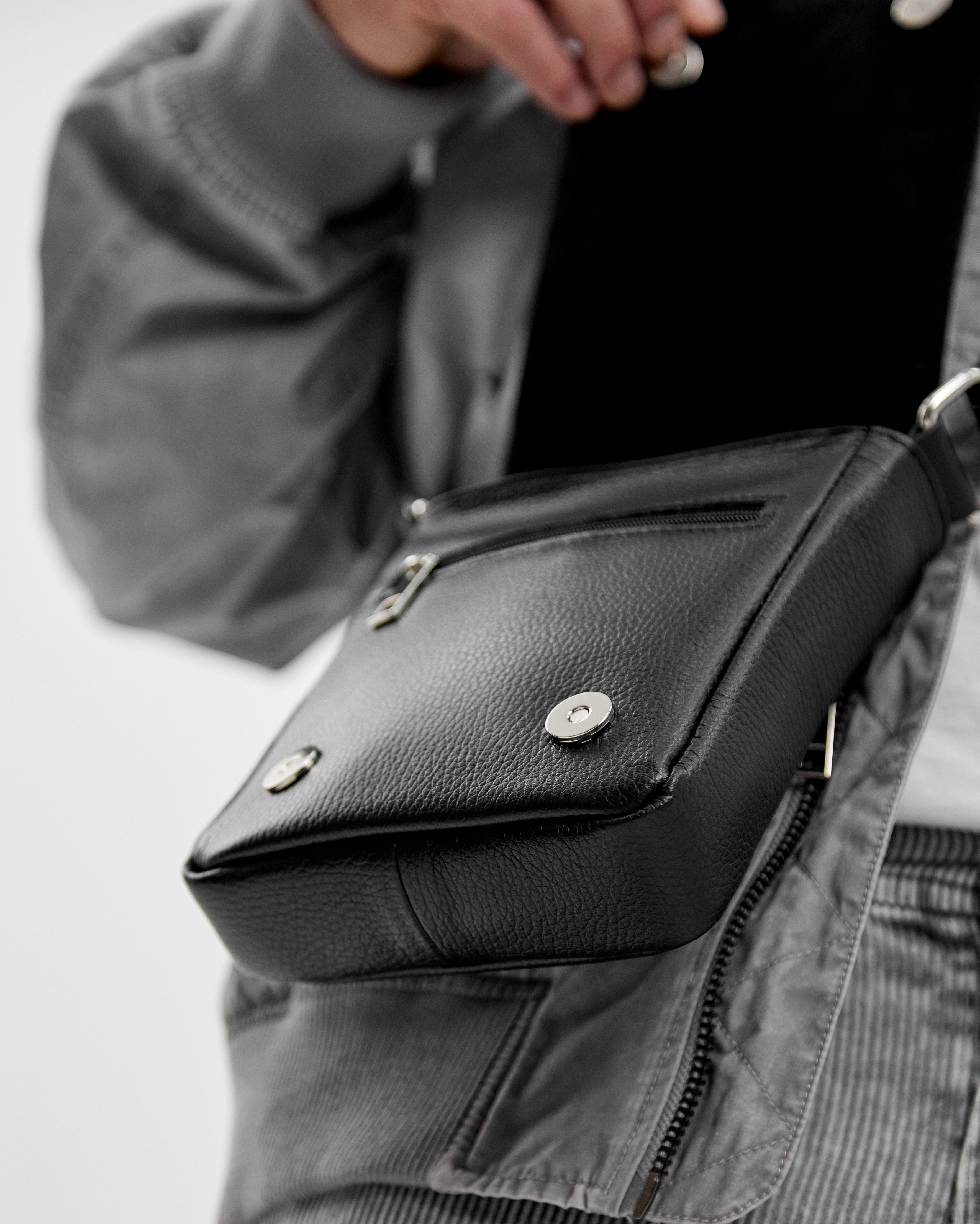 Сумка закрывается на магнитные кнопки. В комплекте: регулируемый по длине ремень до 135 см.
