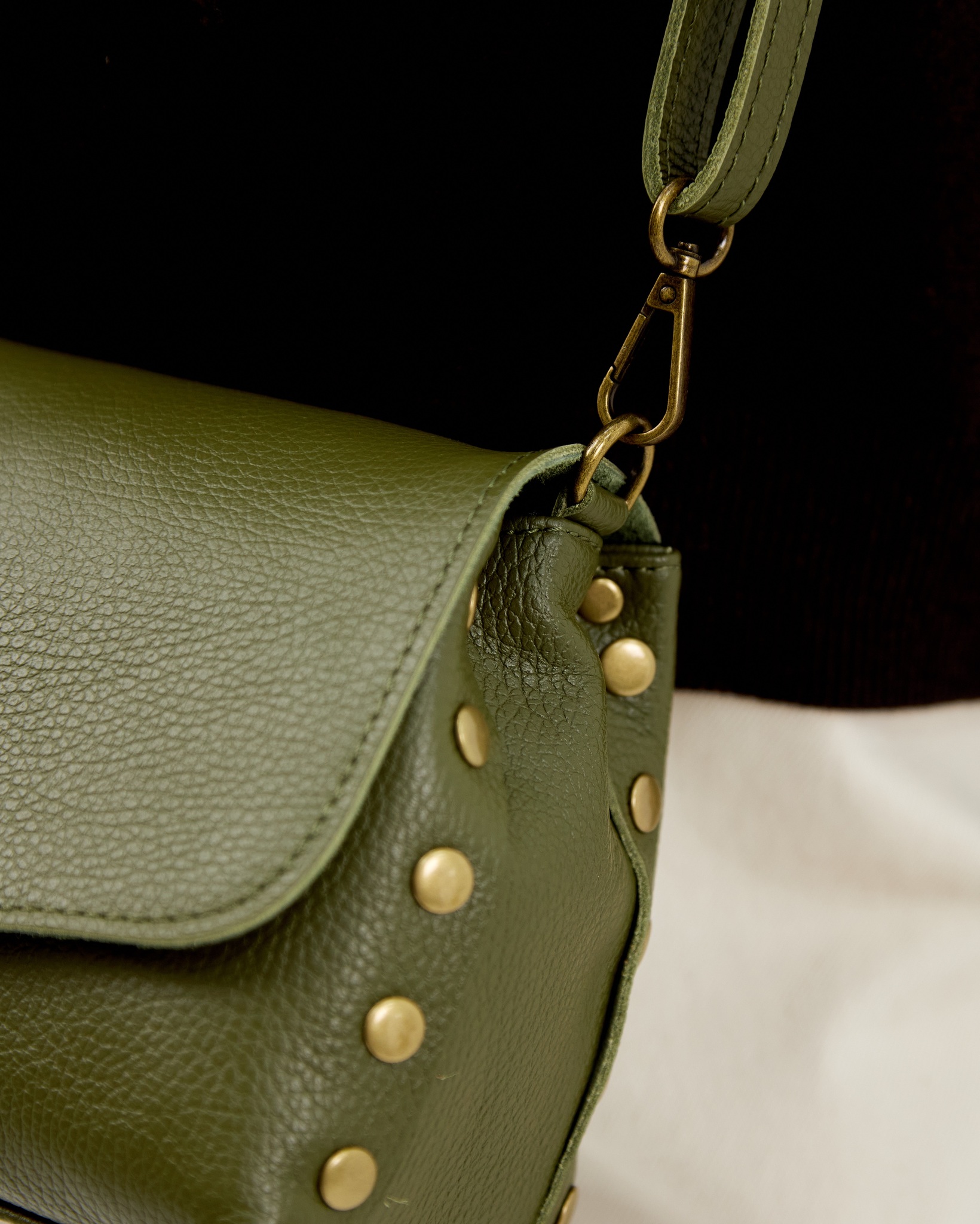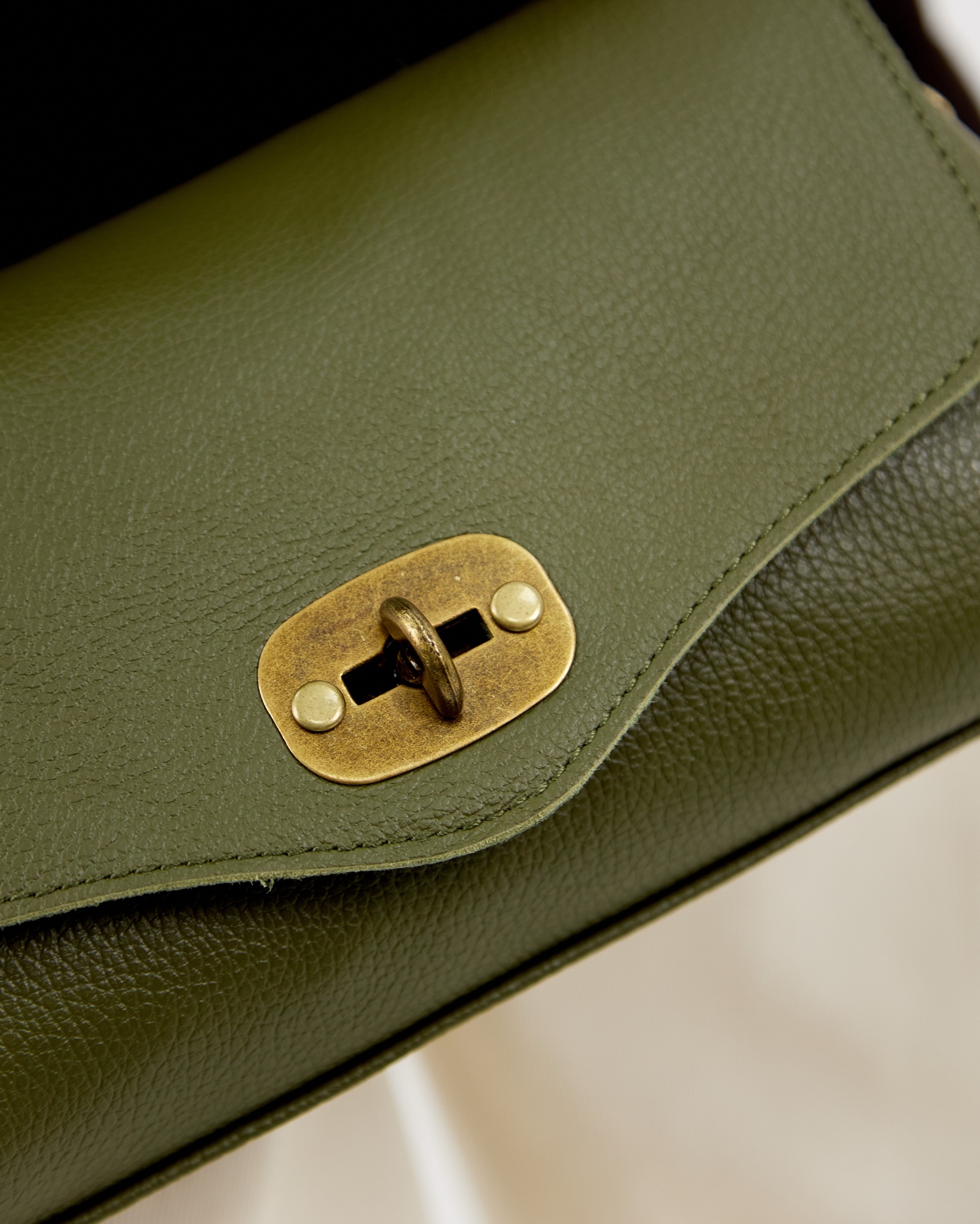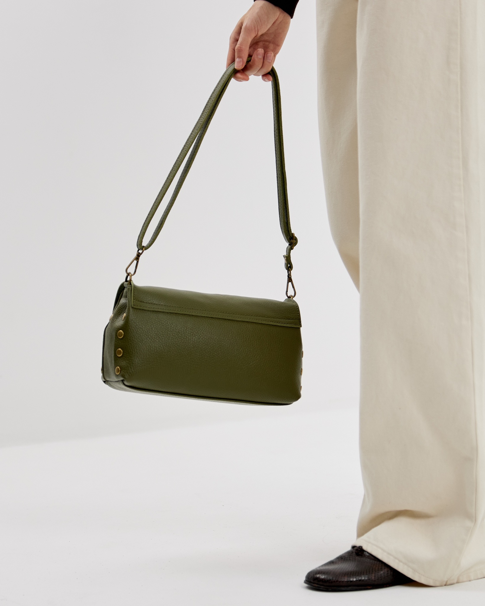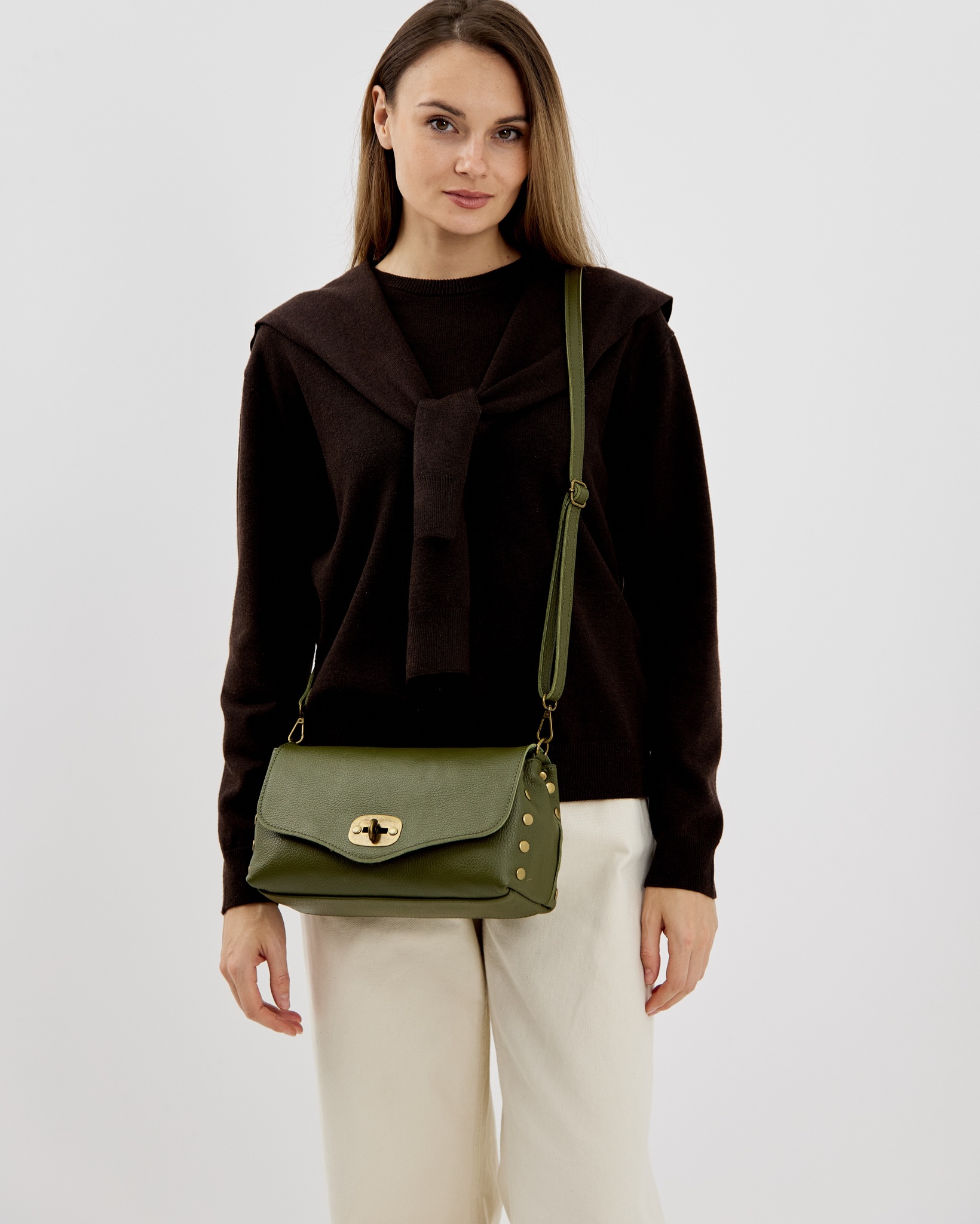 Сумка из коллекции итальянского бренда Vera Pelle выполнена из натуральной зернистой кожи и декорирована фурнитурой цвета латунь.
